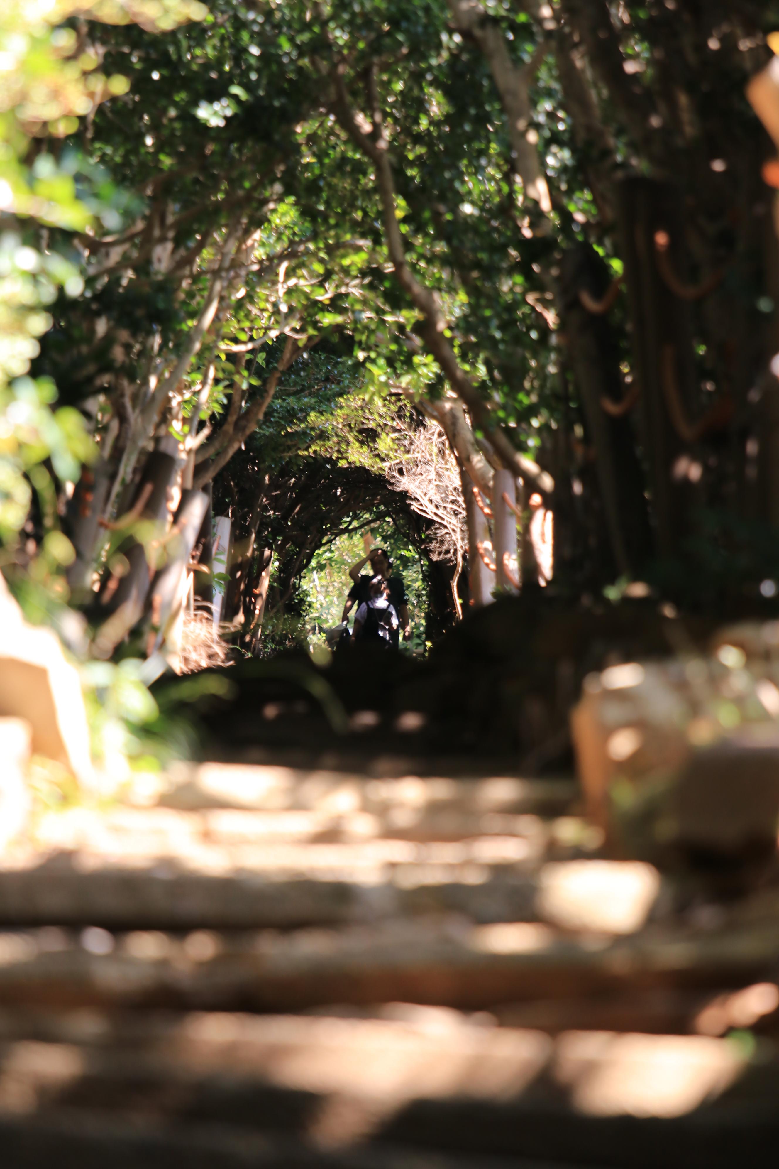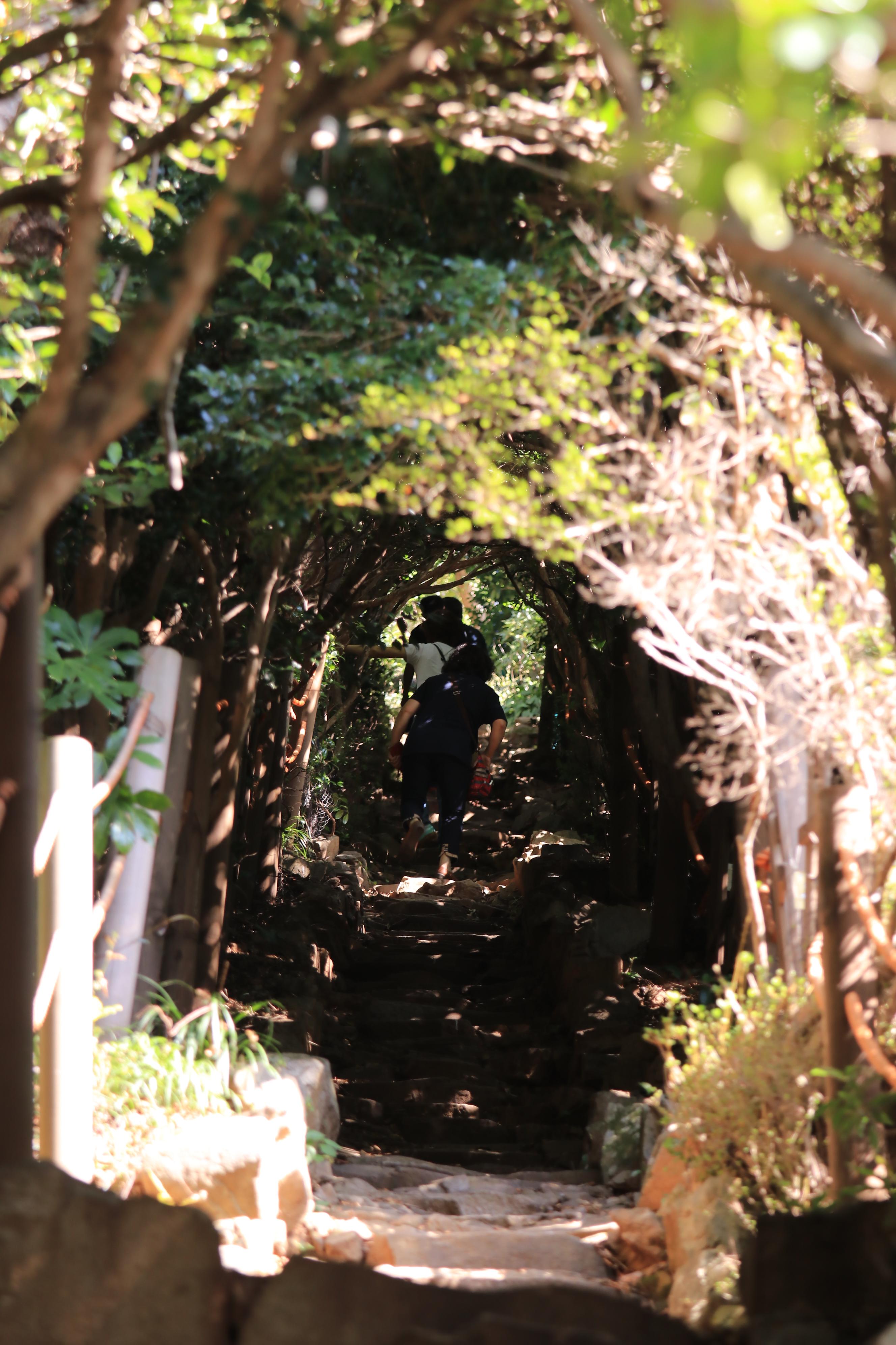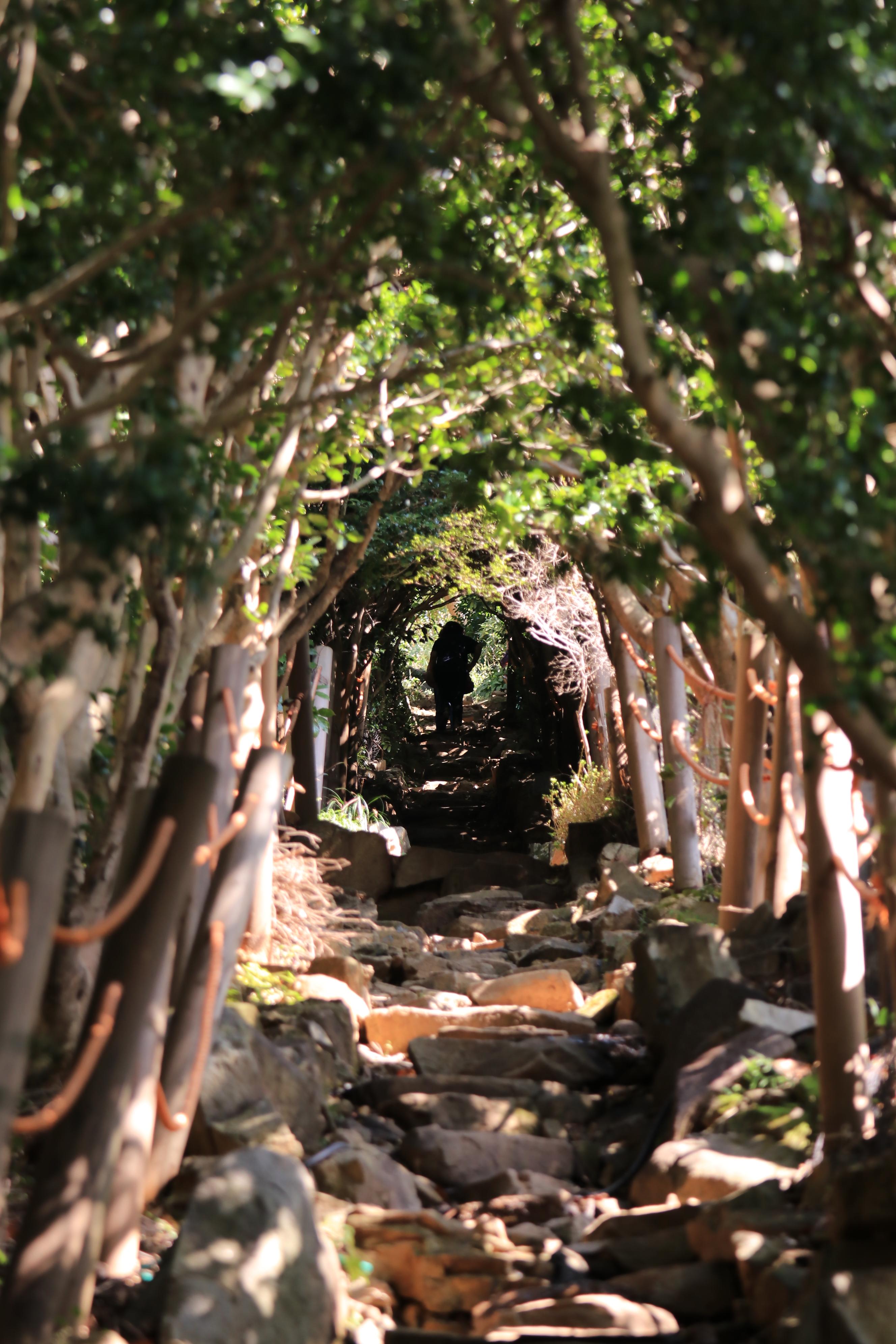 두 사람 정도 비켜갈 수 있는 좁디좁고, 높이도 키가 큰 사람은 허리를 숙여야 할 정도의 동백나무 터널은