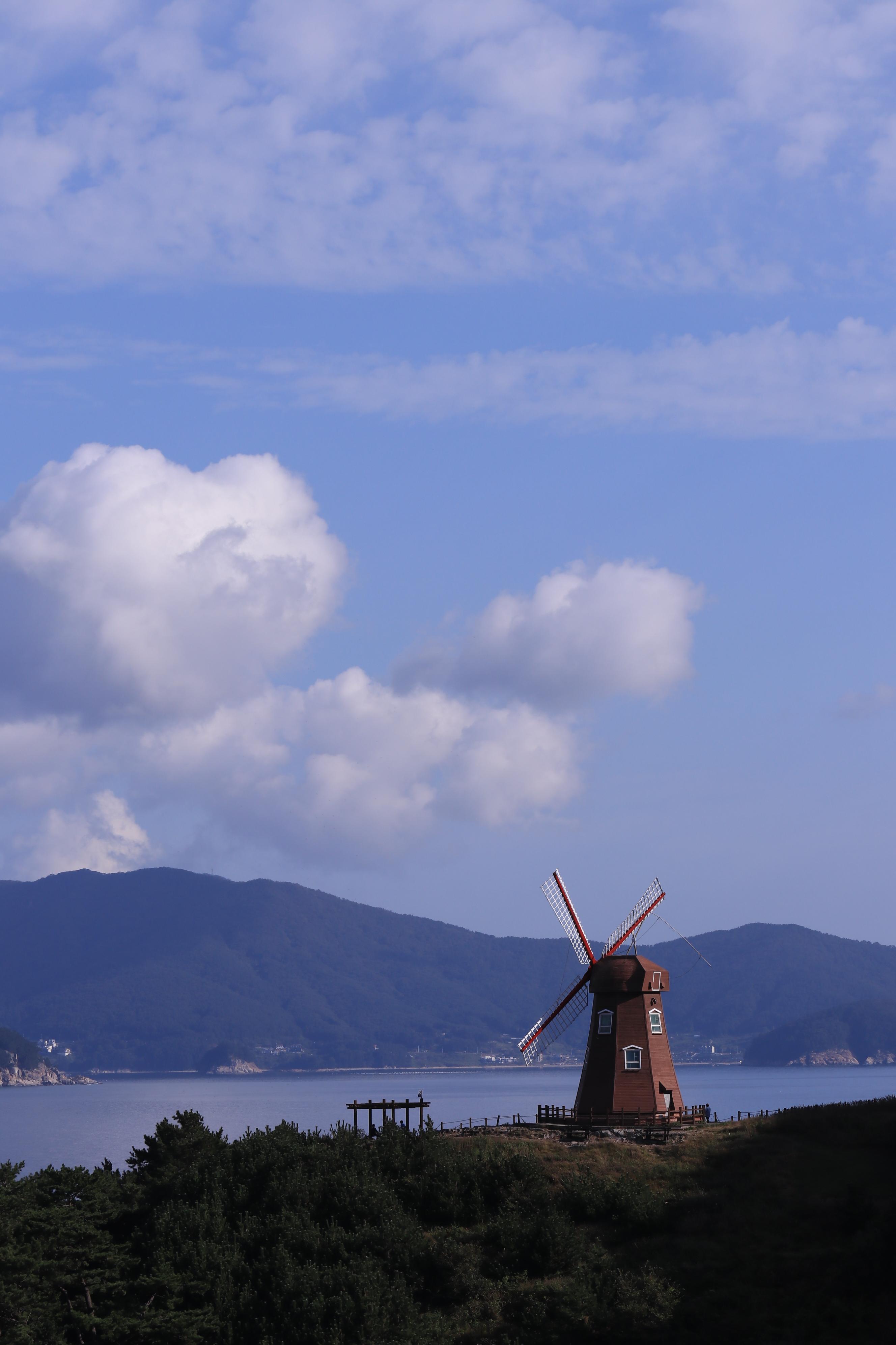 그런데도 풍차의 날개는 힘차게 돌아가는 것을 보니 동력으로 돌리나 보다.