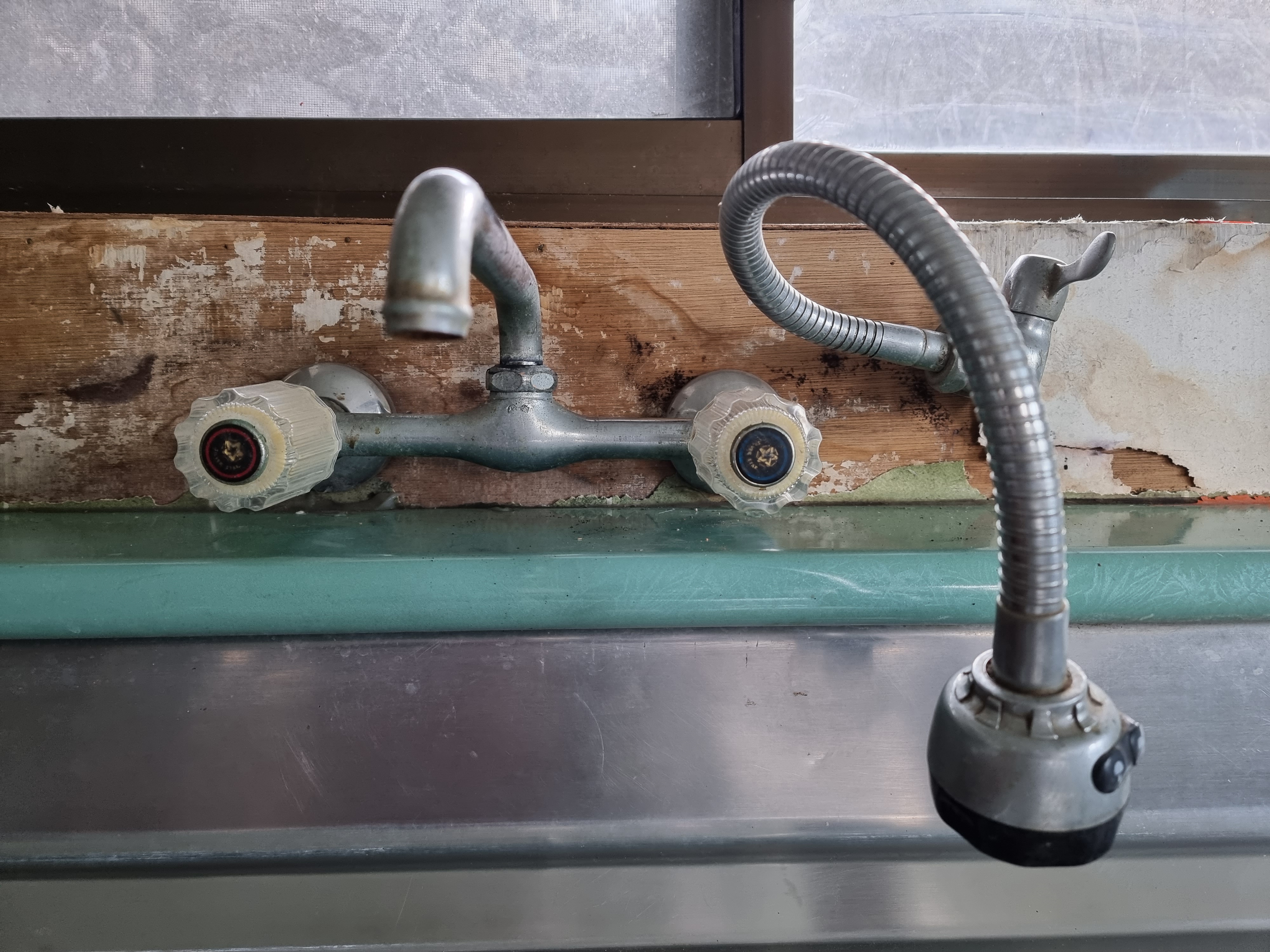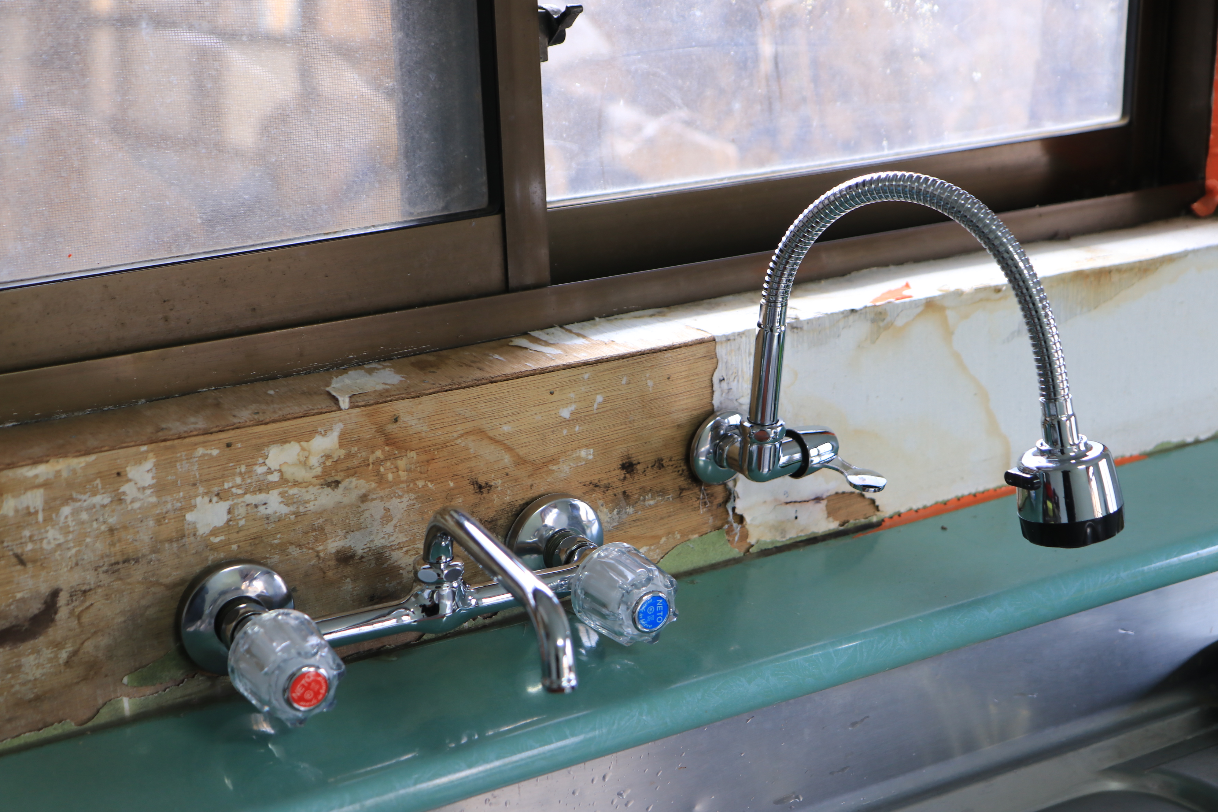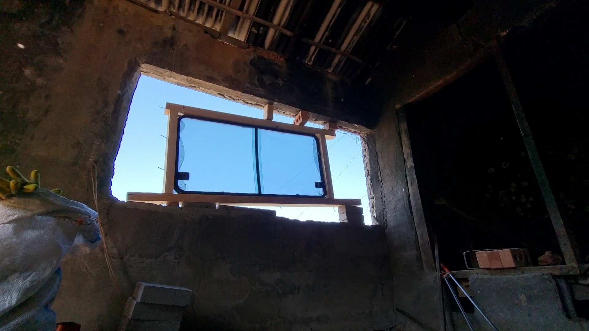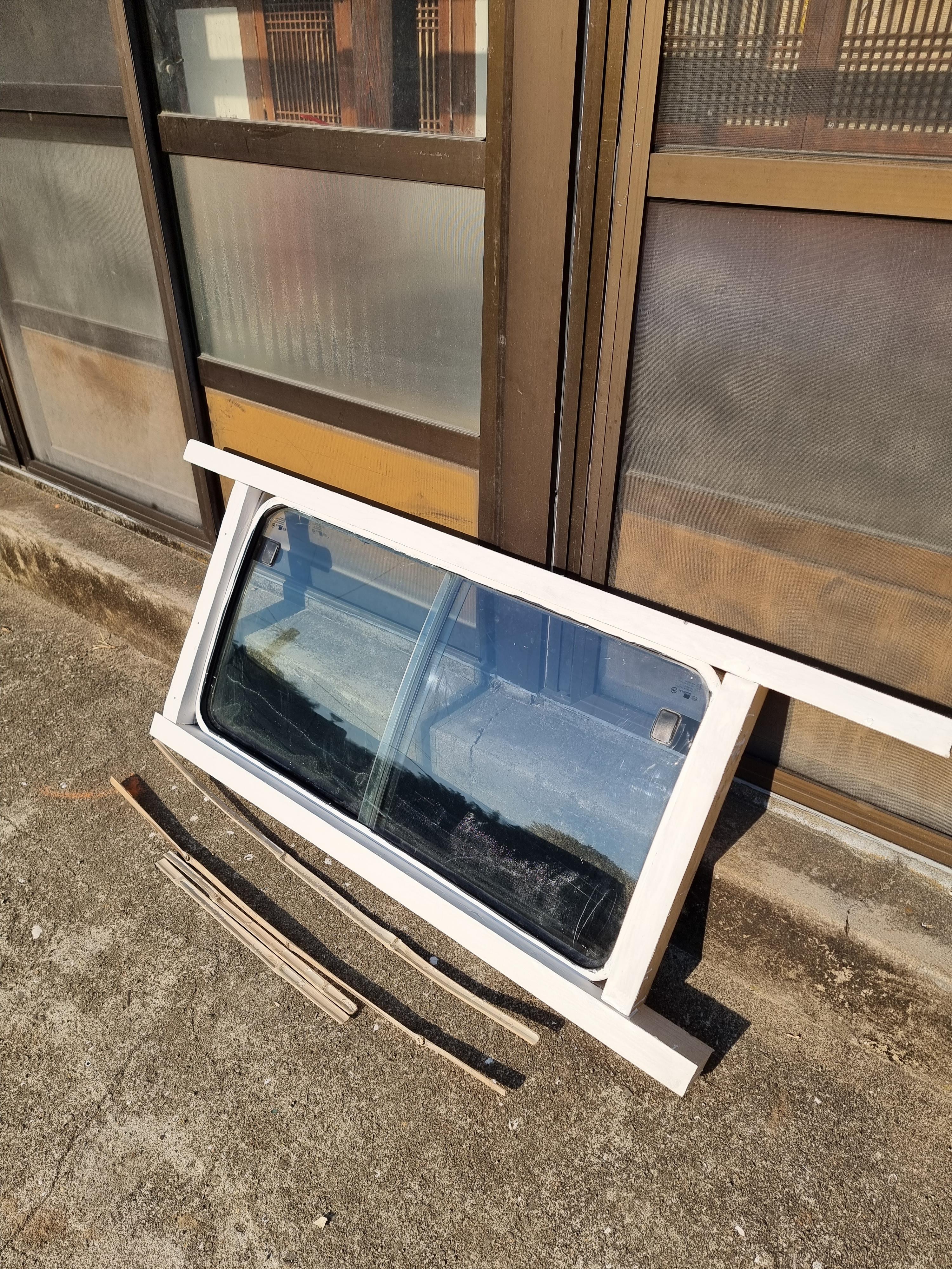 세차게 불어 더 이상 작업이 어려웠다. 그래서 지금 차 창문으로 부엌 창을 고정시키고 있는 안쪽에 예전에 부엌의