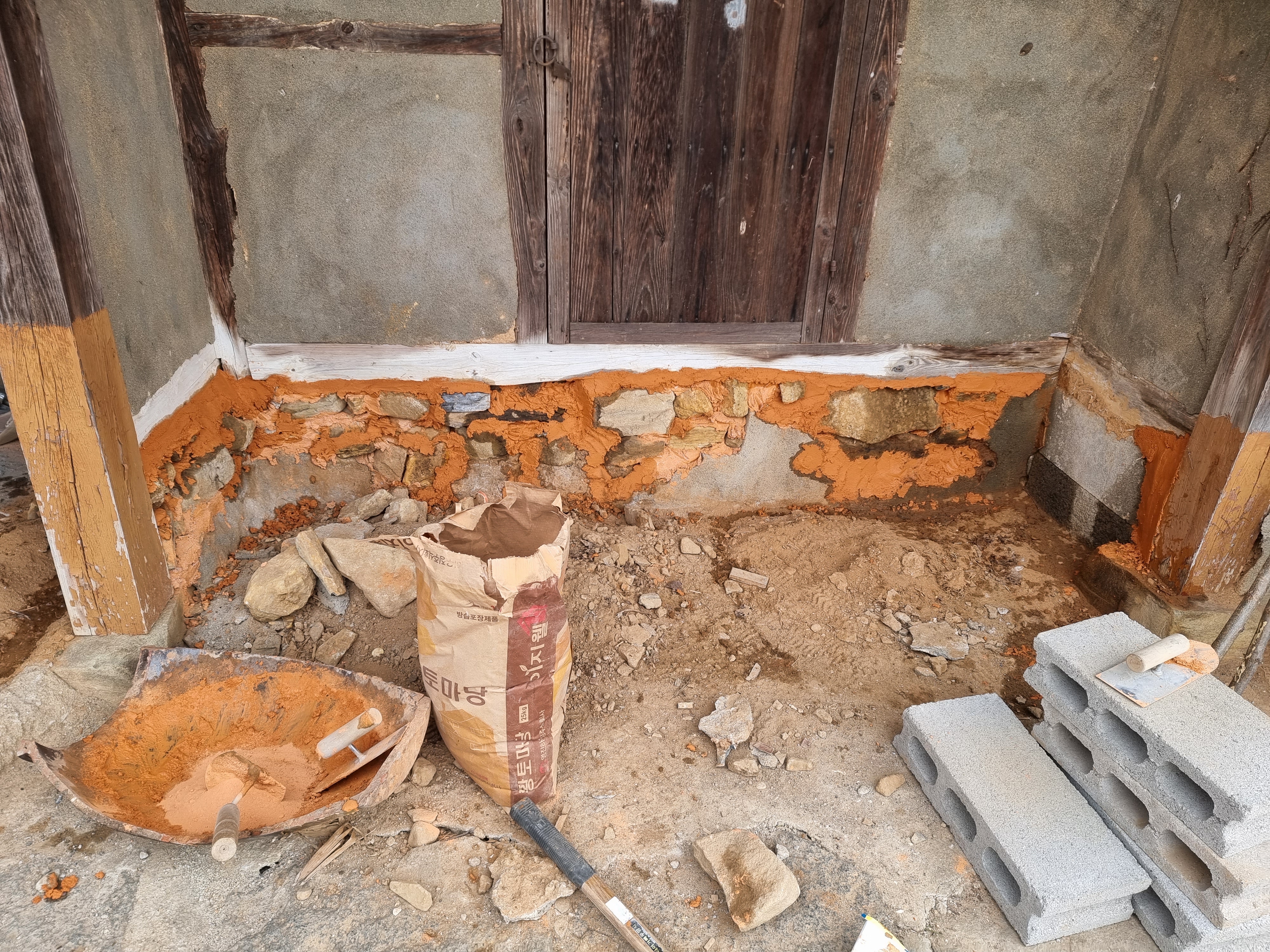 있는 아랫채에 있는 창고의 벽을 보수하기로 했다.
