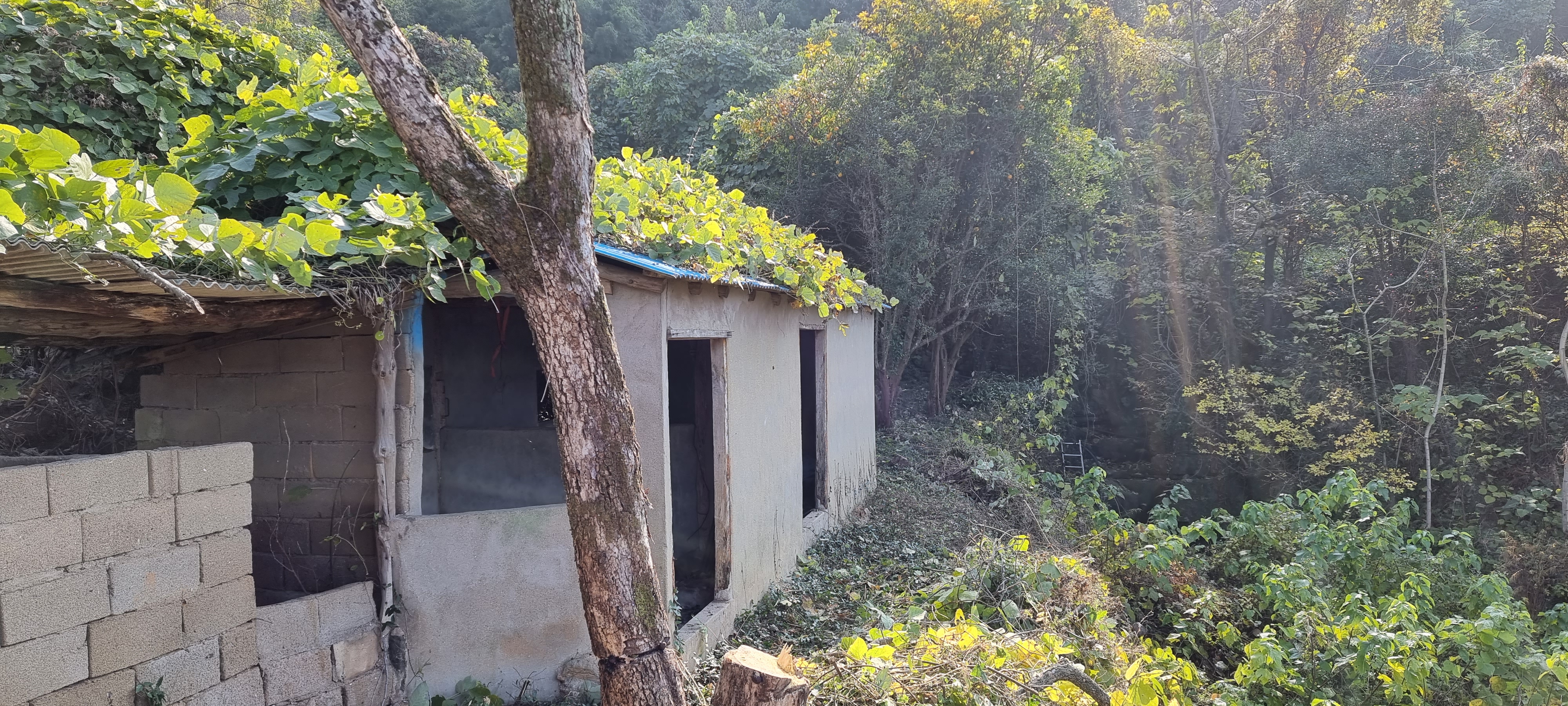 창고로 사용했을 듯한 곳이 있는데, 지금은 내가 불쏘시게, 땔감 등을 쌓아 두었다. 그곳을 좀 수리하기로 했다.