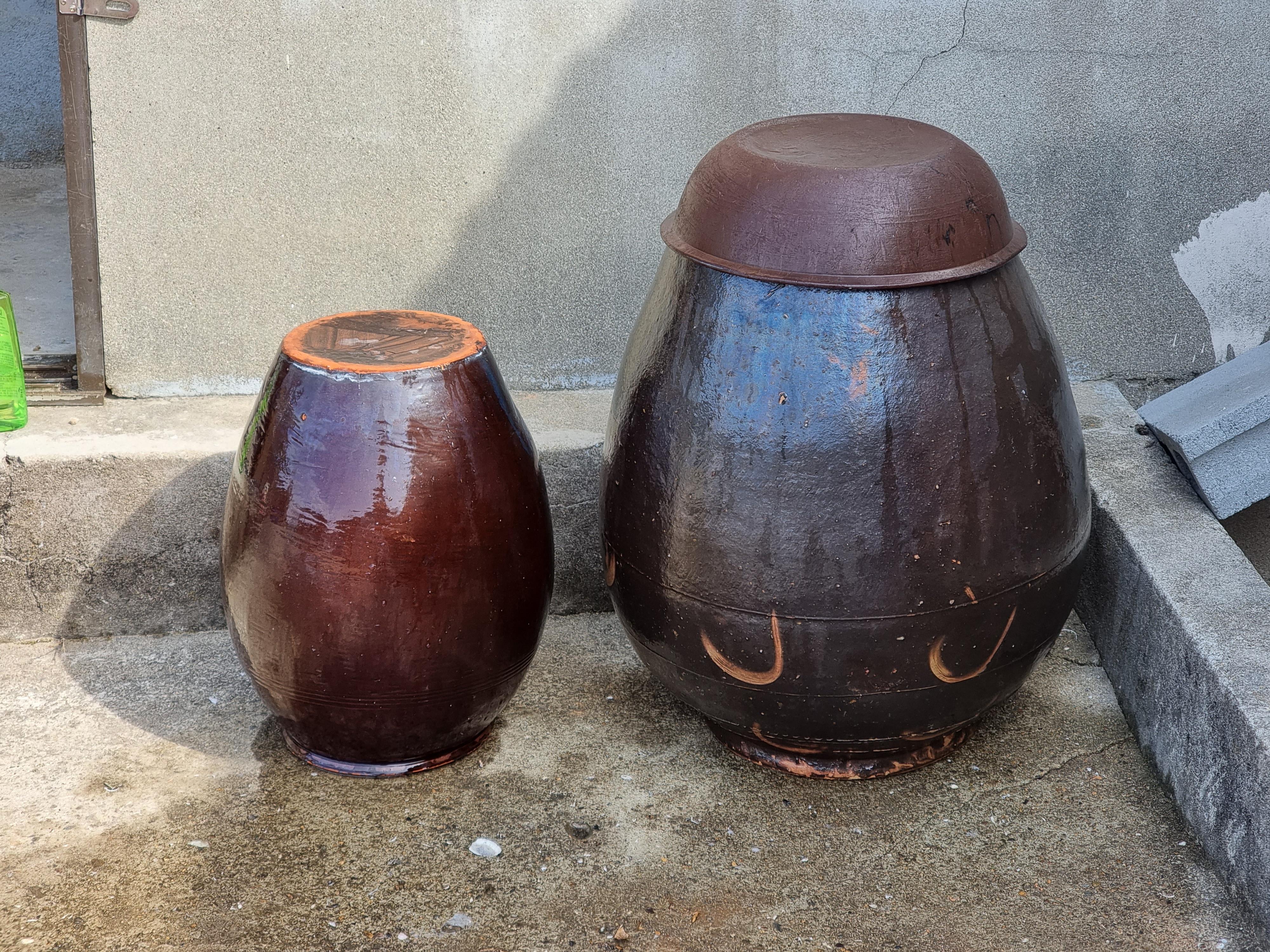 있던 장독 두 개를 깔끔하게 씻어서 사용할 수 있도록 했다. 아마 큰 장독은 간장을 담았던 것 같았다.