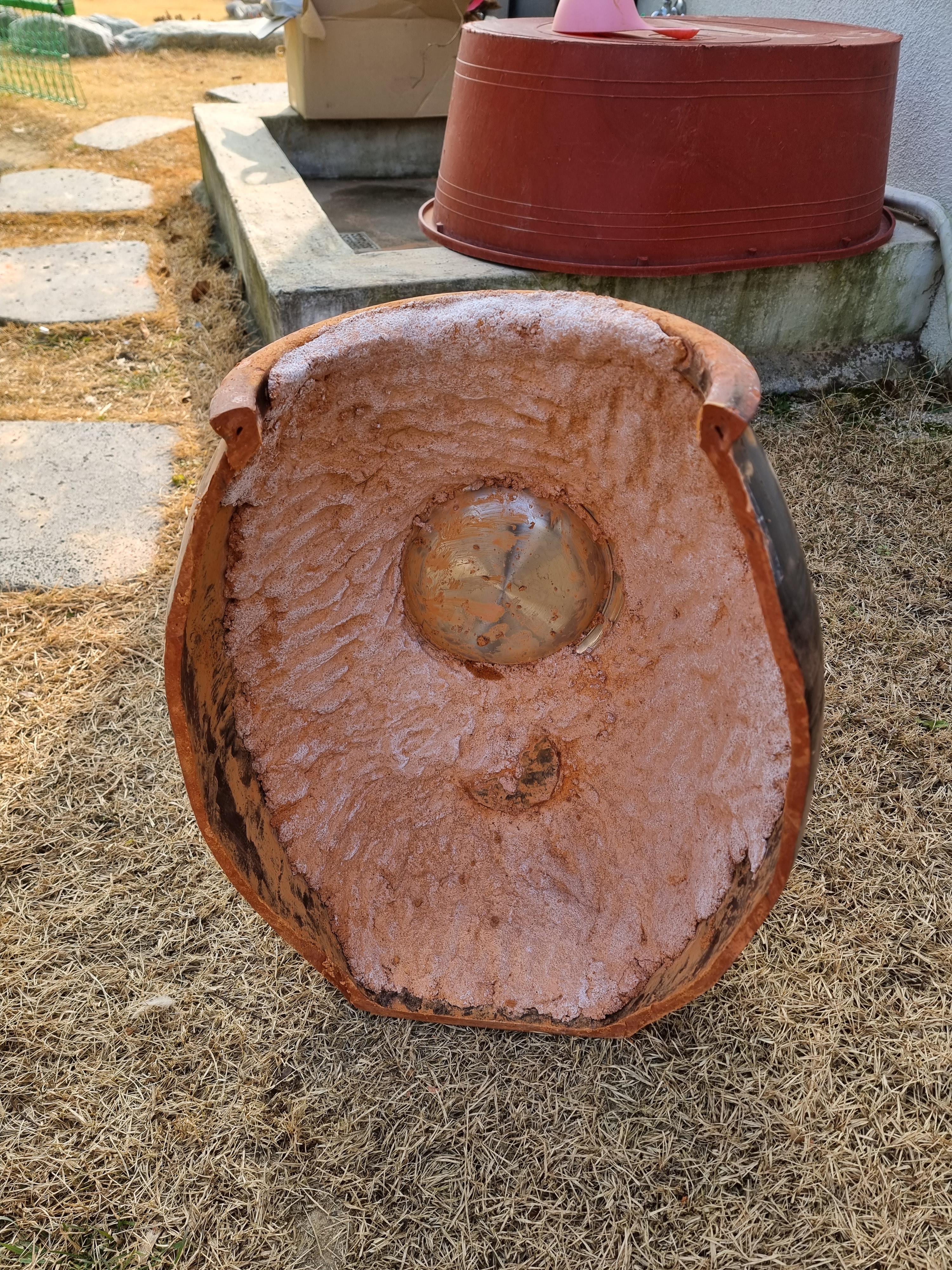 - 장독은 옆으로 눕혀 3분의 2정도에서 가로로 잘라, 3분의 2의 부분만 사용하게 되는데,