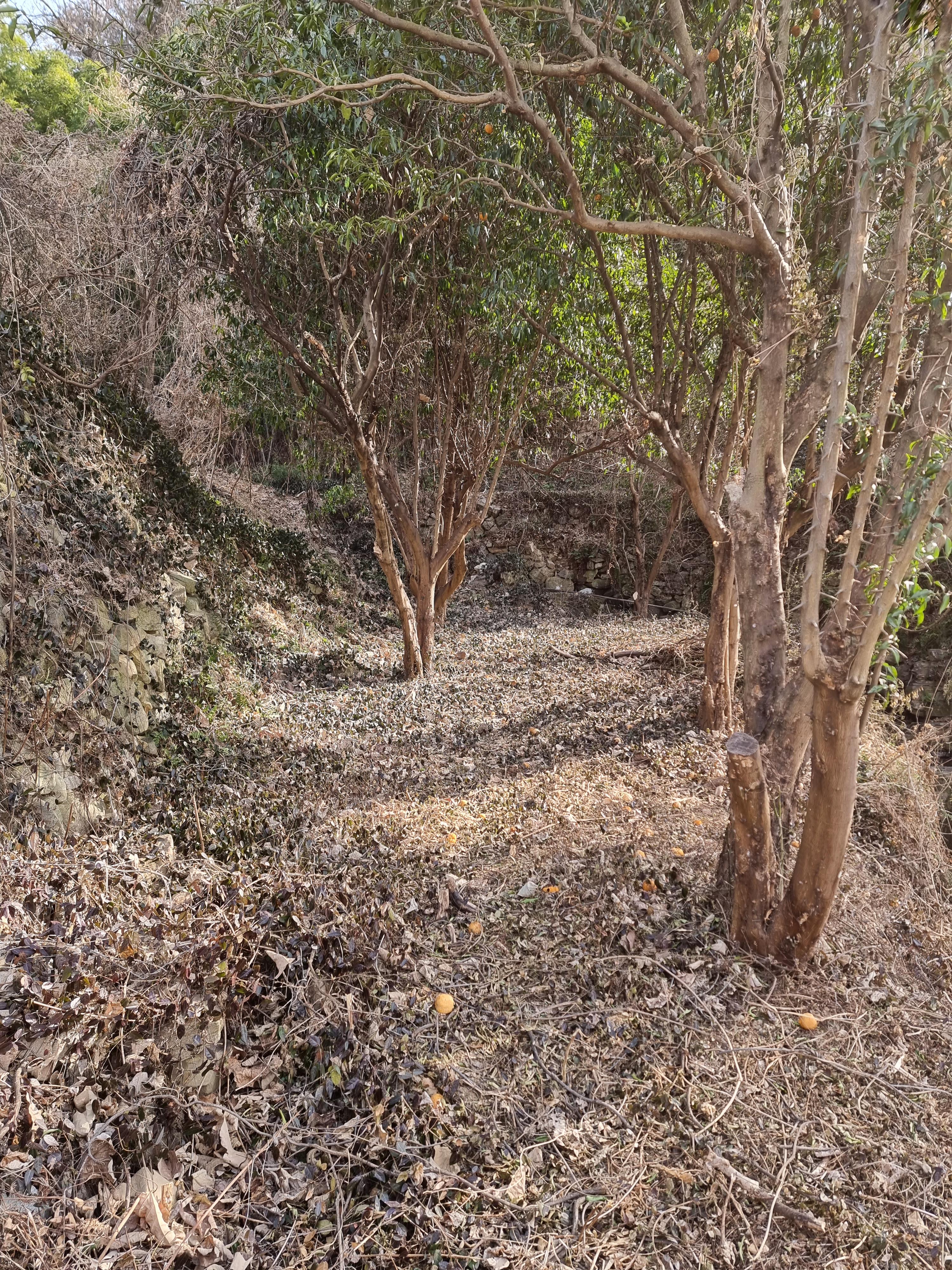 그동안 무성한 잡초 때문에 접근하기 어려웠던 곳의 잡초 등을 조금씩 제거. 그러자 칡덩쿨에 묻혀있던 유자나무