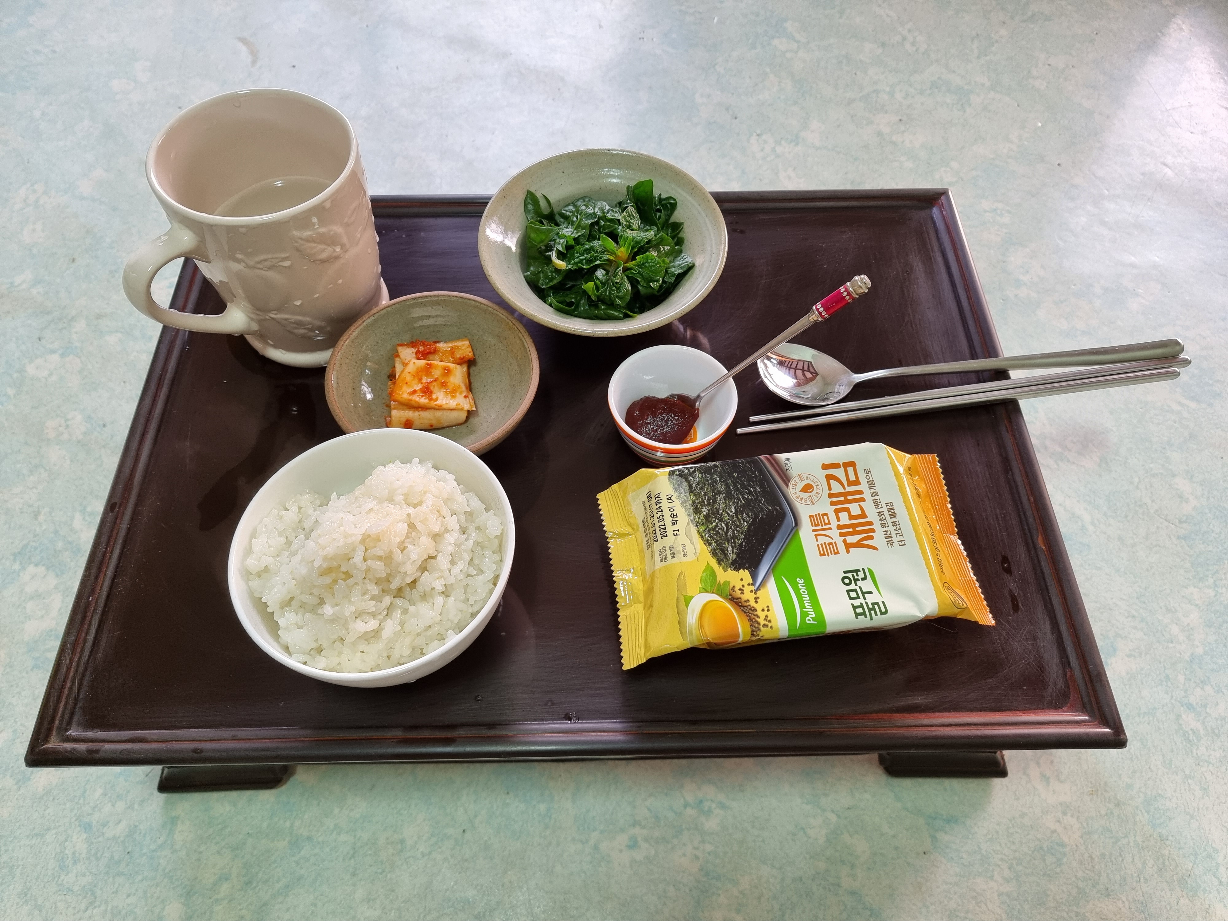 따끈한 새 밥이 그리 맛이 좋기 때문이다. 반찬도 큰 접시 하나 또는 둘에 딱 한 끼 먹을 만큼만 담는다.