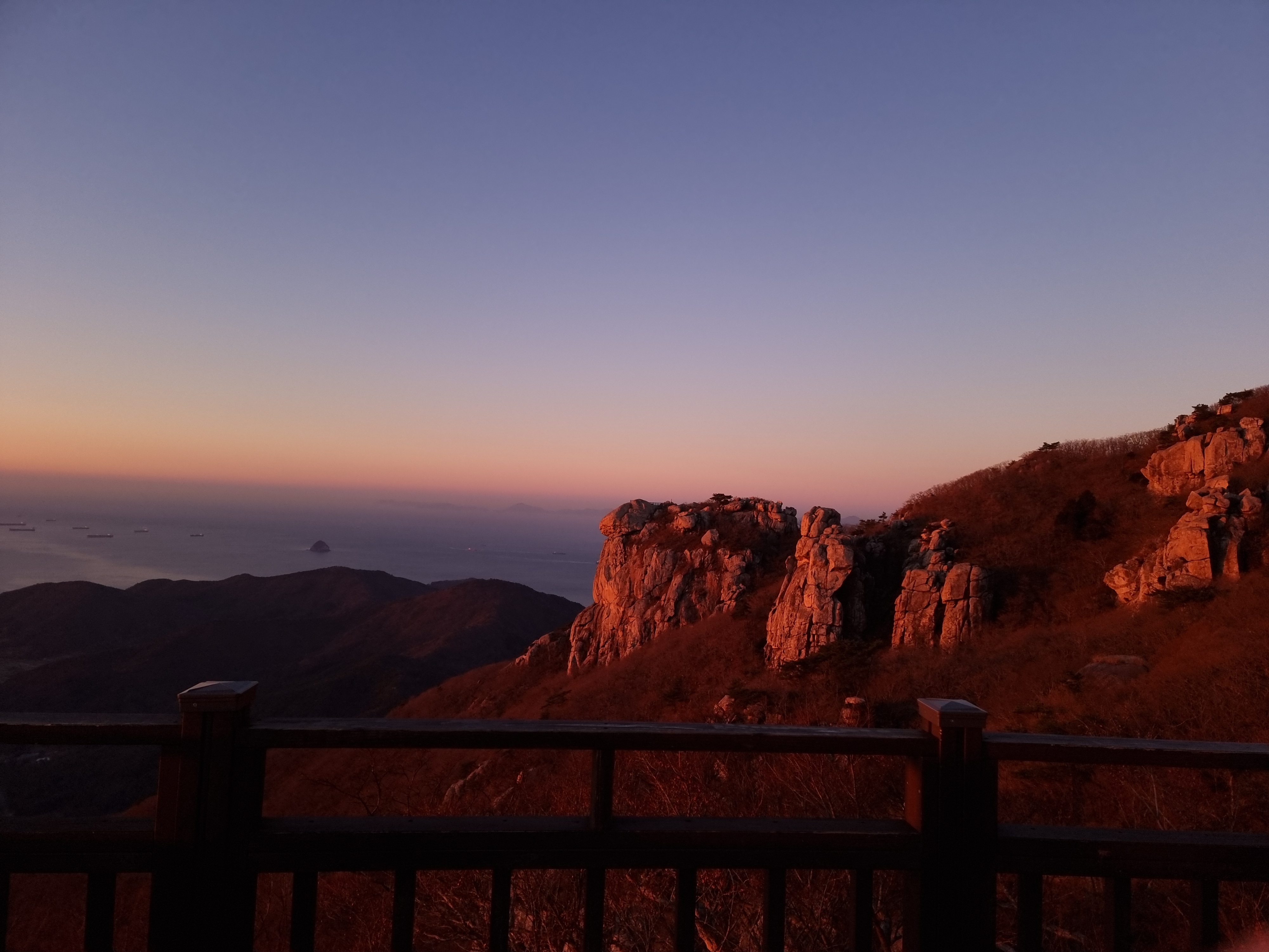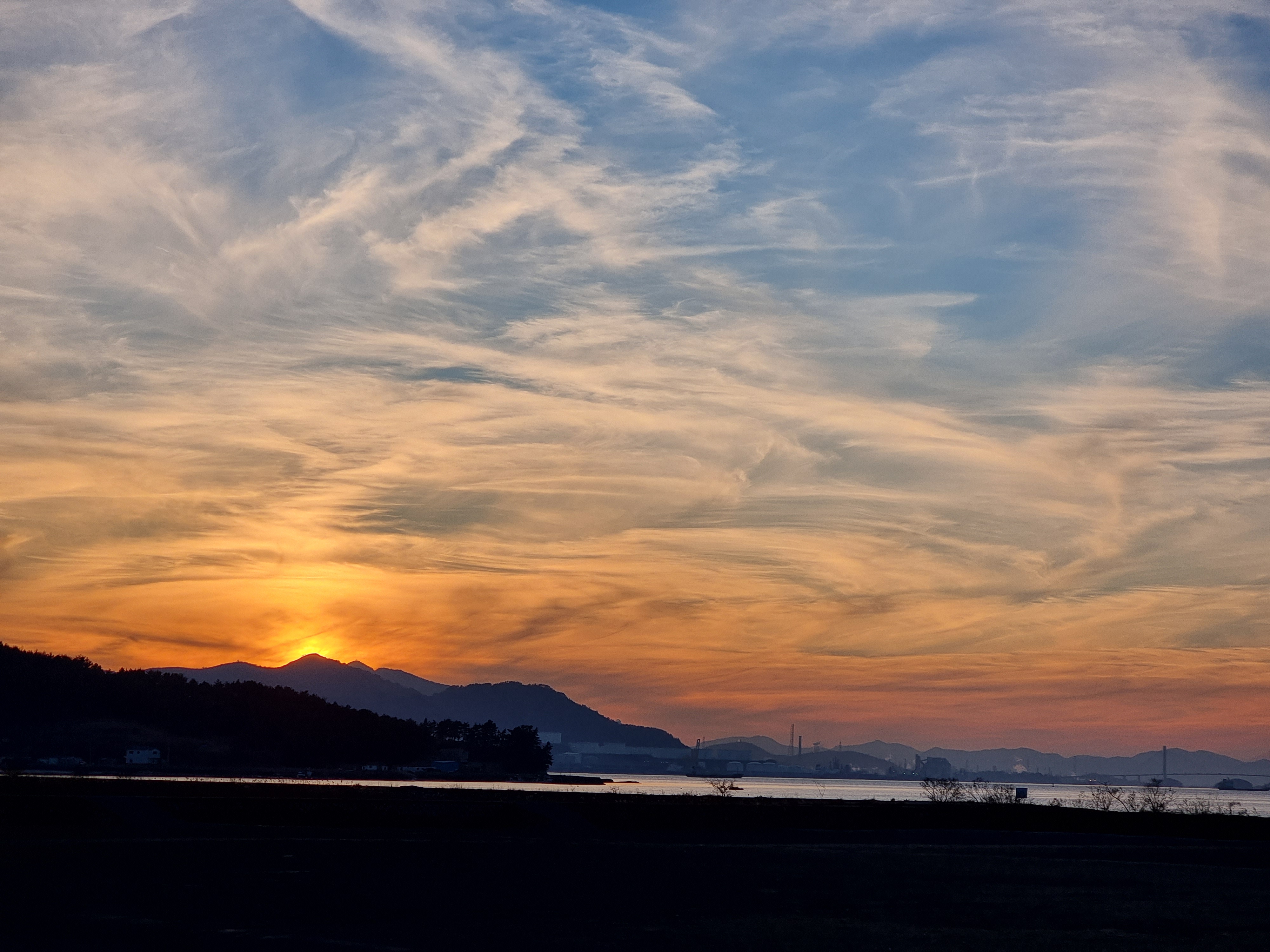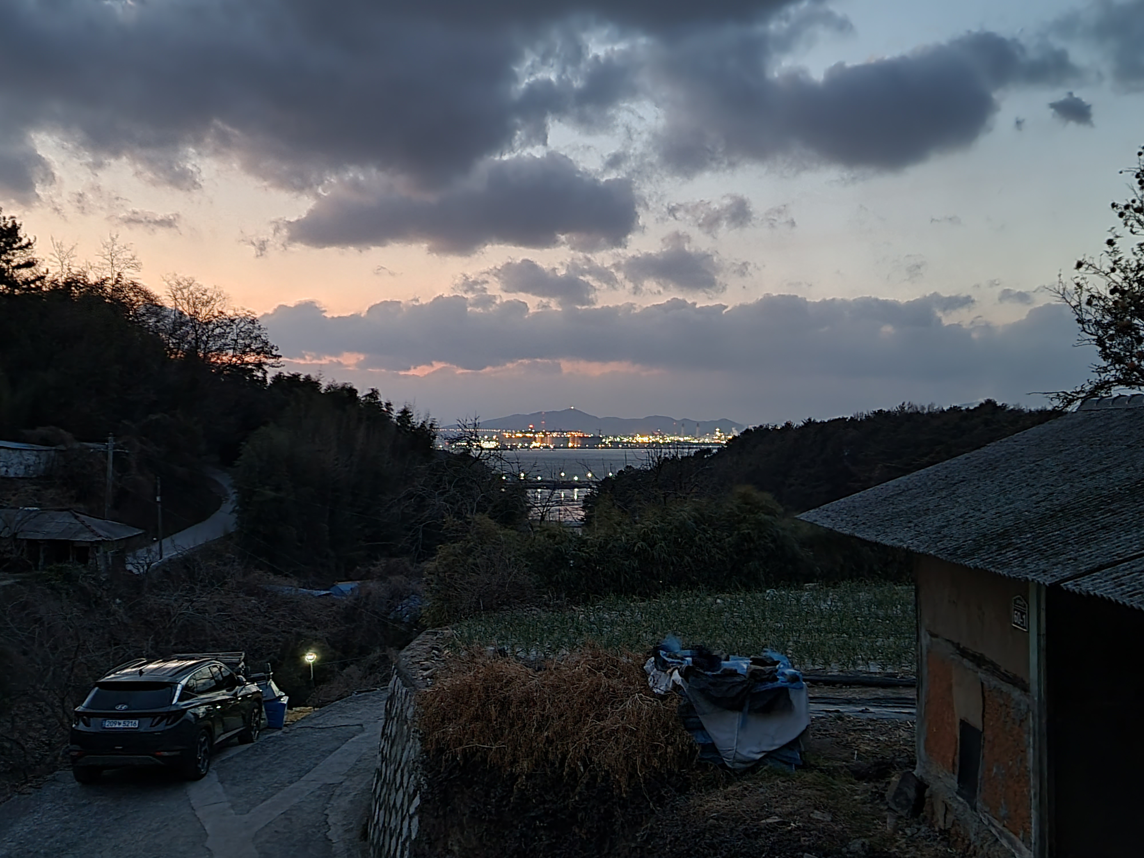 날이 어둑해 지니 멀리 보이는 광양에는 공장의 불빛들이 찬란하다.