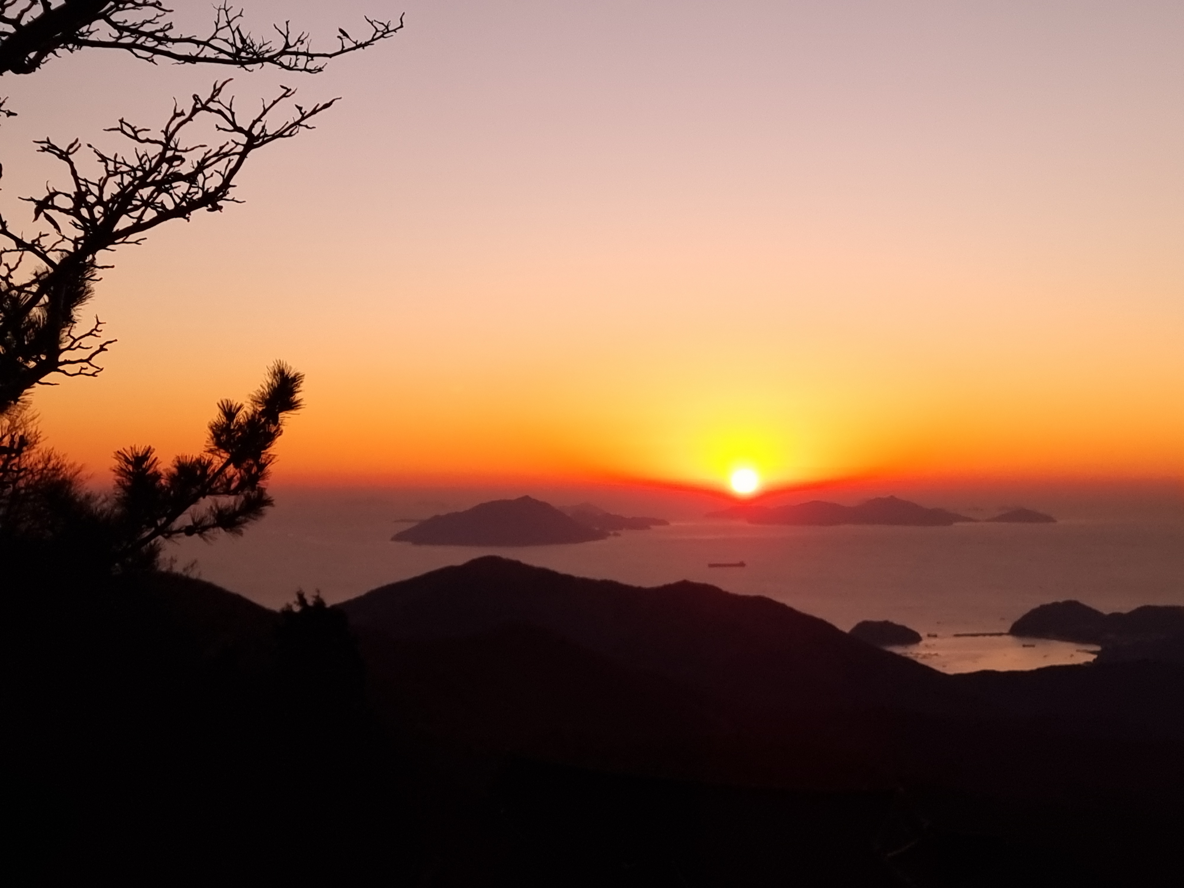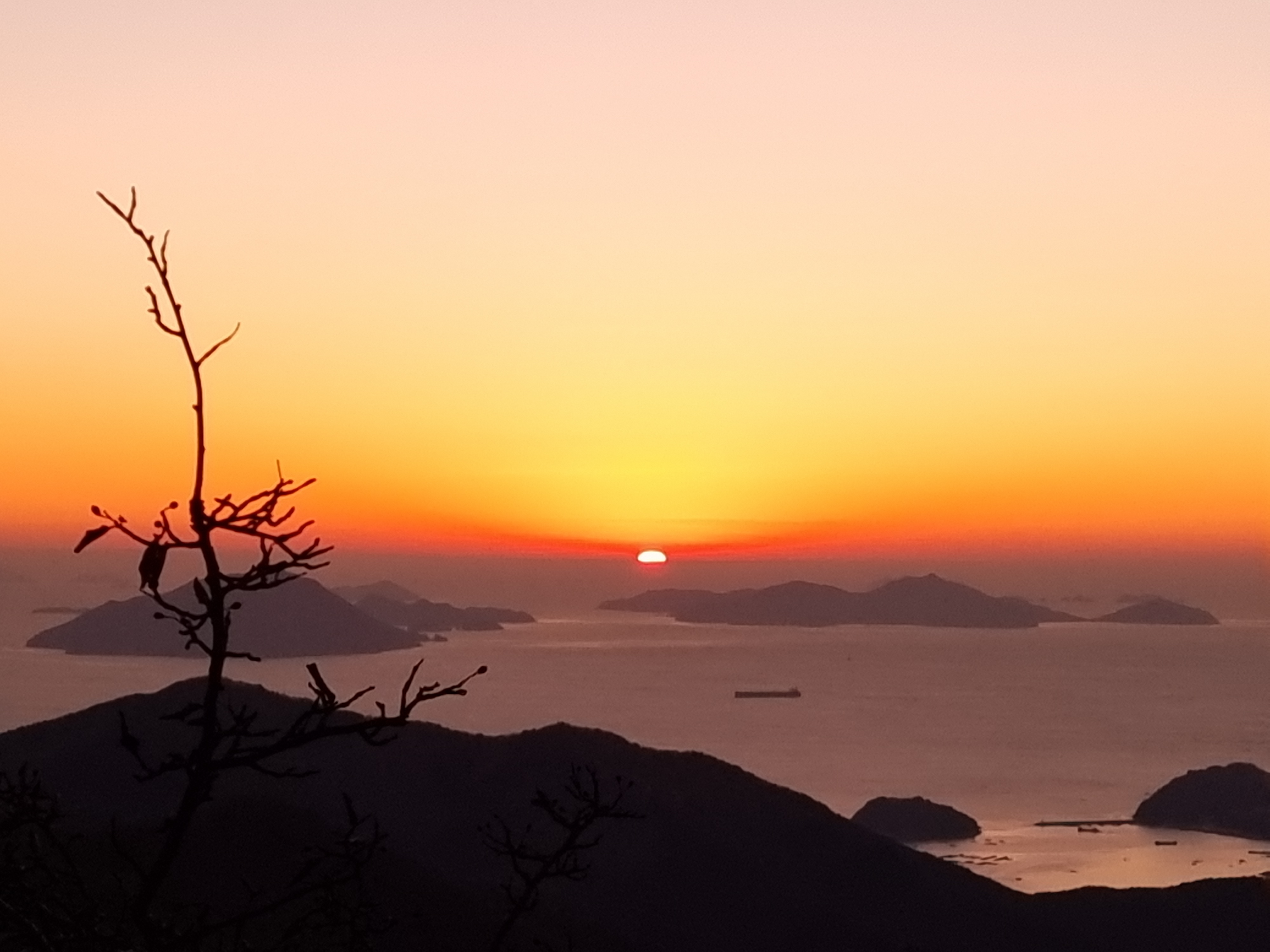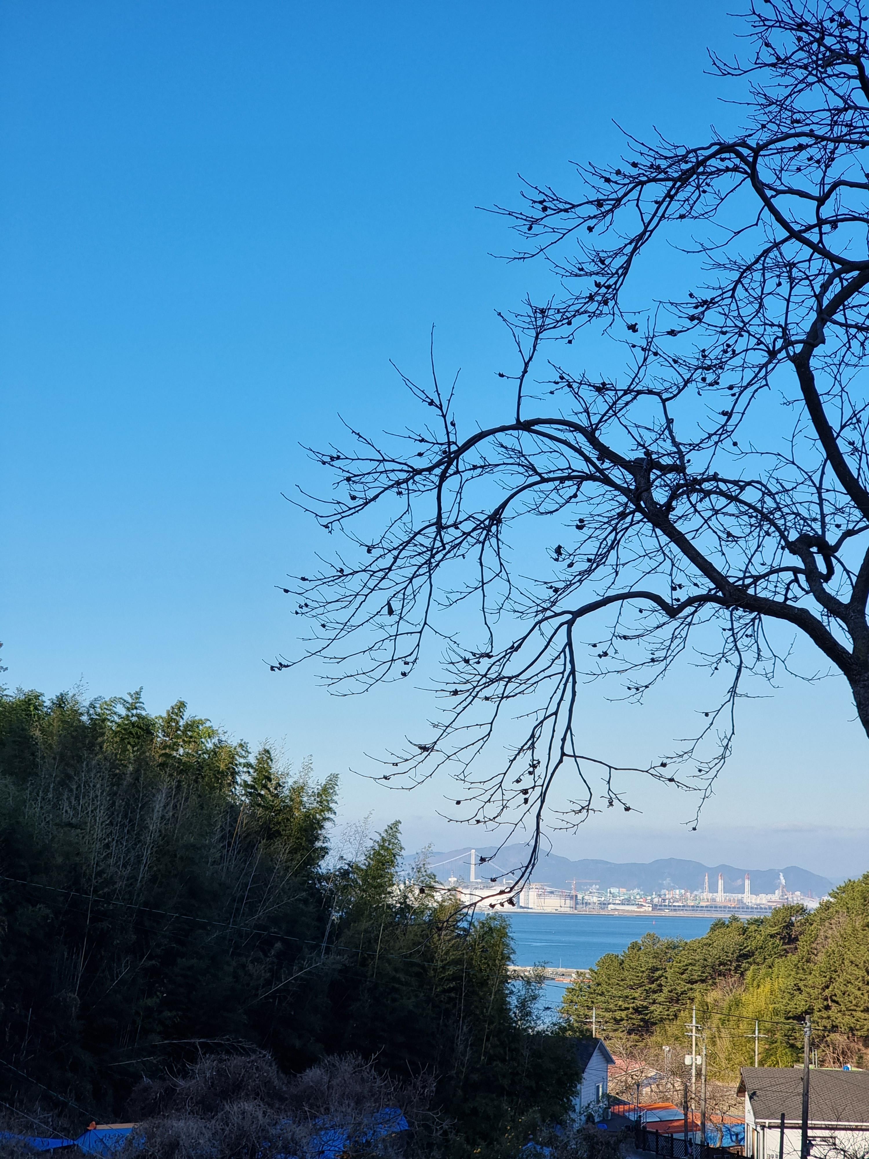 날이 어둑해 지니 멀리 보이는 광양에는 공장의 불빛들이 찬란하다.