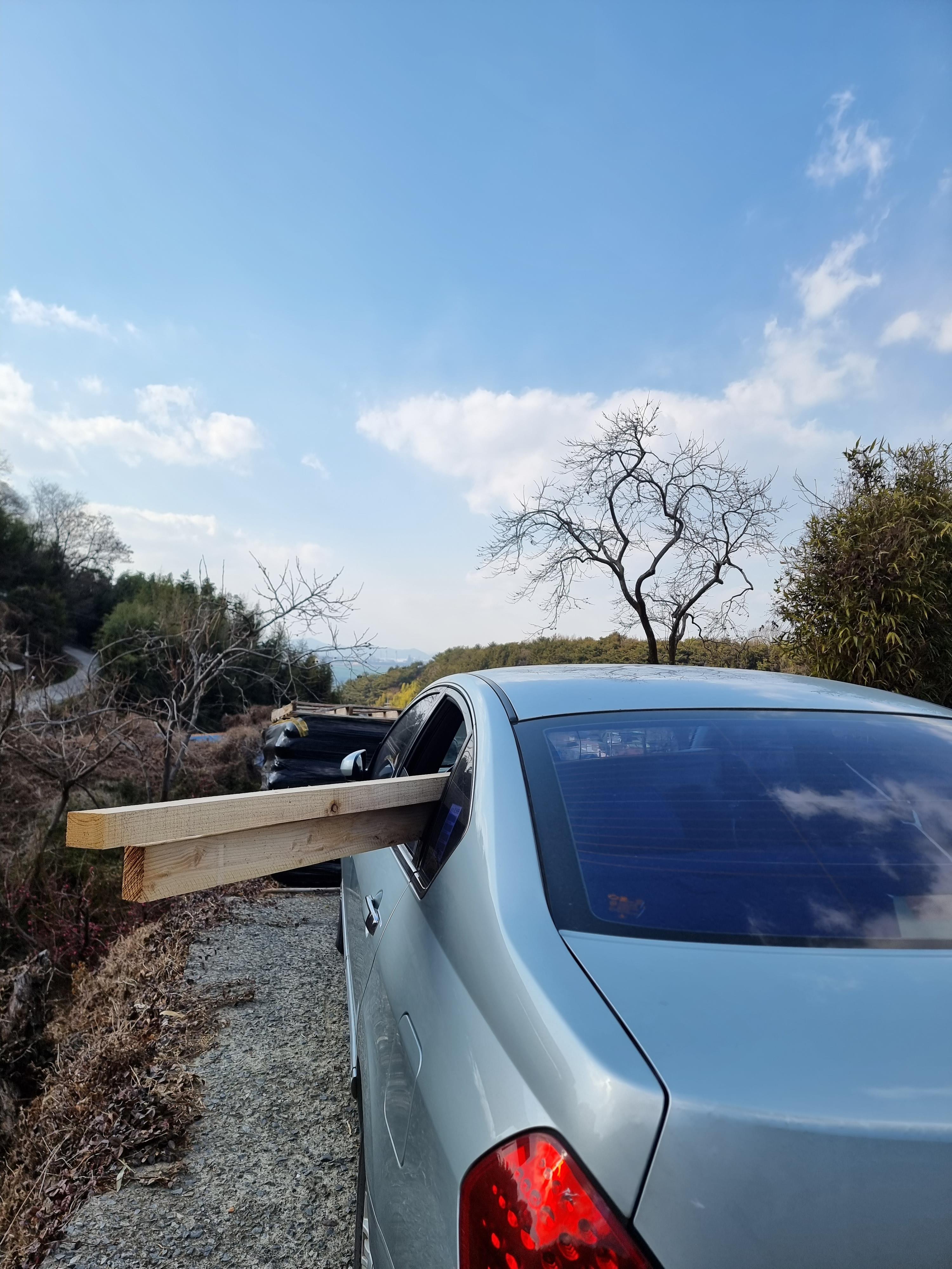 시멘트 벽돌 10장, 황토 벽돌 10장도 차에 실었는데, 각목은 너무 길어서 창 밖으로 노출되어 비상깜빡이를 켜고