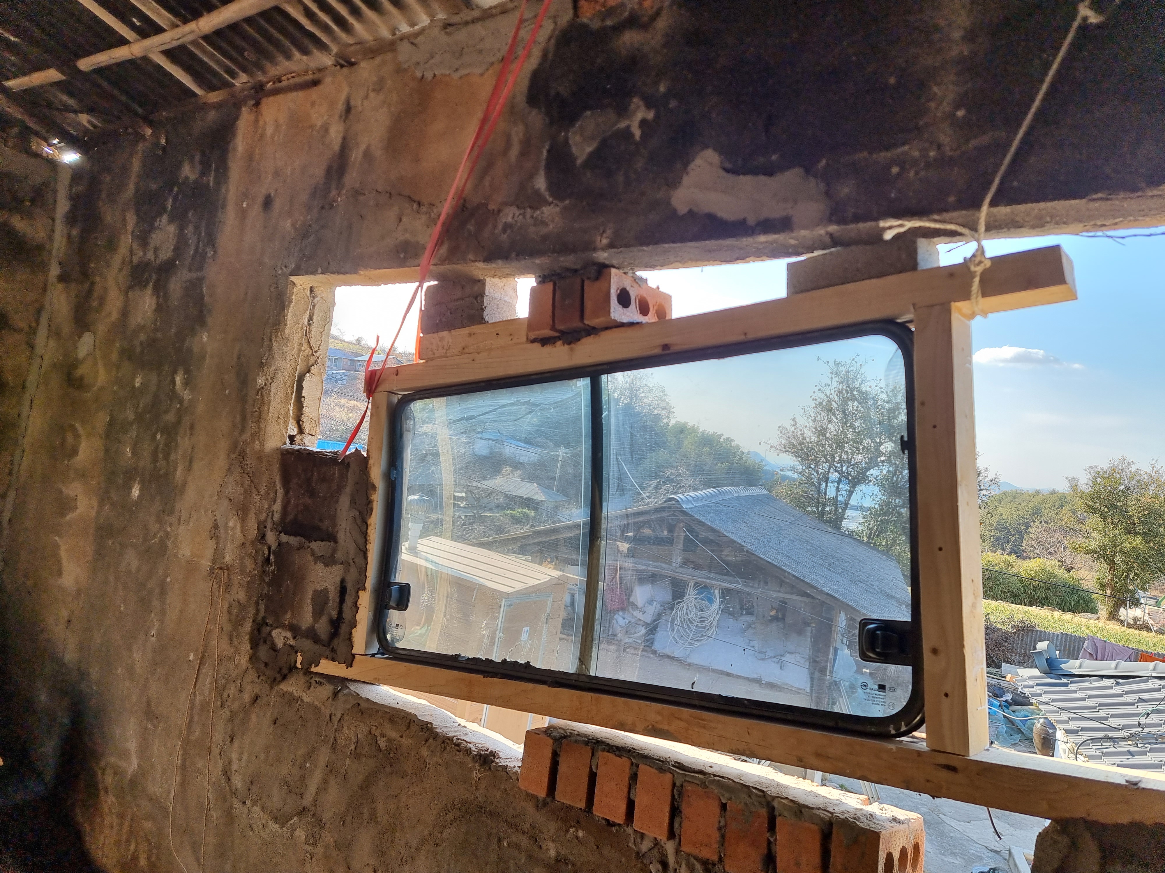 - 어제에 이어 오늘도 온돌 부엌 창문 고정 작업을 했는데, 일단 빈 공간은 어떻게든 메꾸었으니, 1차 작업은 끝난 듯