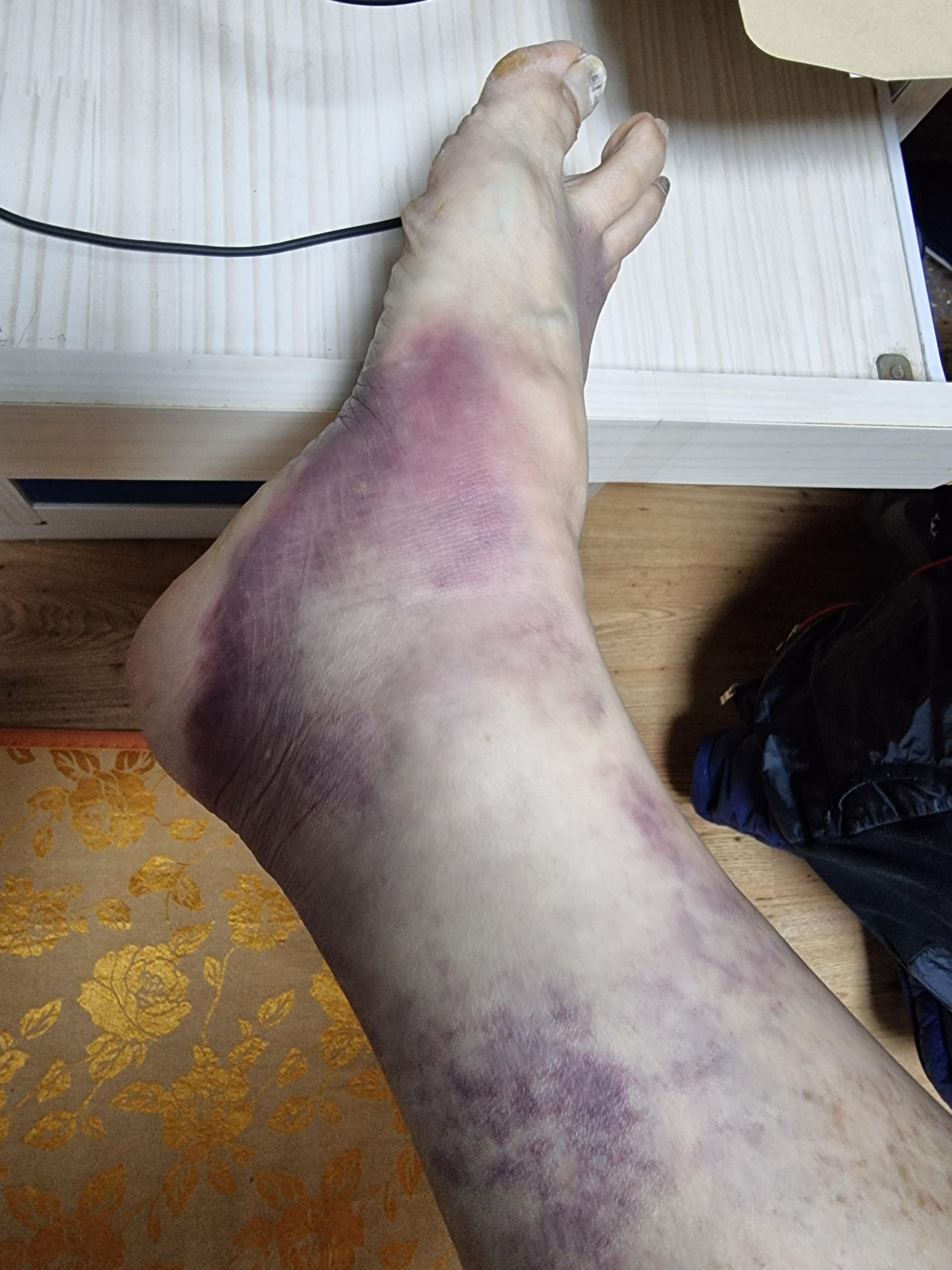 - 지붕 보수 작업 중 사다리가 부러지는 바람에 정강이 밑 상처 생김.