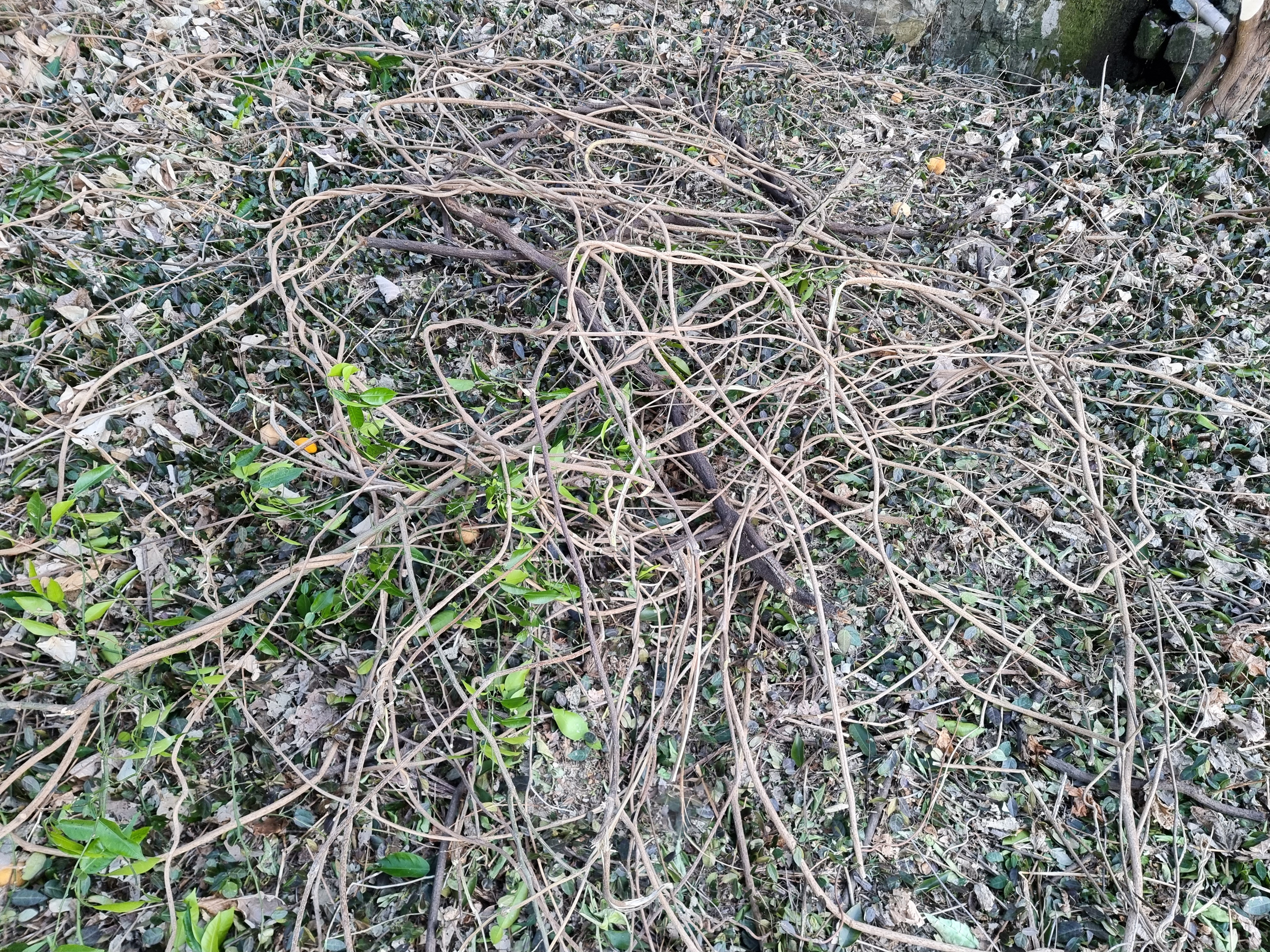 - 오후 5시쯤 그 일을 마치고, 유자 나무를 타고 올라가 있는 칡넝쿨을 제거했다. 작년 11월에 줄기를 자르면서