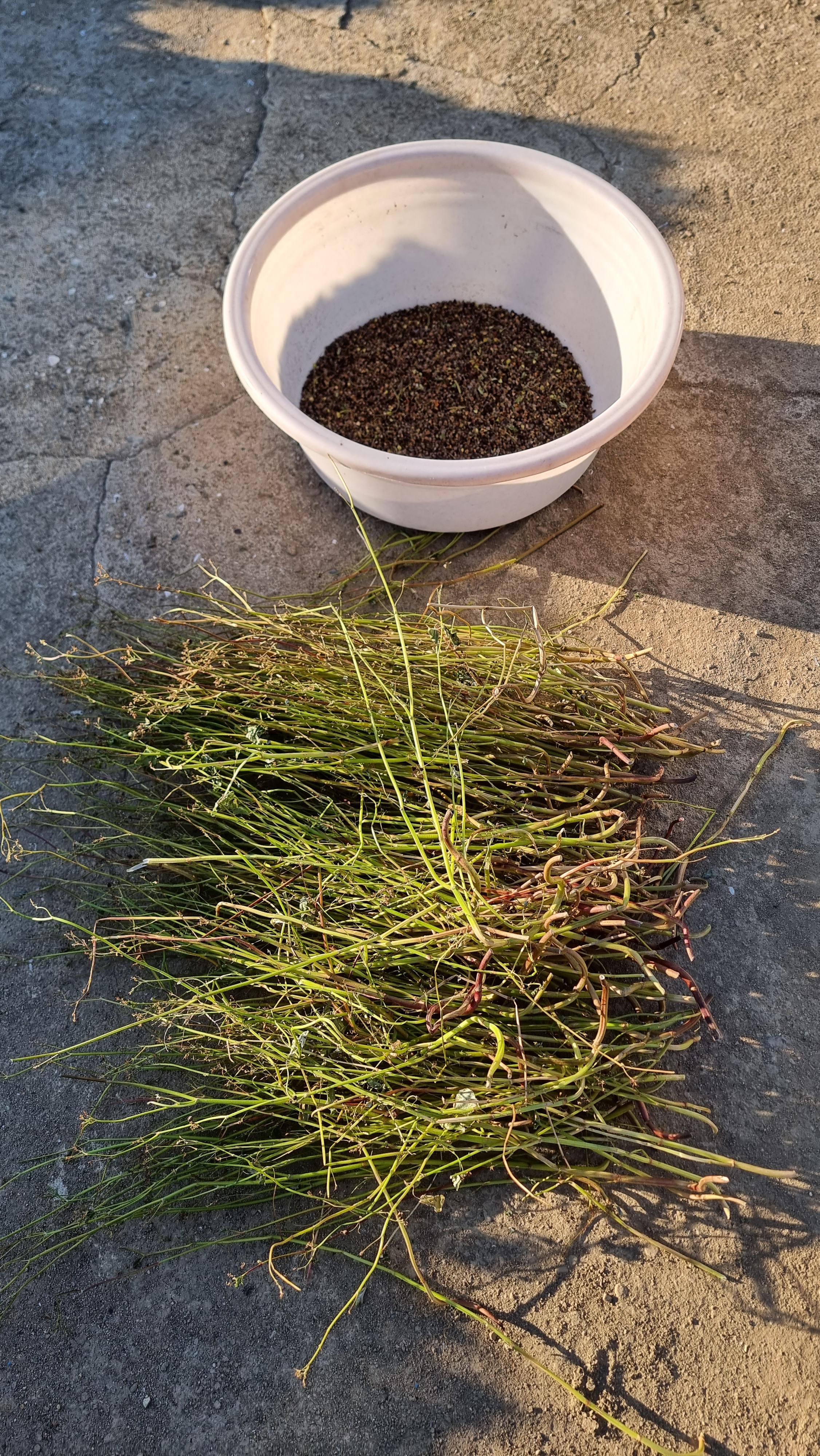 - 2시간 정도를 작업했는데, 오랜만에 땀 좀 흘렸다. 미나리 밭을 만들 때 흙을 파내고 비닐을 깔고 다시 흙을 넣었다. 그렇기에 밭으로 되돌리려면 미나리 밭의 흙을 다 파내고, 깔았던 비닐을 걷어 내고, 다시 흙을 채우고.....