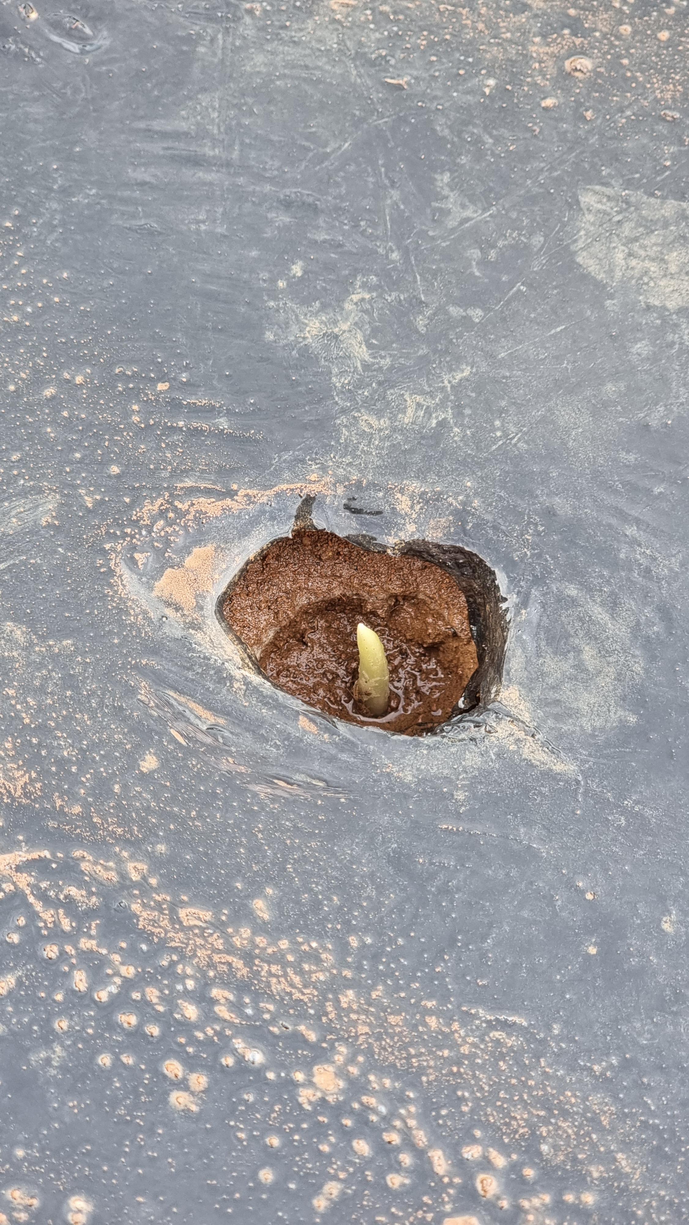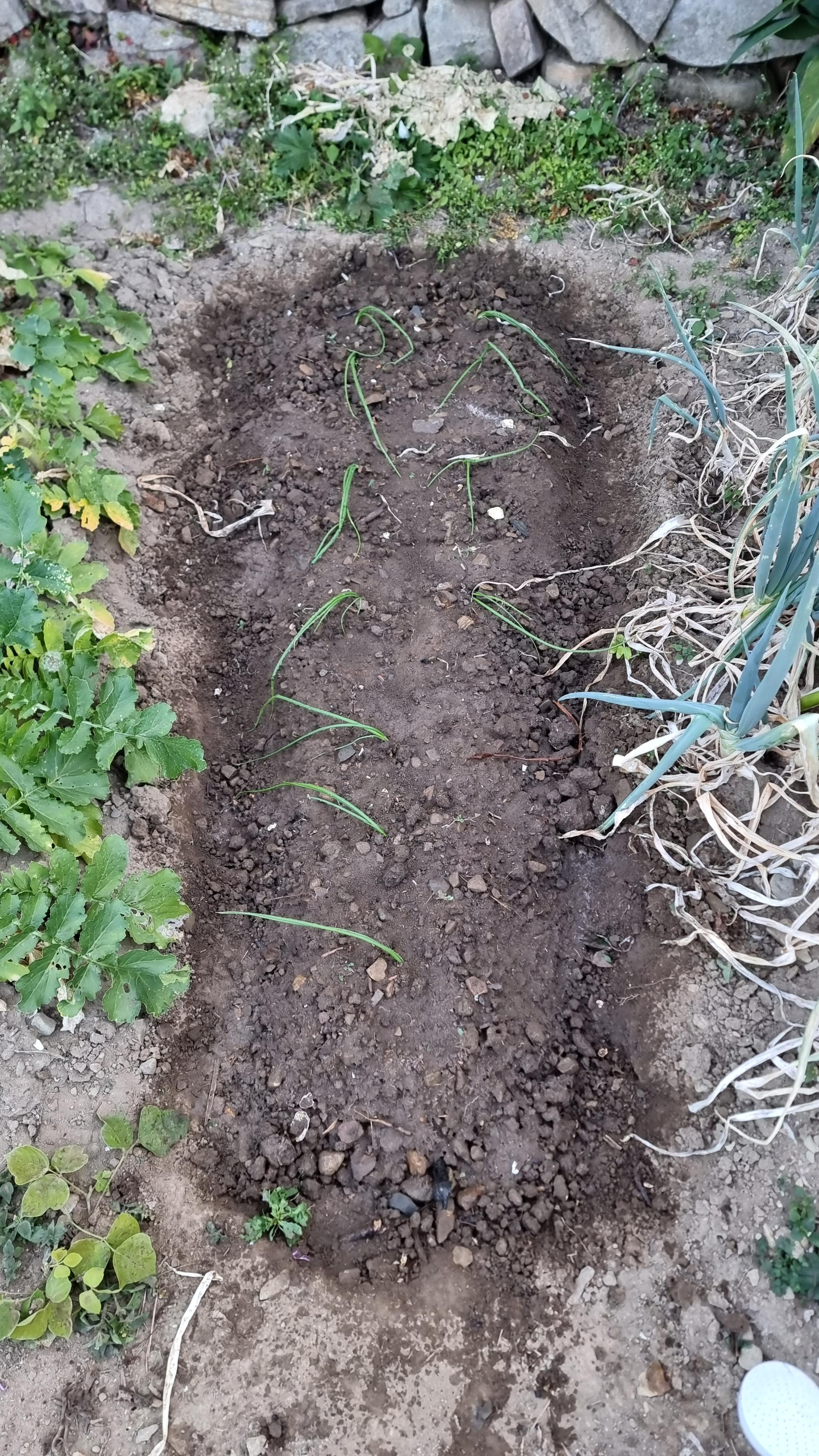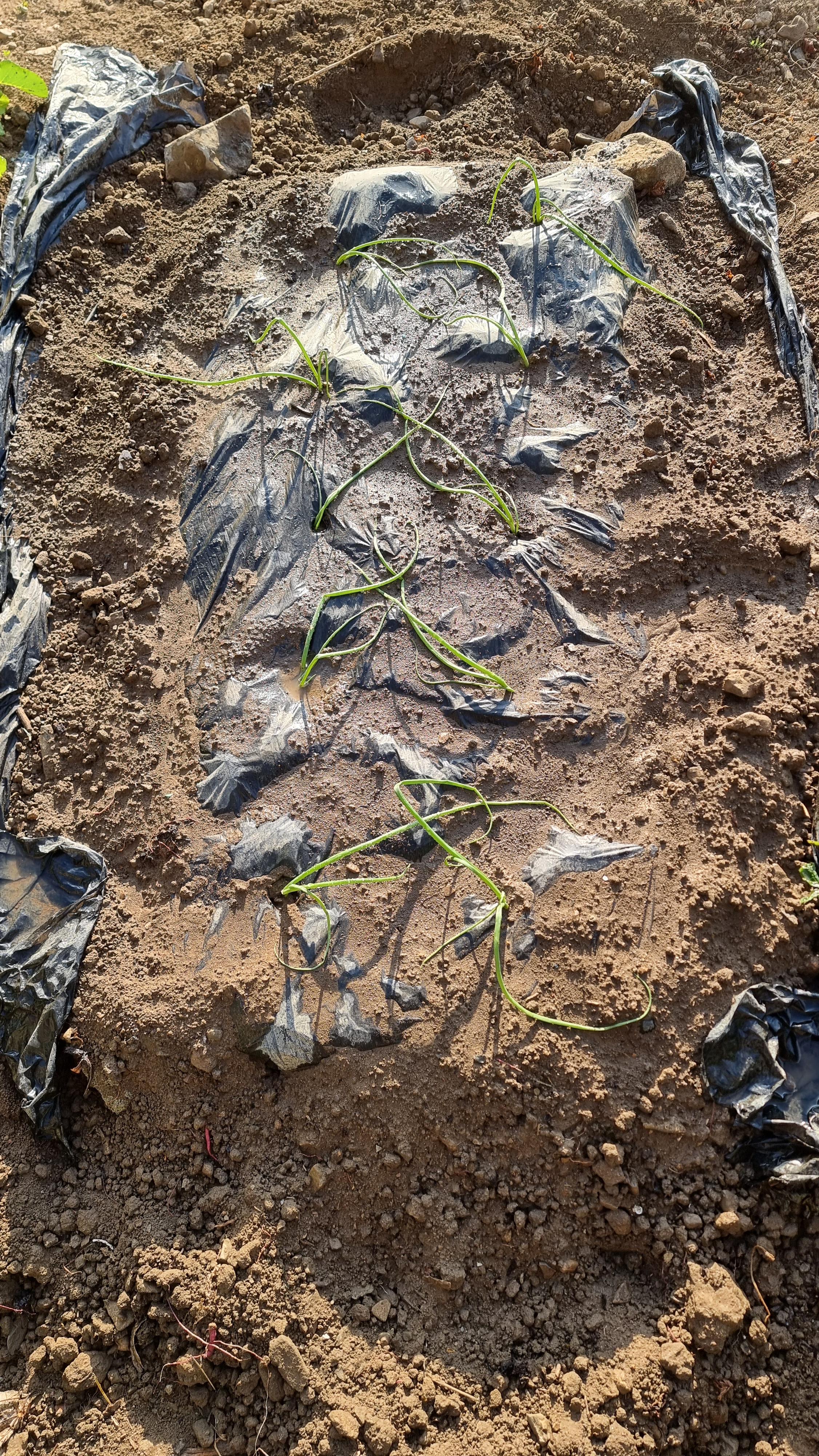 - 9시쯤 밤알 몇 개를 넣은 아침을 먹고는 뒷 밭에 마늘을 심으려고 두둑을 만들어 비닐로 덮어 놓은 곳에 구멍을 뚫었다.