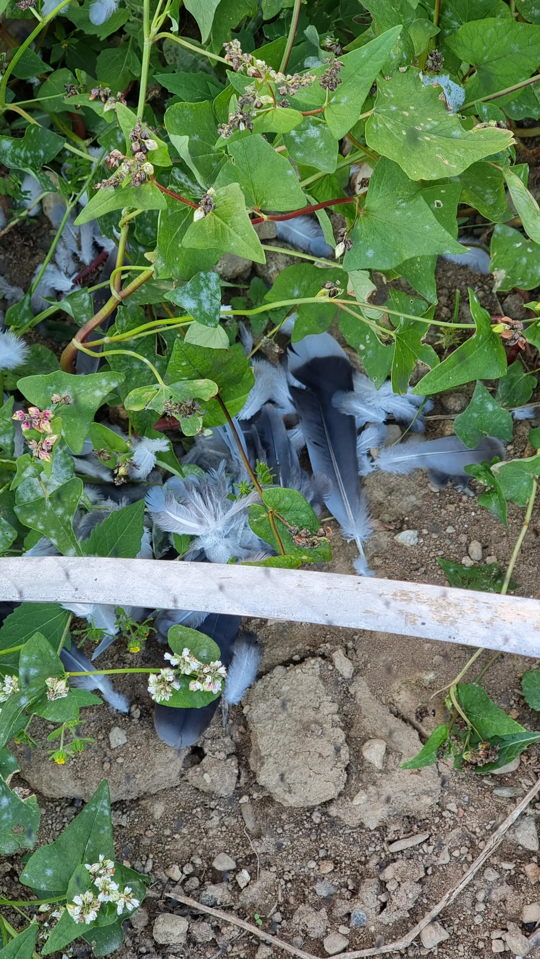 - 여느 아침과 다름없이 5시 쯤 눈을 떠서 잠시 책상 앞에 앉았다가 날이 샌 6시 반쯤 밖으로 나갔다. 잠시 운동을 하고, 일과로 하는 일인 집 주변과 밭을 한 바퀴 돌아 보았다. 그런데 맨 마지막으로 메밀과 시금치가 심어져 있는 집 뒤 밭을 도는데 '푸드덕'하는 소리가 들려 가까이 가봤더니 큰 새가 메밀을 덮어 놓은 그물 속으로 들어가 나가지 못하고 난리를 치고 있었다. 얼른 가서 새를 잡았는데 옥수수를 무참하게 뜯어 먹은 놈들과 같은 새였다. 아마도 암꿩(까투리) 같은 데 꿩 치고는 크다. 새에 대한 지식이 없어 확신할 수 없었다. 그래서 단체 카톡에 올렸더니 다들 까투리 같다고 말씀들 하신다. 우선 그 새의 다리를 끈으로 묶어 닭들이 이미 산으로 가고 비어 있는 닭장에 넣어 두었다.