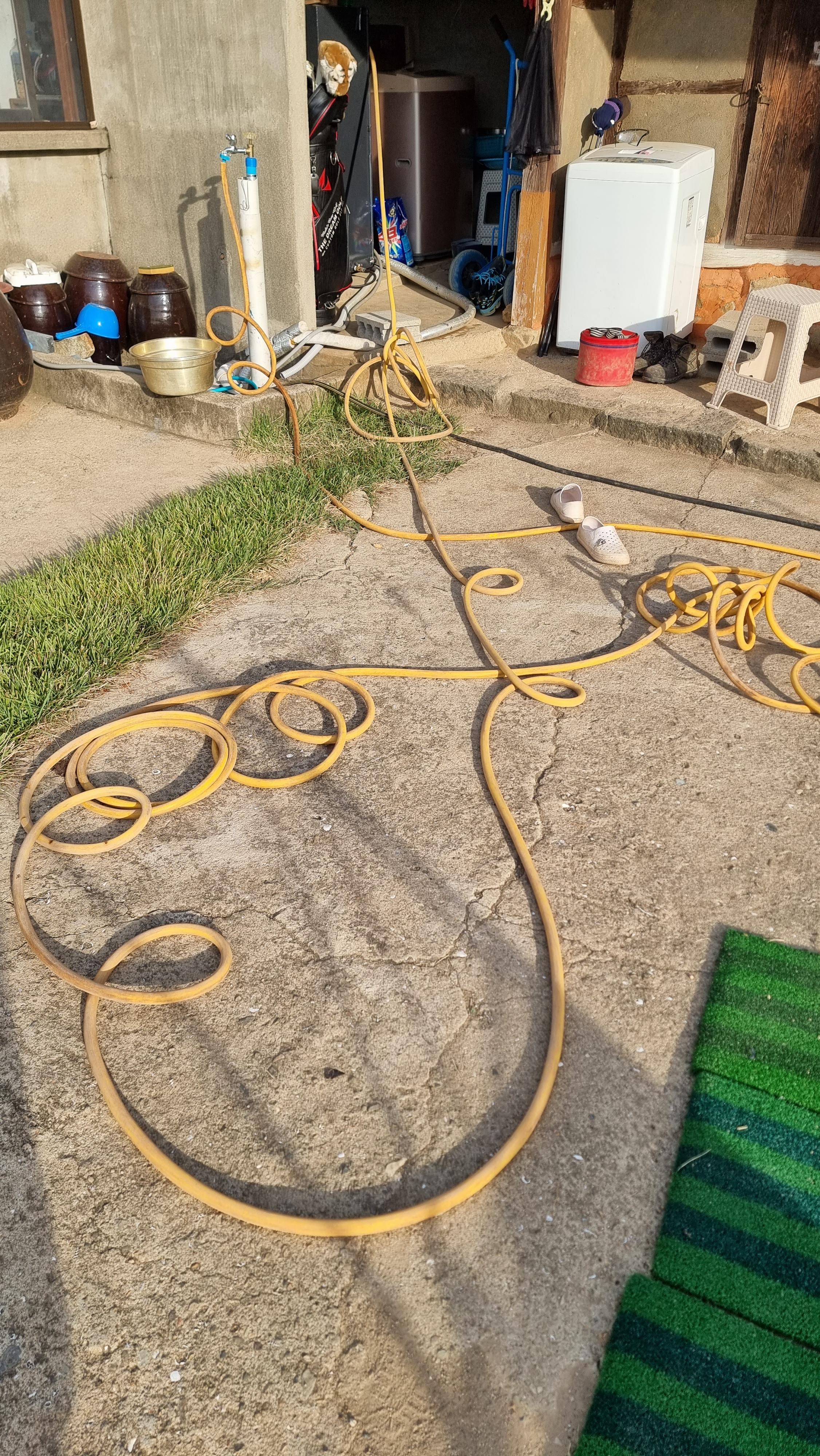 - 아침 운동을 마치고 농업용 수도를 이용해 시금치 밭과 마늘 밭에 물을 듬뿍 주었다. 호스에 스프링 쿨러를 이용하면 편리하겠지만 아직 그정도 까지는 아니라 손을 이용했다. 상수도가 들어오기 전에 공급되었던 마을 수도를 농업용수로 이용하고 있는데, 농번기에만 공급된단다.