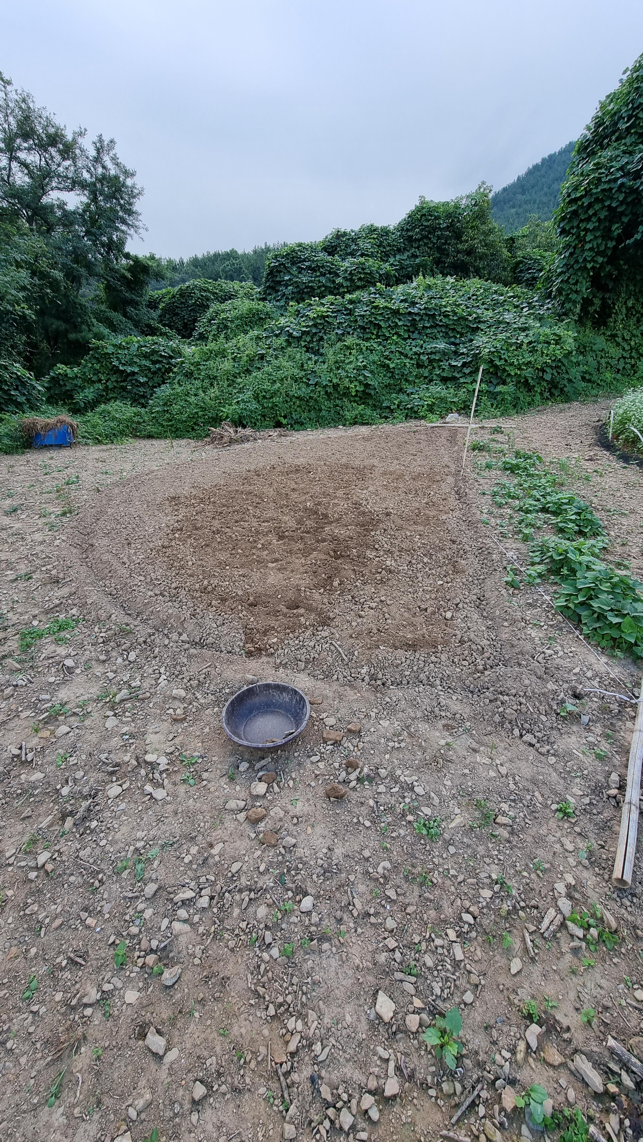 - 친구의 전화 덕분에 아침을 조금 일찍 시작한 듯하다. 6시쯤 방을 나와서 잠시 운동을 하고, 닭장 문을 열어 주고, 계획해왔던 일을 시작하기로 했다. 뒷 밭에 시금치 밭을 만드는 것인데, 메밀이 심어져 있는 북쪽 편이고 향후 과실나무를 심기 위해서 비워 둔 곳이다. 가서 곰곰히 생각해 봤더니 '반달' 모양으로 밭을 만들어도 될 듯했다. 그래서 메일 심을 때 사용했던 줄을 가져와 콤퍼스처럼 이용해 반달을 만들었다.