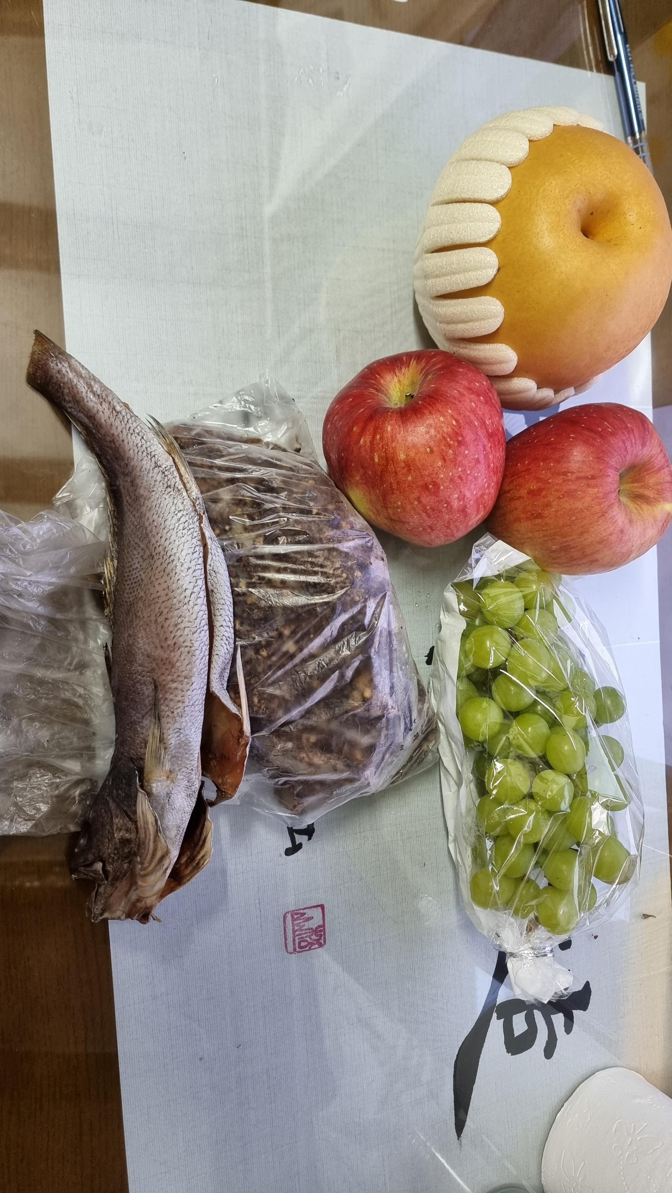 - 점심을 먹고 쉬고 있는데, 건너집 할머님께서 과일을 가져다 주셨다. 배 하나, 사과 두개, 밀감 두 개와 한과 세 봉지다. 참으로 고마운 분이다. 오후 5시쯤 해서는 앞집 박 사장님께서 밤을 털러 오셨다. 같이 밤을 털었는데 밤도 한 봉지 주셨다. 늦은 저녁 쯤해서는 또 이웃 할머님께서 과일 등을 가져다 주셨는데, 배 하나, 사과 둘, 포도 한 송이, 시루떡 조금과 조기 한 마리를 주셨다. 참으로 좋은 이웃 분들이다. 명절인데 난 인사도 못드렸는데....