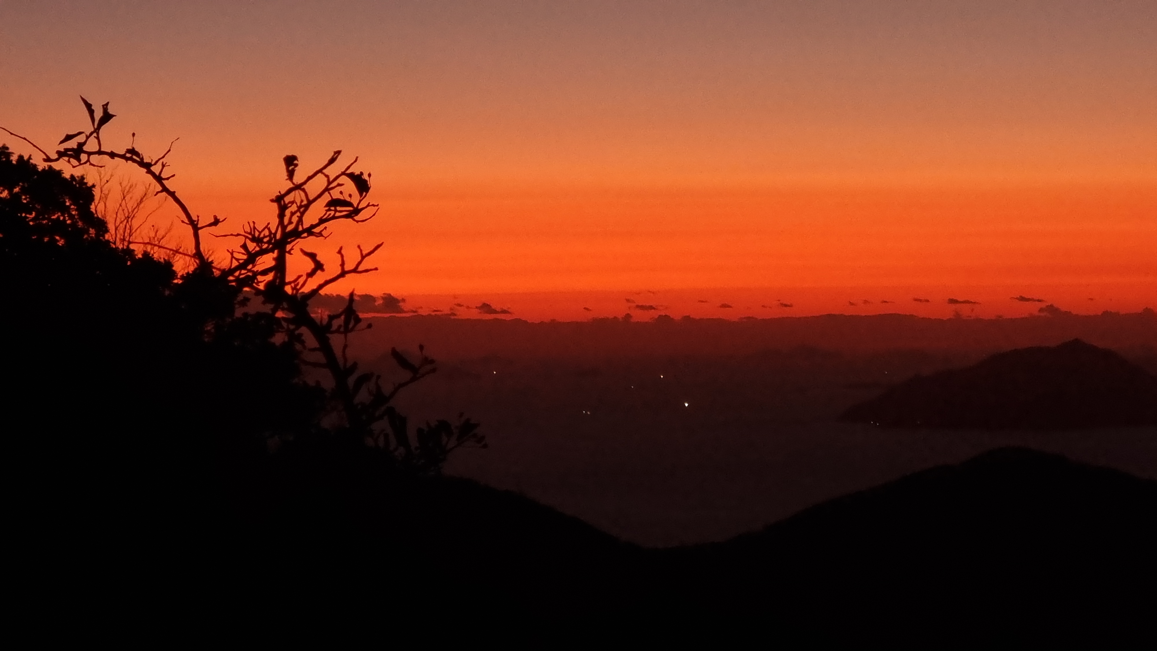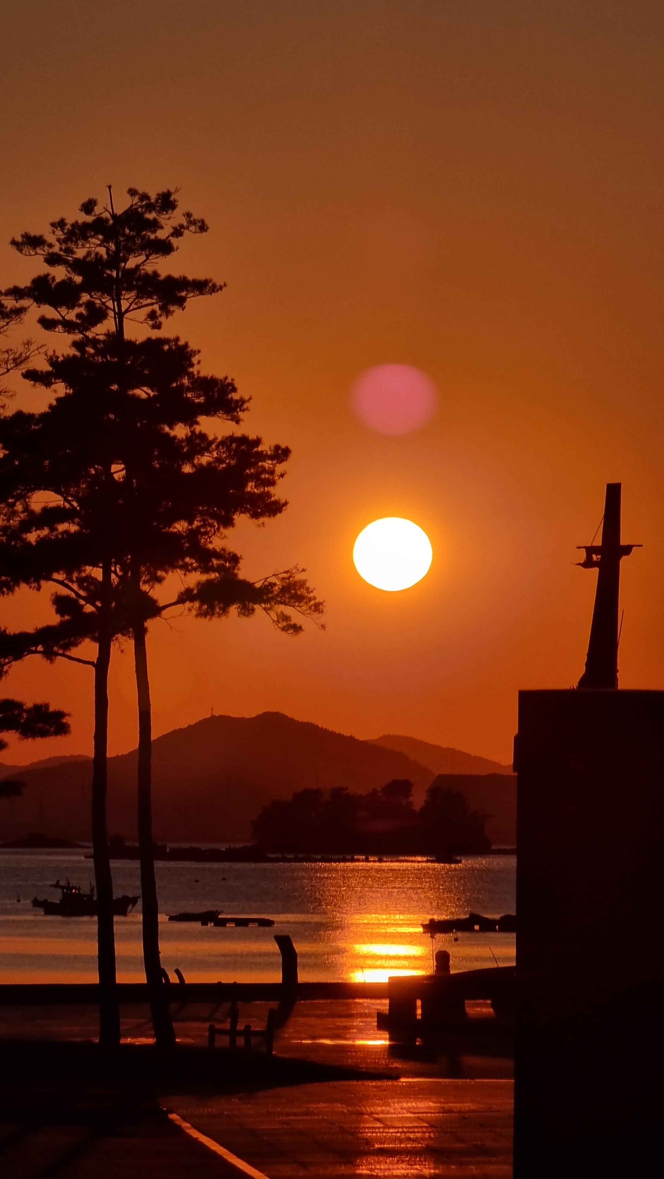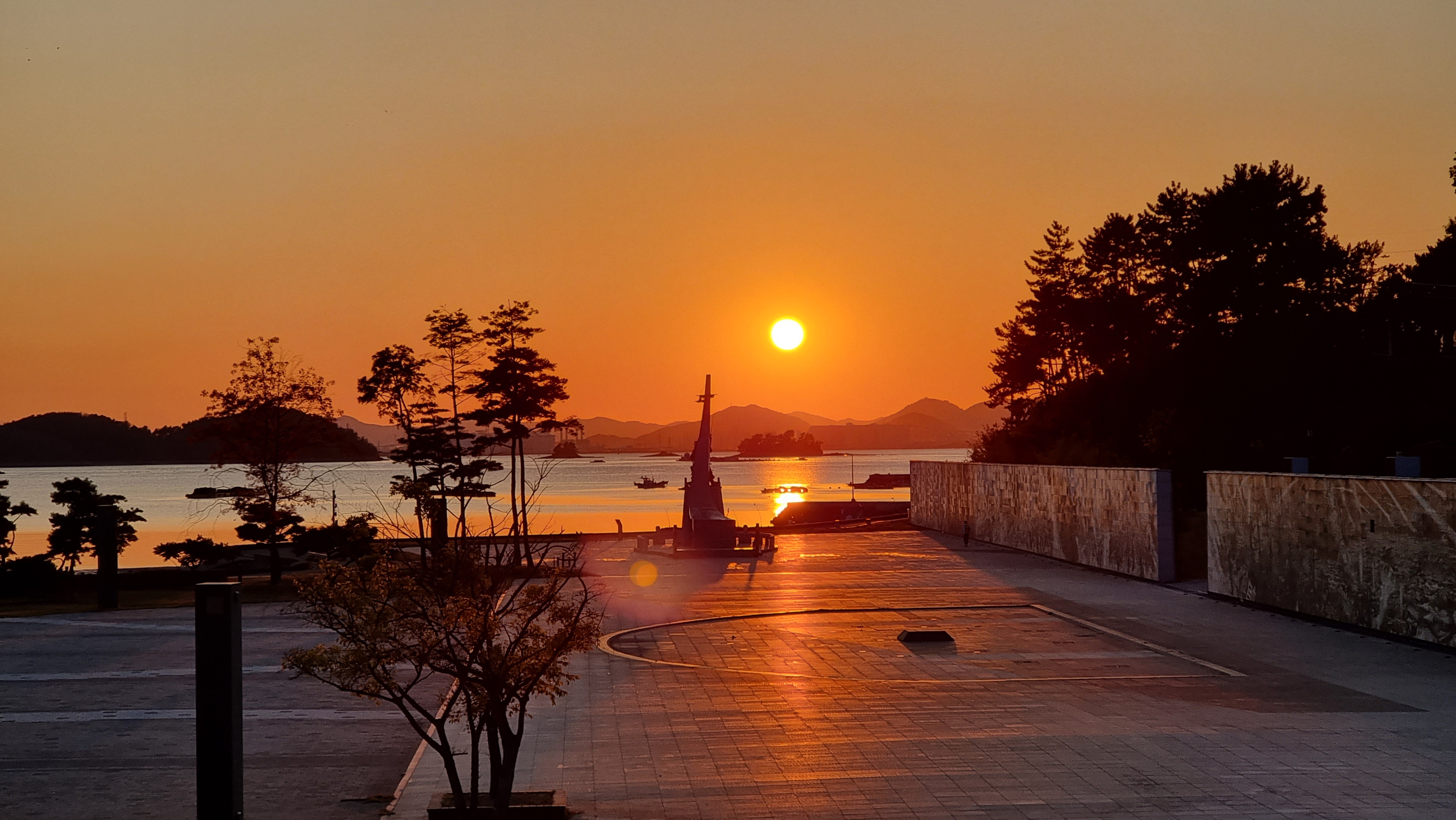 - 여느 때와 다름없는 하루를 시작하였다. 오전에는 시금치와 마늘과 양파에도 물을 좀 주었고, 마당에 널어 놓은 메밀이 잘 마를 수 있도록 이리저리 위치를 옮겨 주기도 했다. 점심을 먹고는 우리 집에서 약 10분 거리인 '이순신 순국 공원'에서부터 '구노량 마을회관'까지 걸었다. 이것은 남해 바래길 14코스의 일부다. 다시 구노량 마을회관에서 되돌아 내 차가 주차되어 있는 '이순신 순국 공원' 주차장까지 자동차 전용도로를 따라 걸어 왔다. 거기에 도착했을 때 마침 일몰시간이라 뜻하지 않은 멋진 일몰을 볼 수 있었다.