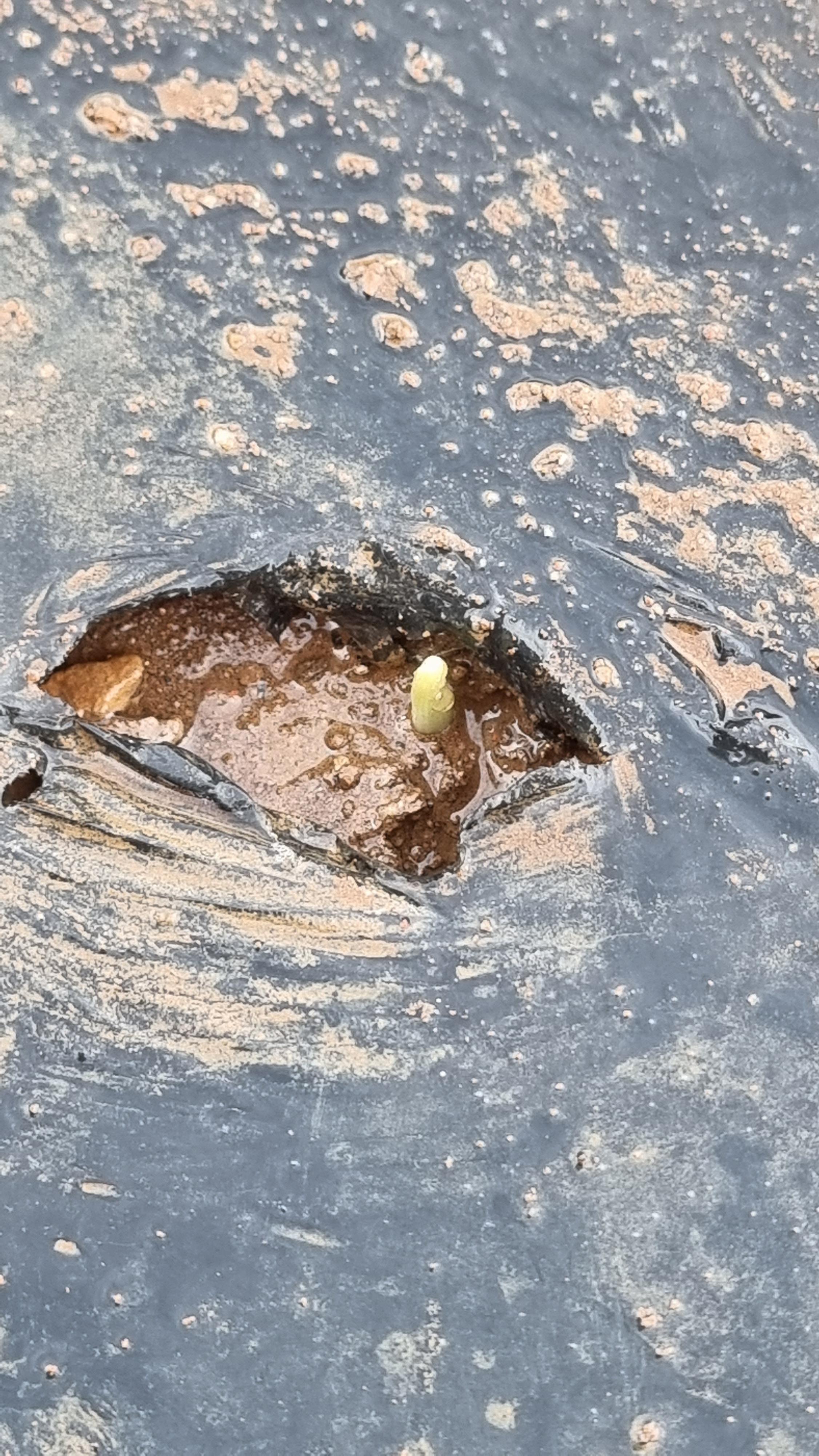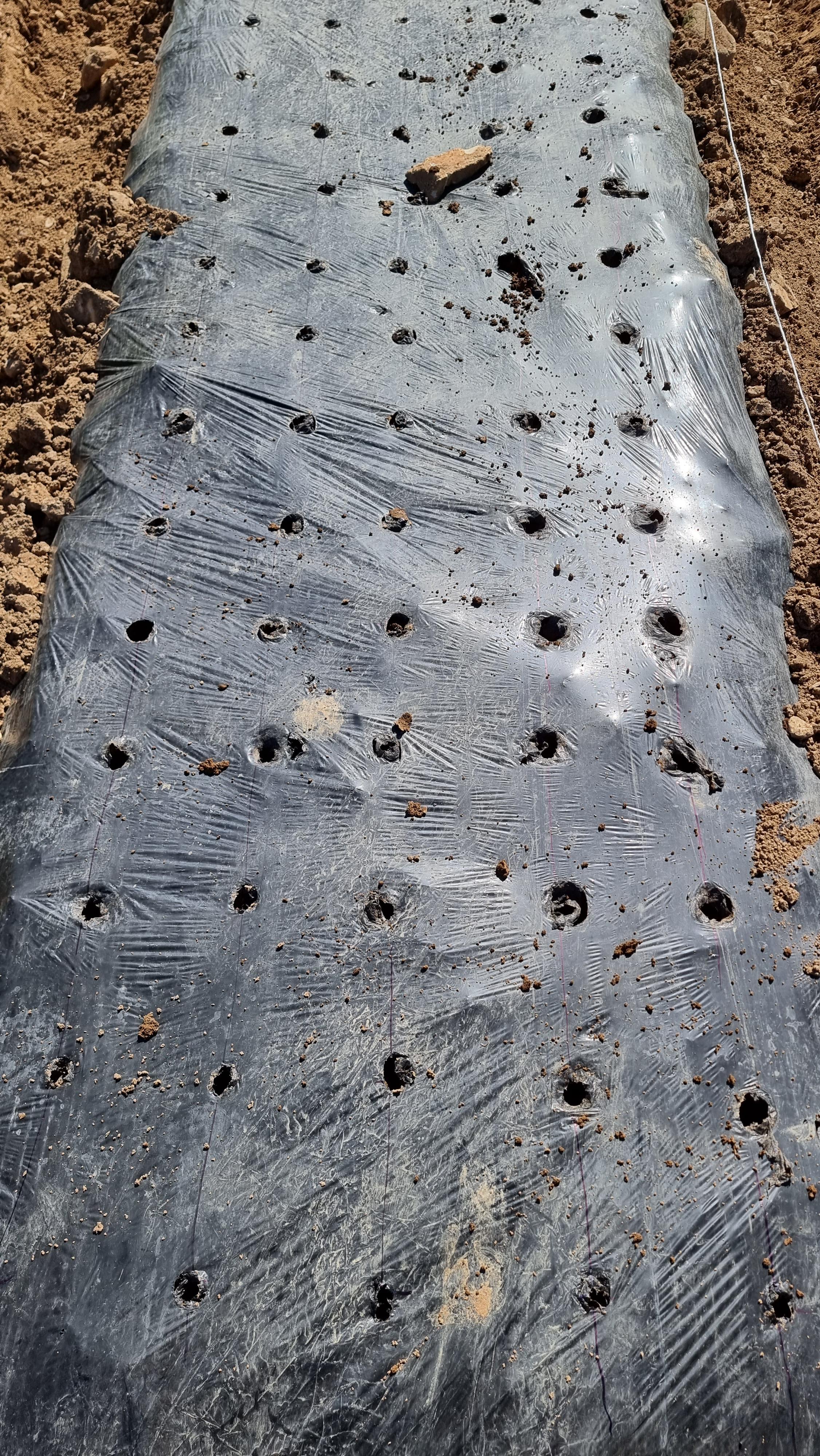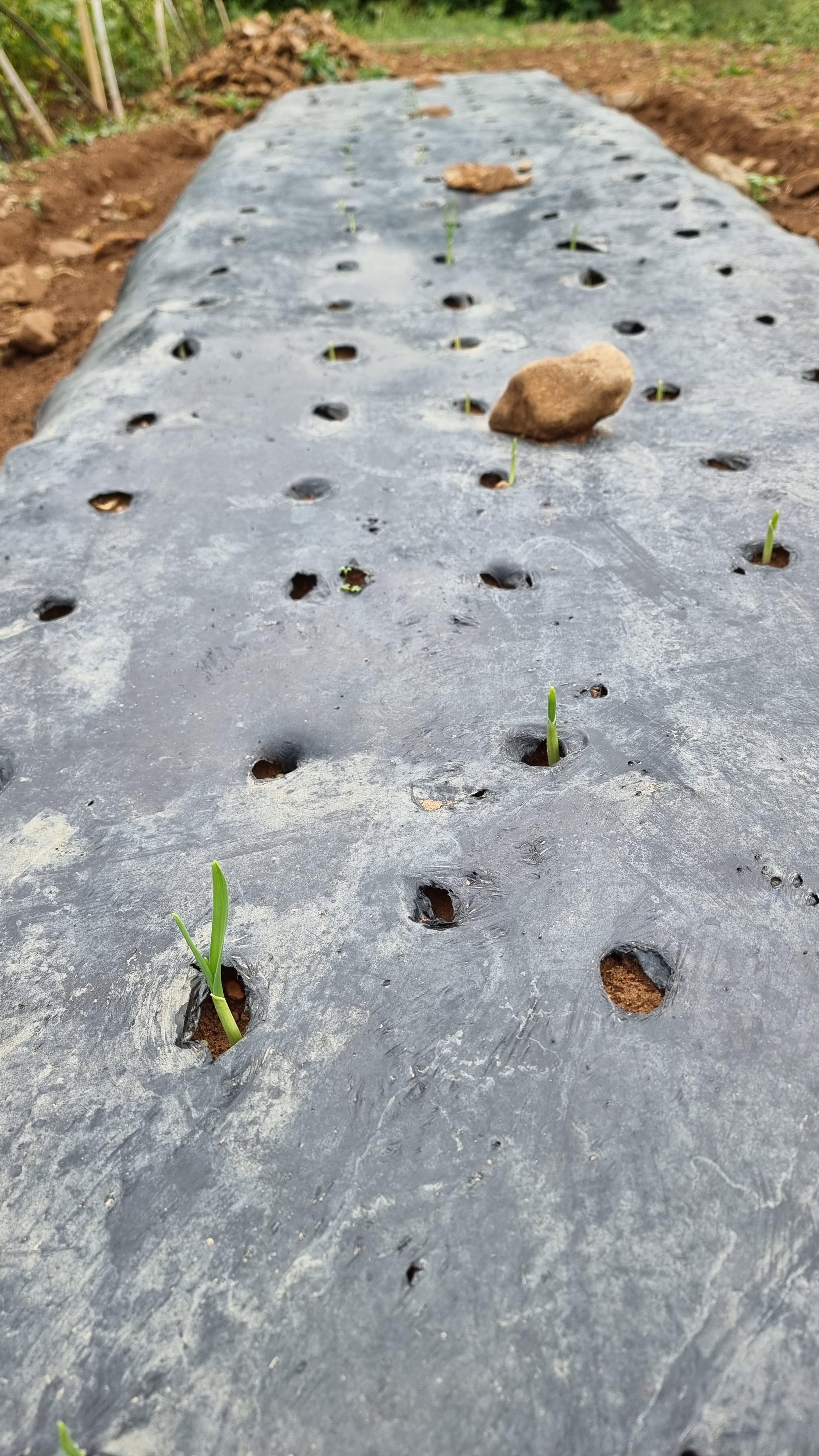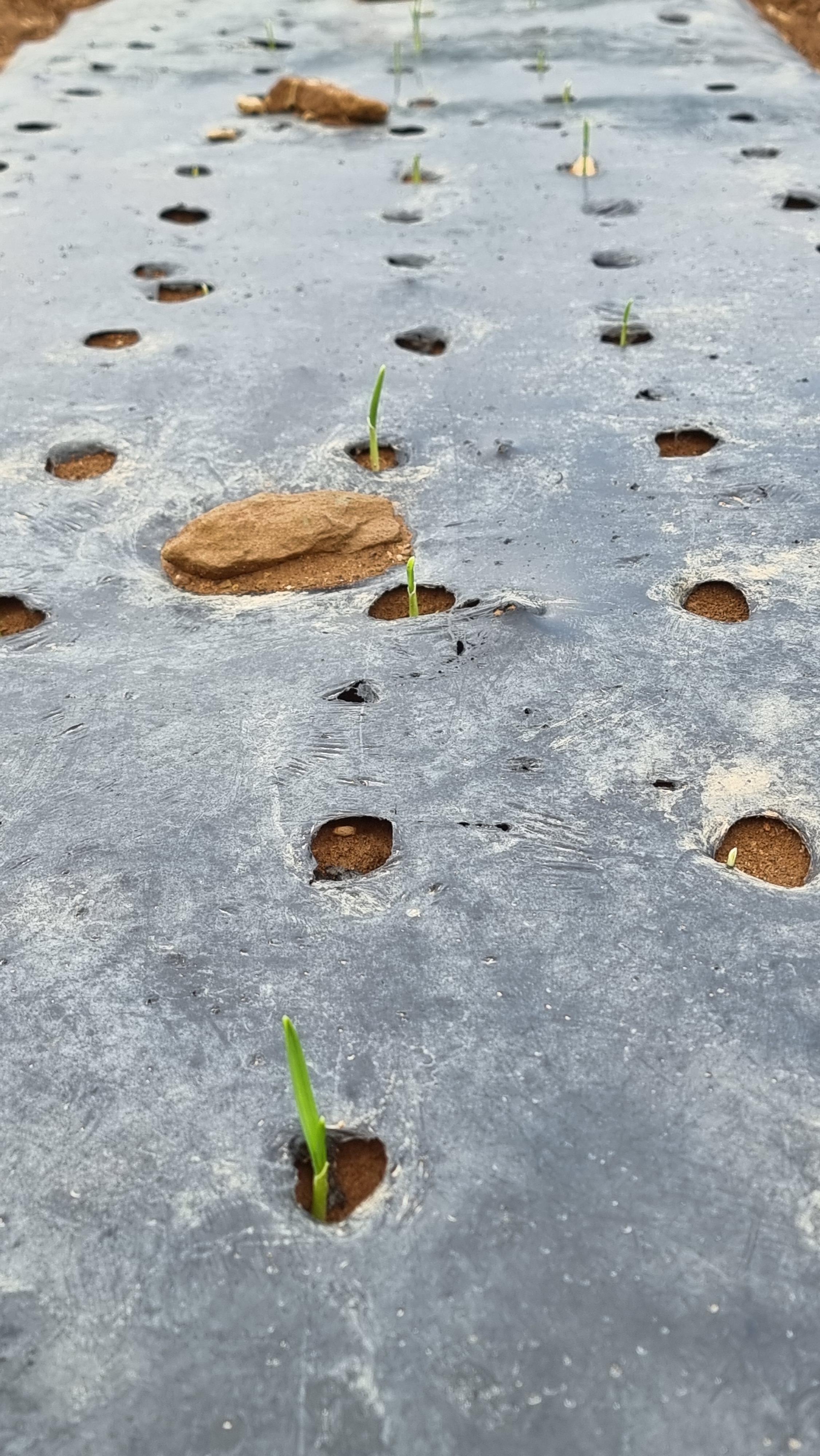 비닐 위에 바둑판처럼 선을 그어 놓고 선이 교차하는 지점에 구멍을 뜷었는데 총 115개다(세로 5줄, 가로 23줄) 씨마늘이