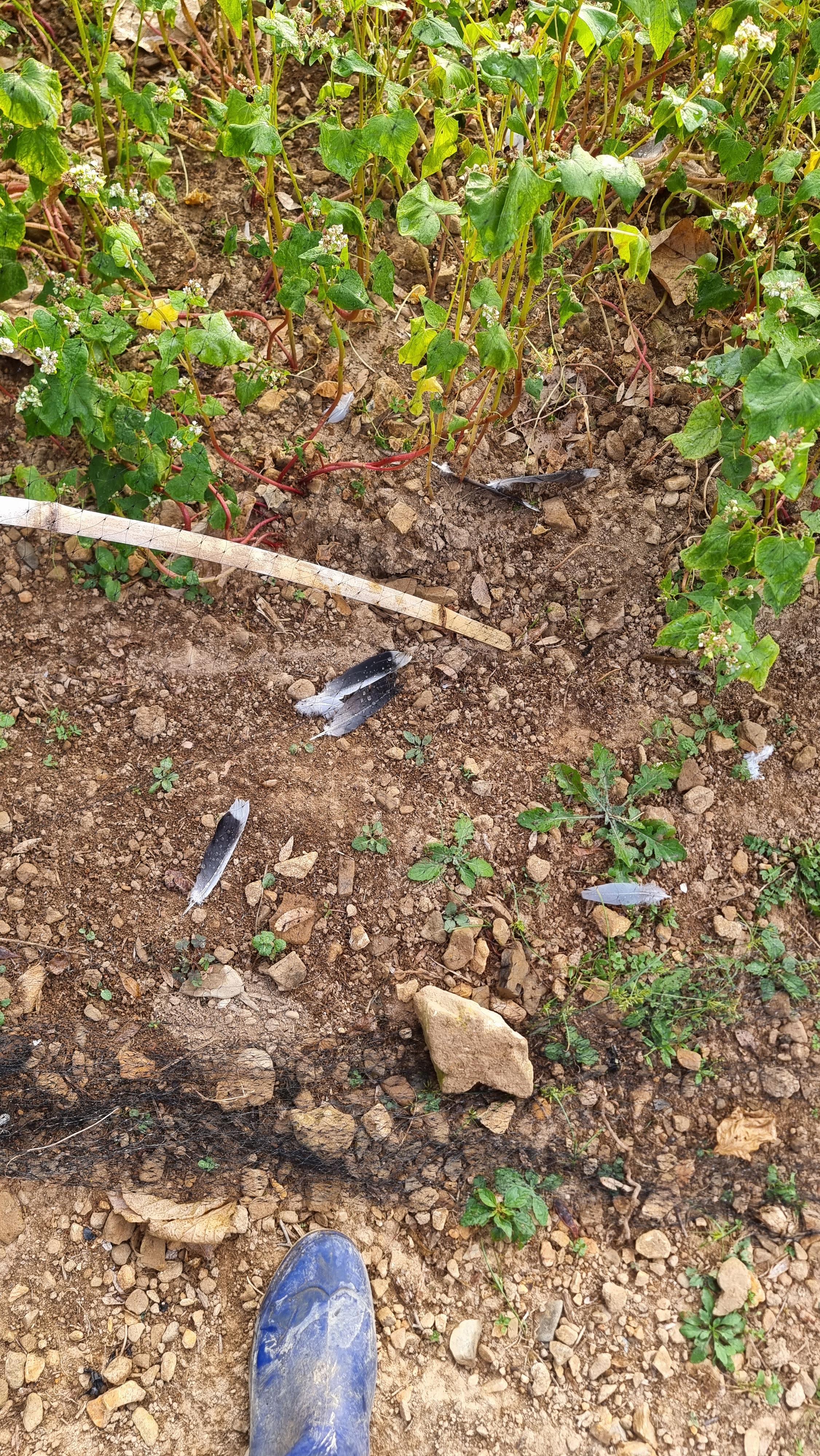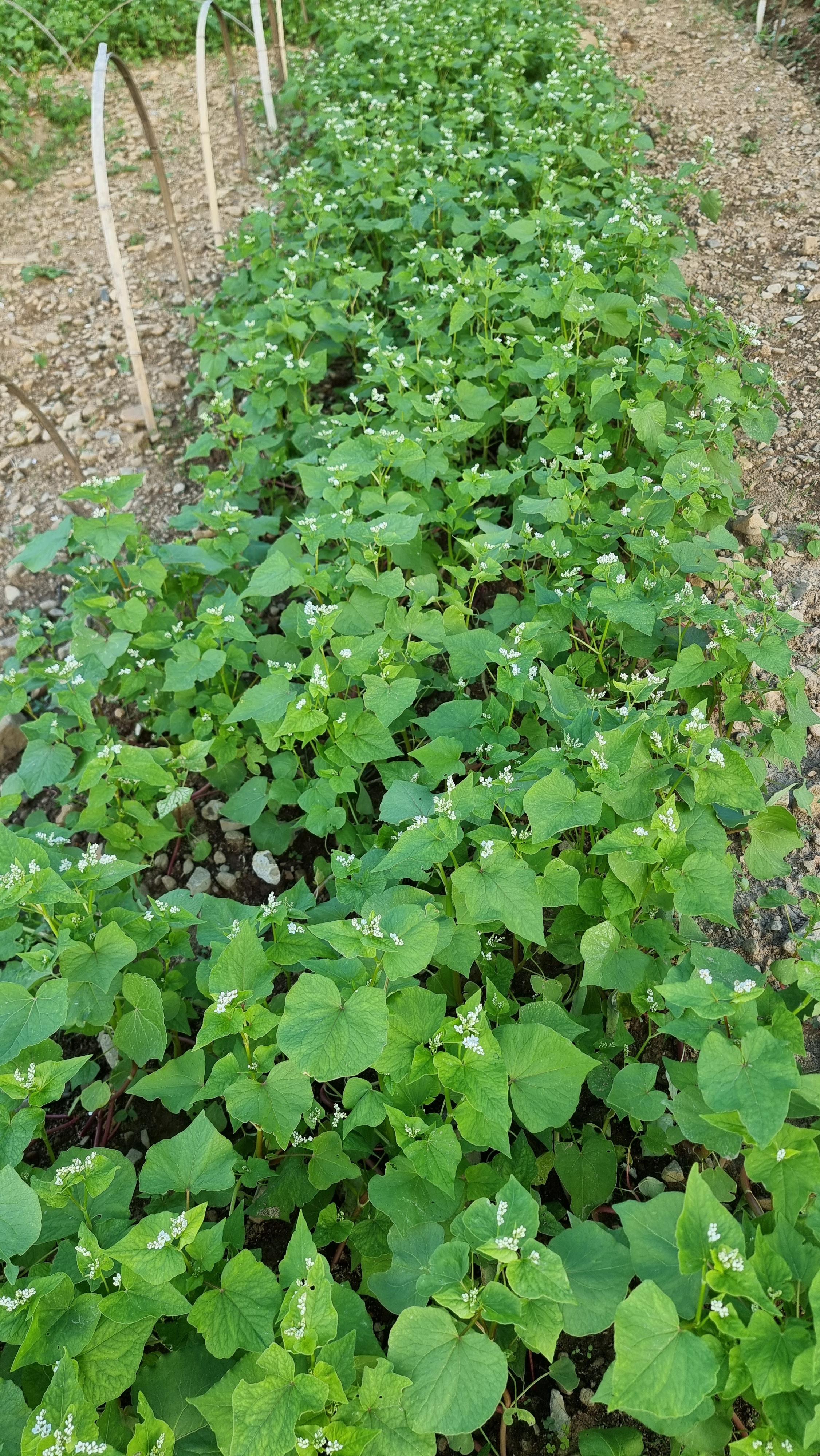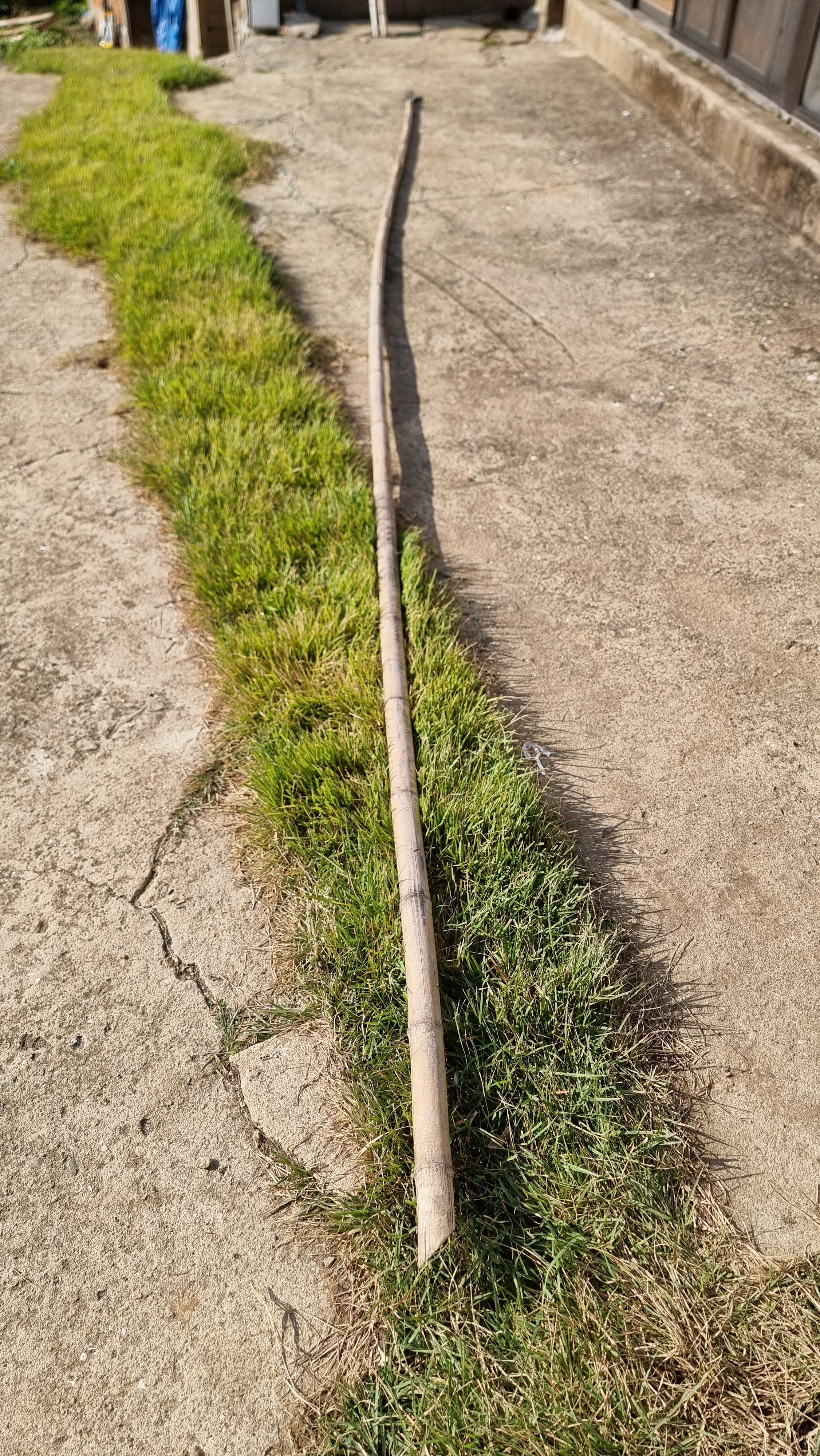 - 오늘 아침도 밤과 땅콩을 넣어서 지어 먹었다. 아침을 먹고 바로 집 뒤 메밀 밭에 새 방지망 설치 준비를 시작했는데, 메밀이 이제 열매를 맺기 시작했기 때문이다. 씨앗을 파종했을 때는 낮게 새 방지 그물을 설치하면 되기 때문에 별로 어려운 점은 없었지만, 이미 훌쩍 자란 메밀 위에 새 방지 그물을 치기 위해서는 지지대를 높이 설치해야 하기 때문에 쉬운 일이 아니다. 먼저 긴 말뚝을 땅에 박고, 이 집을 구입했을 때 앞집에서 확보해 놓은 대나무를 사용해 거치대를 만들었다. 그때 가져온 대나무들이 우리 집에 많은 역할을 한다.