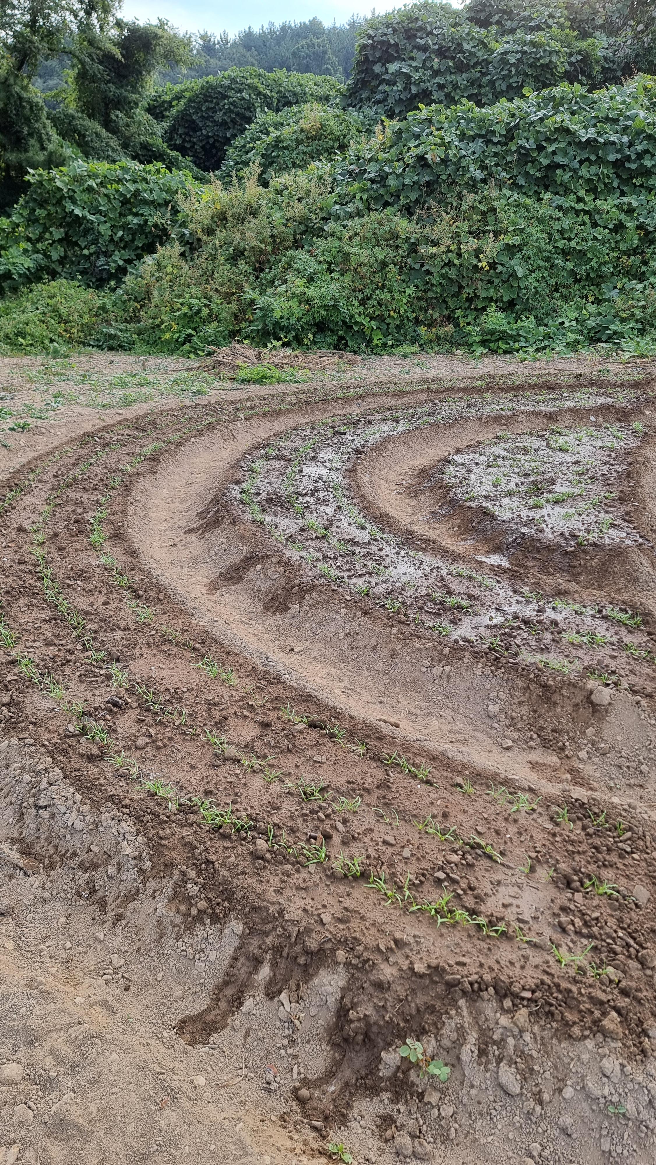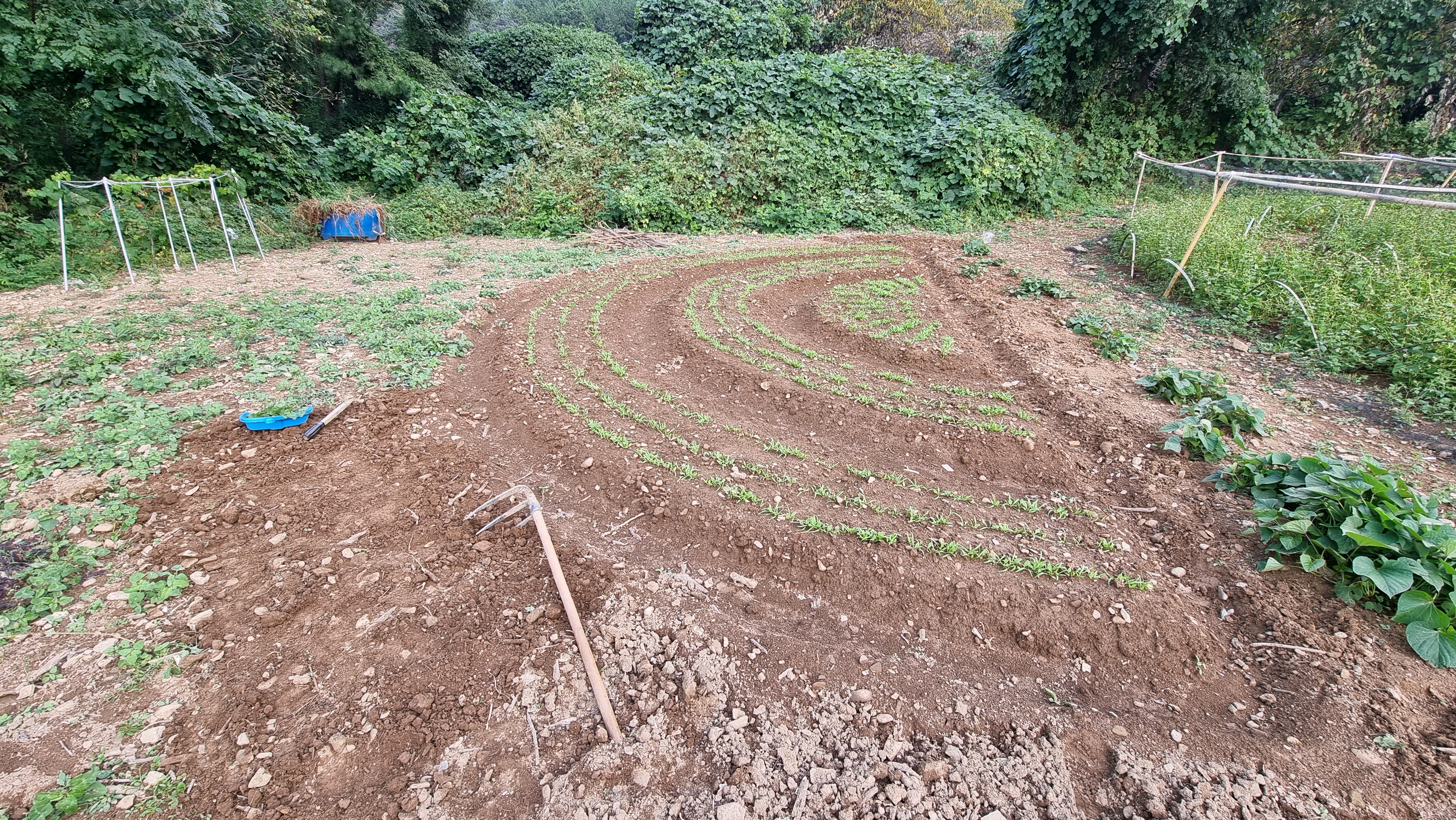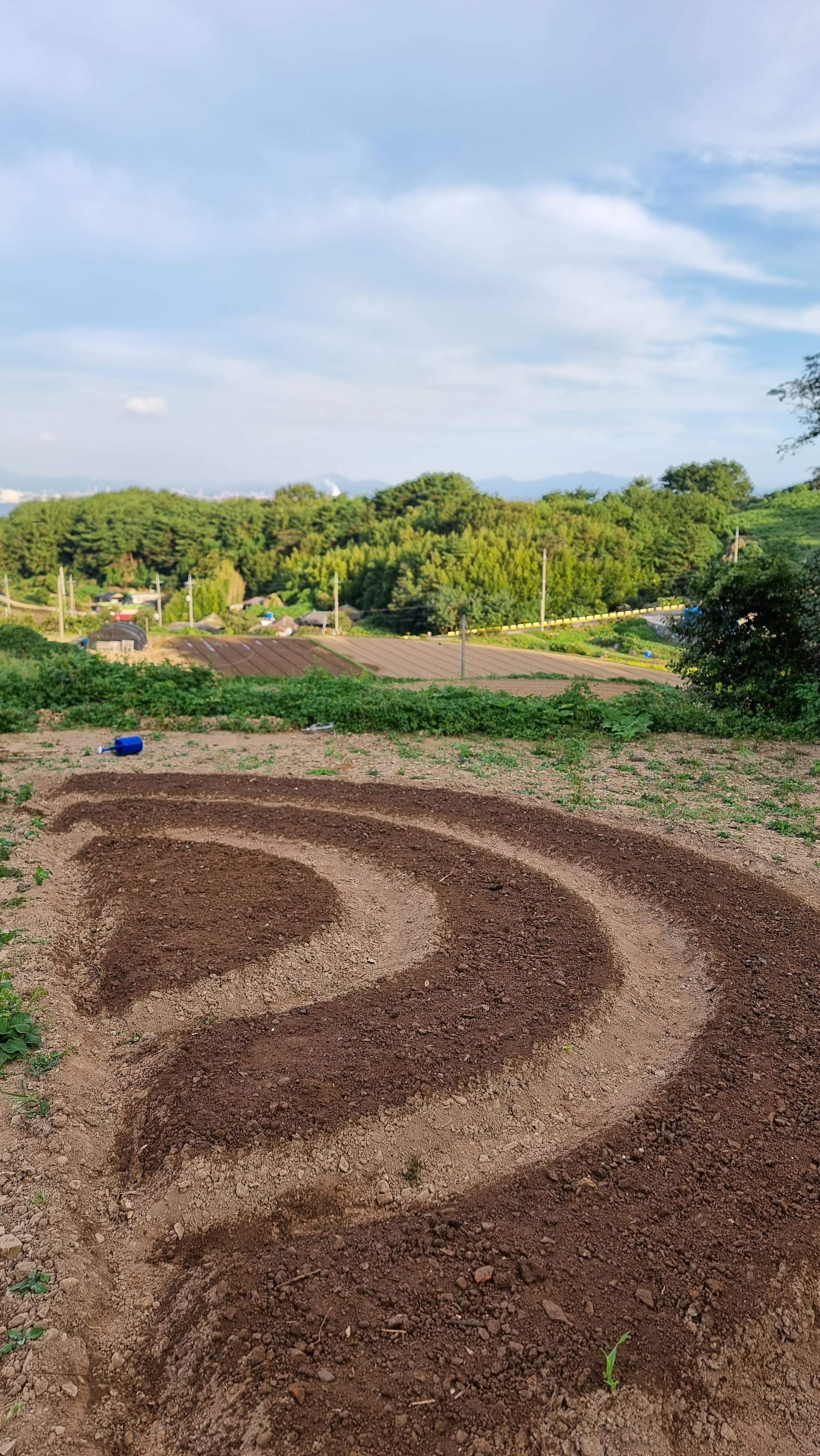 - 여느 때와 다름없는 아침의 시작이다. 식전 일로 뒷밭에 만든 시금치 밭 두둑에 고랑을 만들었다. 그기에 씨앗을 뿌리고 살짝 덮으면 시금치 파종은 끝난다. 씨앗은 소물게 뿌리란다. 싹이 먹을 정도가 되면 솎아서 반찬으로 이용하면 되기 때문인 듯하다. 반달 모양의 밭에 반달 맨 안쪽에는 부채살 모양으로 고랑을 만들었고, 나머지는 반달의 둥근 모양으로 고랑을 팠는데, 한 두둑에 세 개의 고랑을 만들었다. 그리고 집 앞 밭에 땅콩을 수확한 자리에 열무를 좀 심었다. 이는 새싹 나물로 먹을 생각이다.
