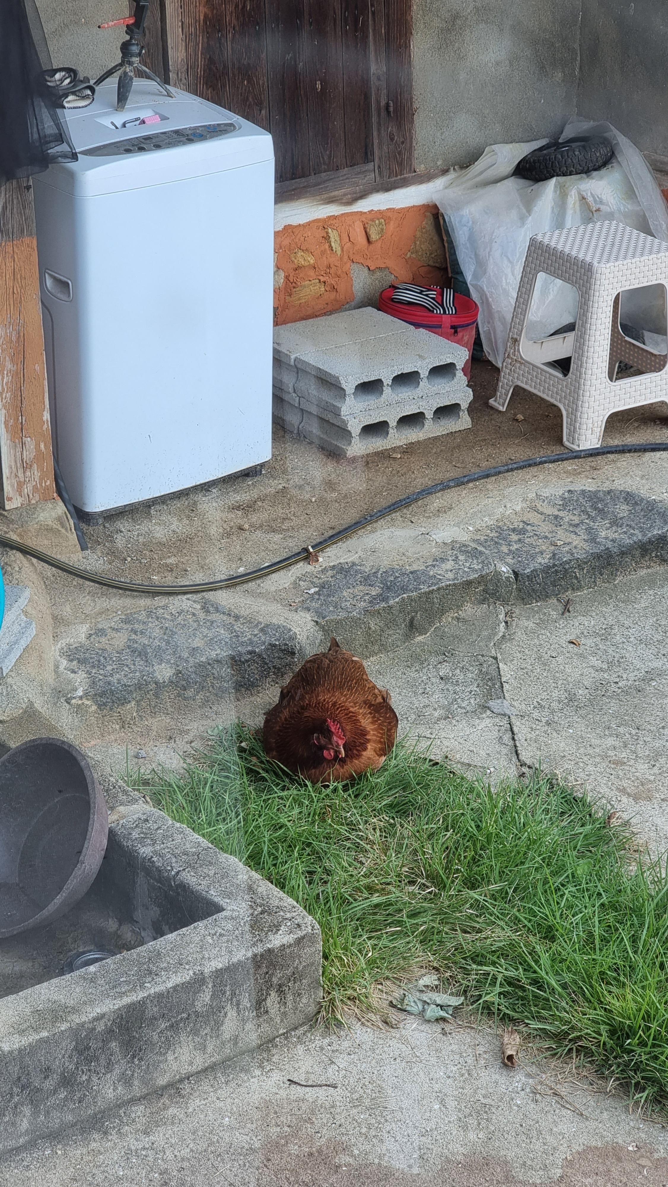 - 점심을 먹고도 풀을 뽑았다. 핀셋으로 뽑아야 할 만큼 작은 풀들이라 닭들도 무척이나 좋아한다. 그래서 뽑은 풀은 닭들에게 간식이 된다. 닭도 요즘 대담해져서 내가 골프 스윙 연습을 하고 있으면 근처에 와서 지켜보며 놀다 운동을 끝내면 그 안에 들어와서 놀곤 한다.