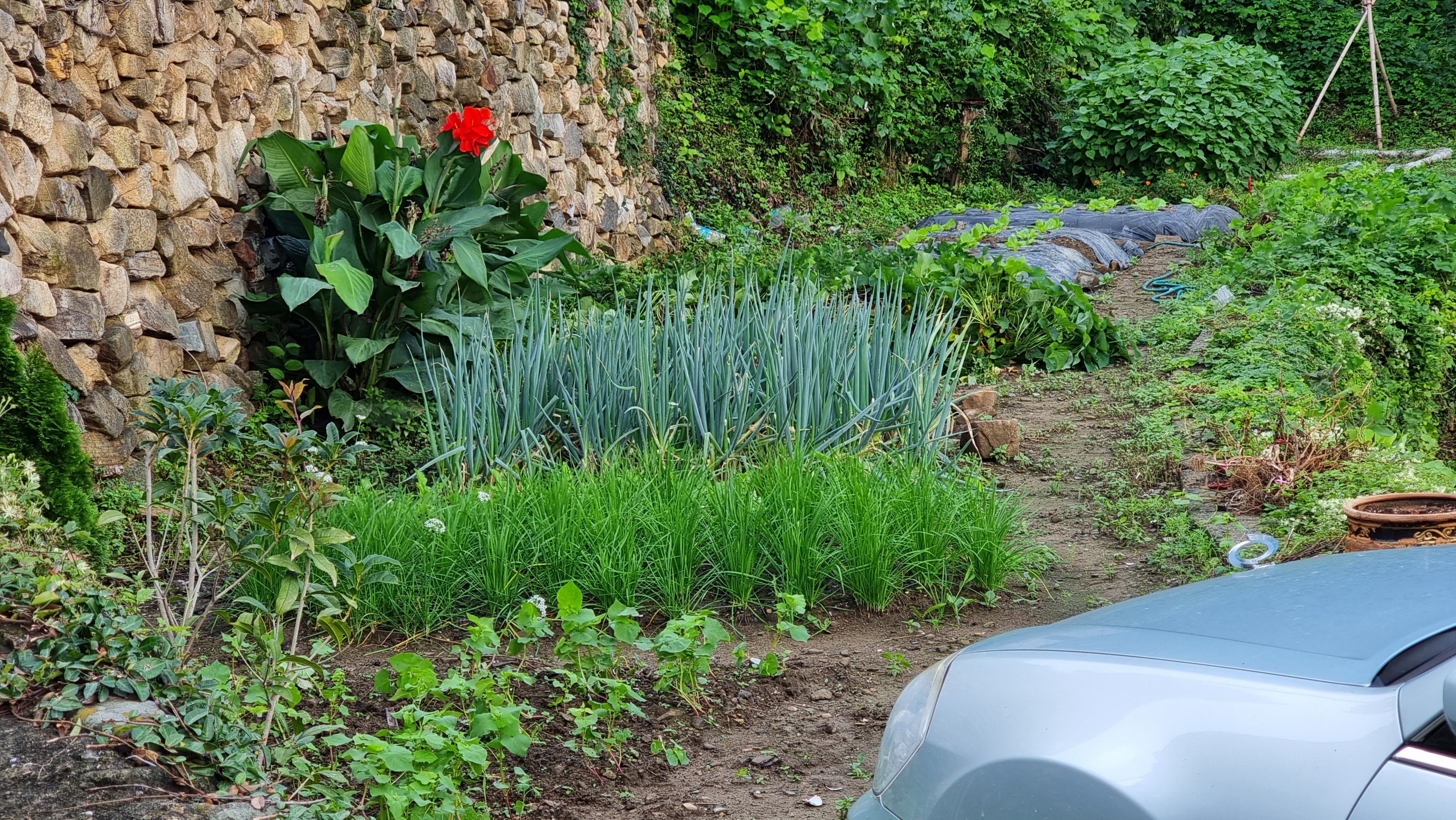 - 점심을 먹고는 집 앞 도로변이기도 하고, 집 앞 밭의 돌담인 도로에 풀을 제거하고 정리하는 일을 한참 동안 했다. 담벽이 제법 높아 낫을 사용하기도 그렇고, 그렇다고 사다리를 놓고 작업을 하는 것도 어렵다. 어떤 때는 긴 전지가위를 가지고 작업을 해야 했다. 또 집 앞 채소밭에 무우와 배추에 물을 듬뿍 주었다. 집 옆으로 흐르는 작은 계곡에 수도물 정도의 물은 언제든지 확보할 수 있어서 우리 집 채소들은 물을 많이 먹고 자란다.