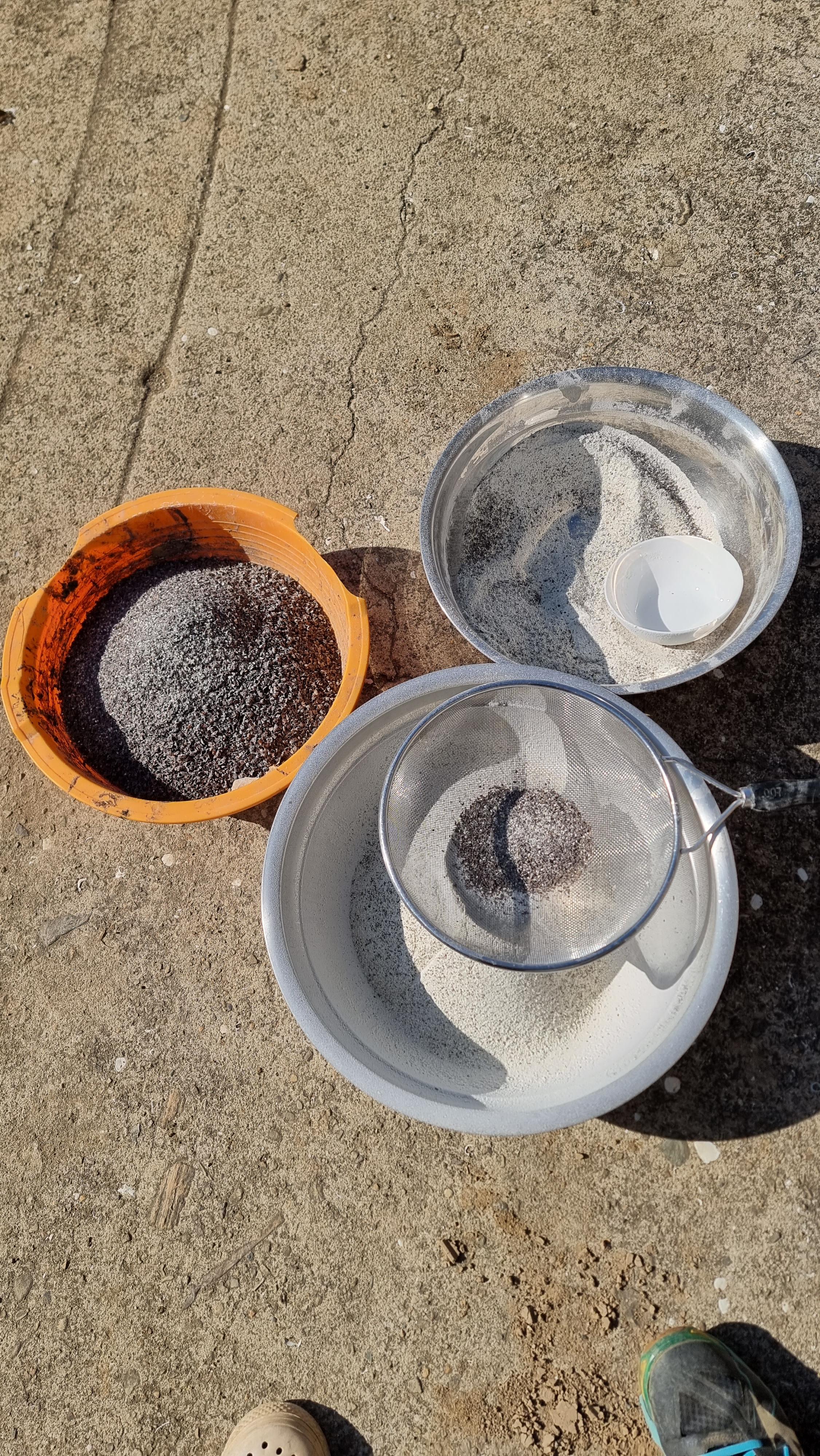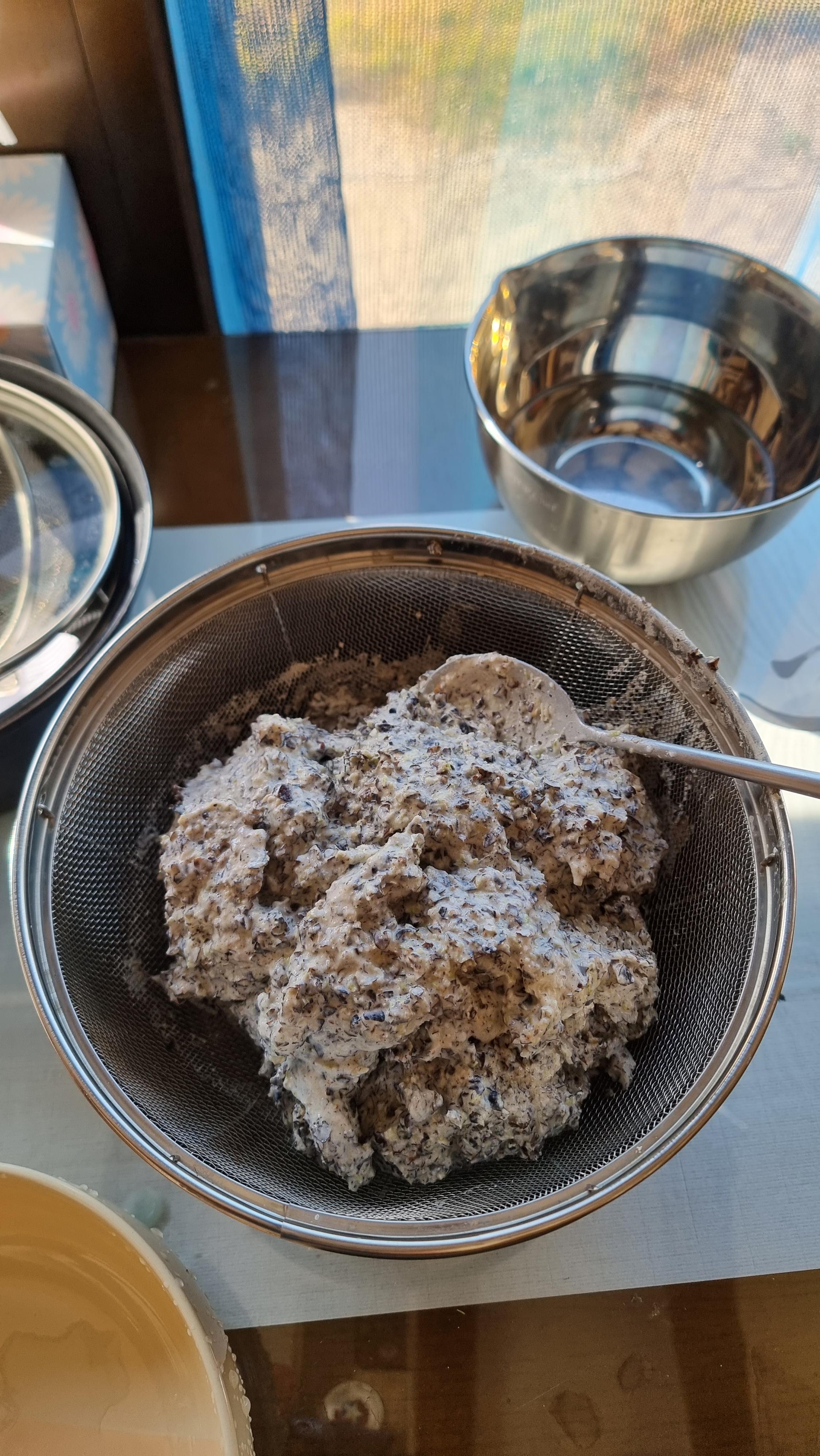 5. 빻은 메밀을 준비한 물과 채반 등을 이용하여 껍질을 걸러낸다.