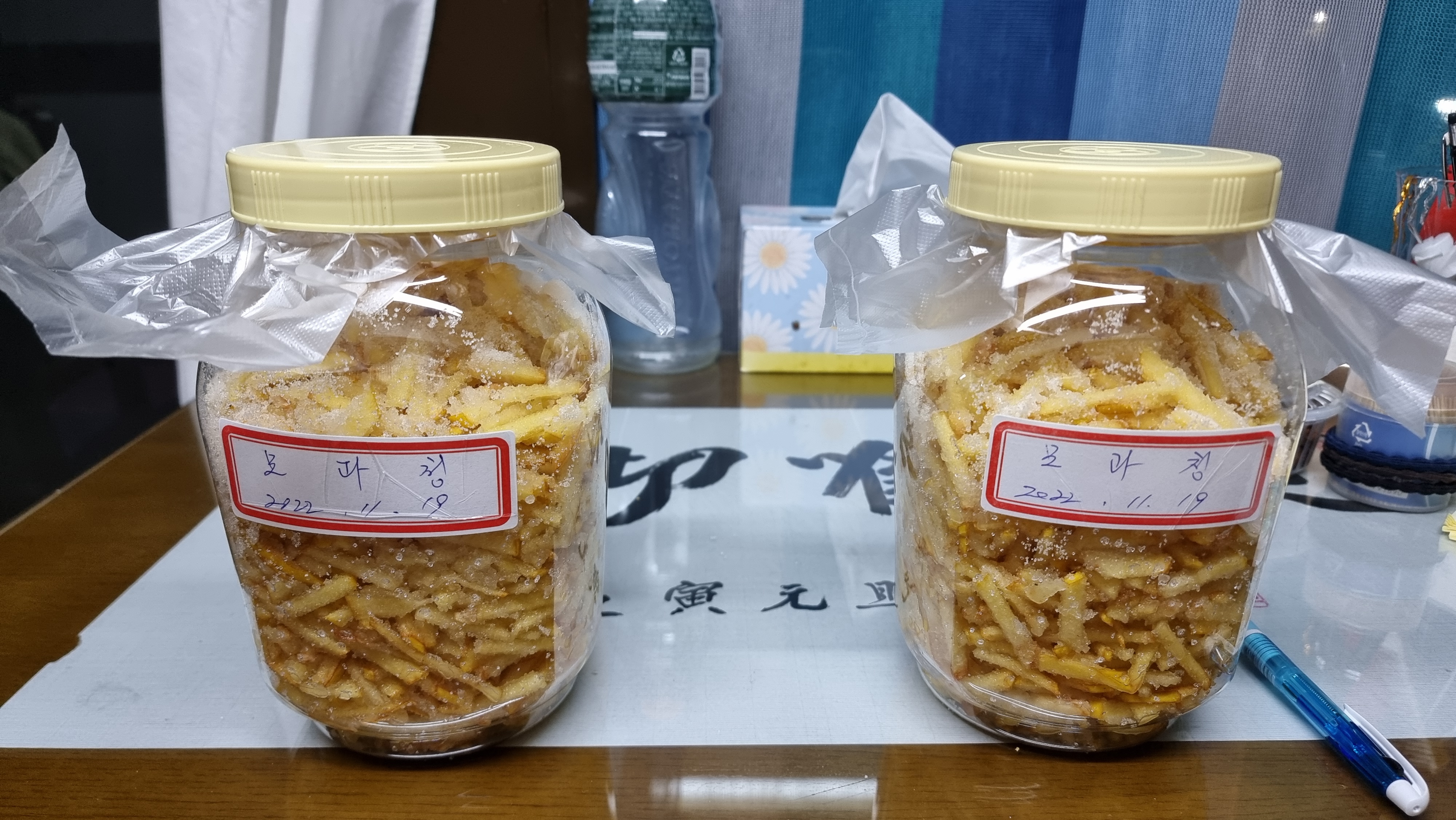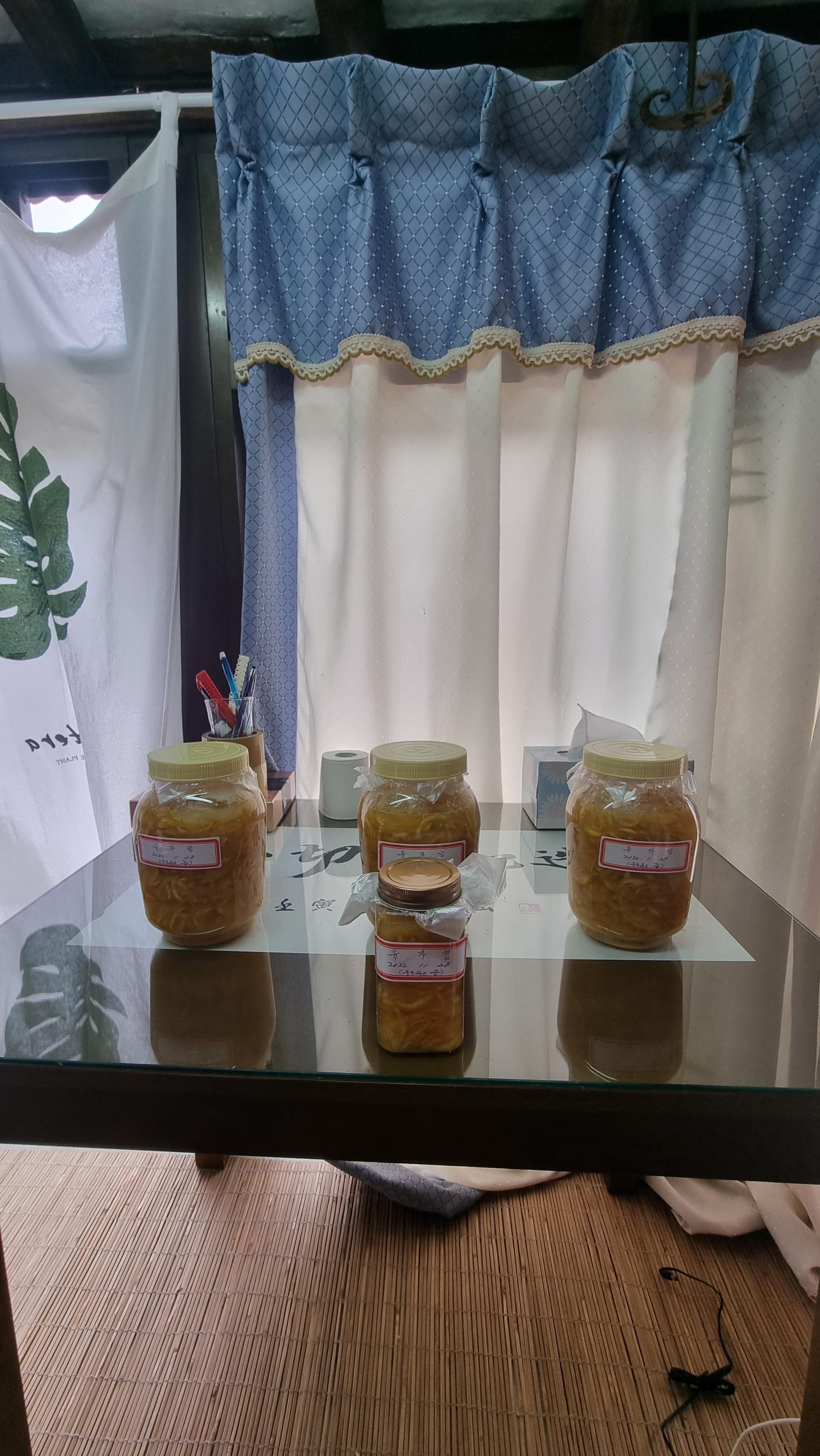 9. 완성된 유자청을 병에 담는다.