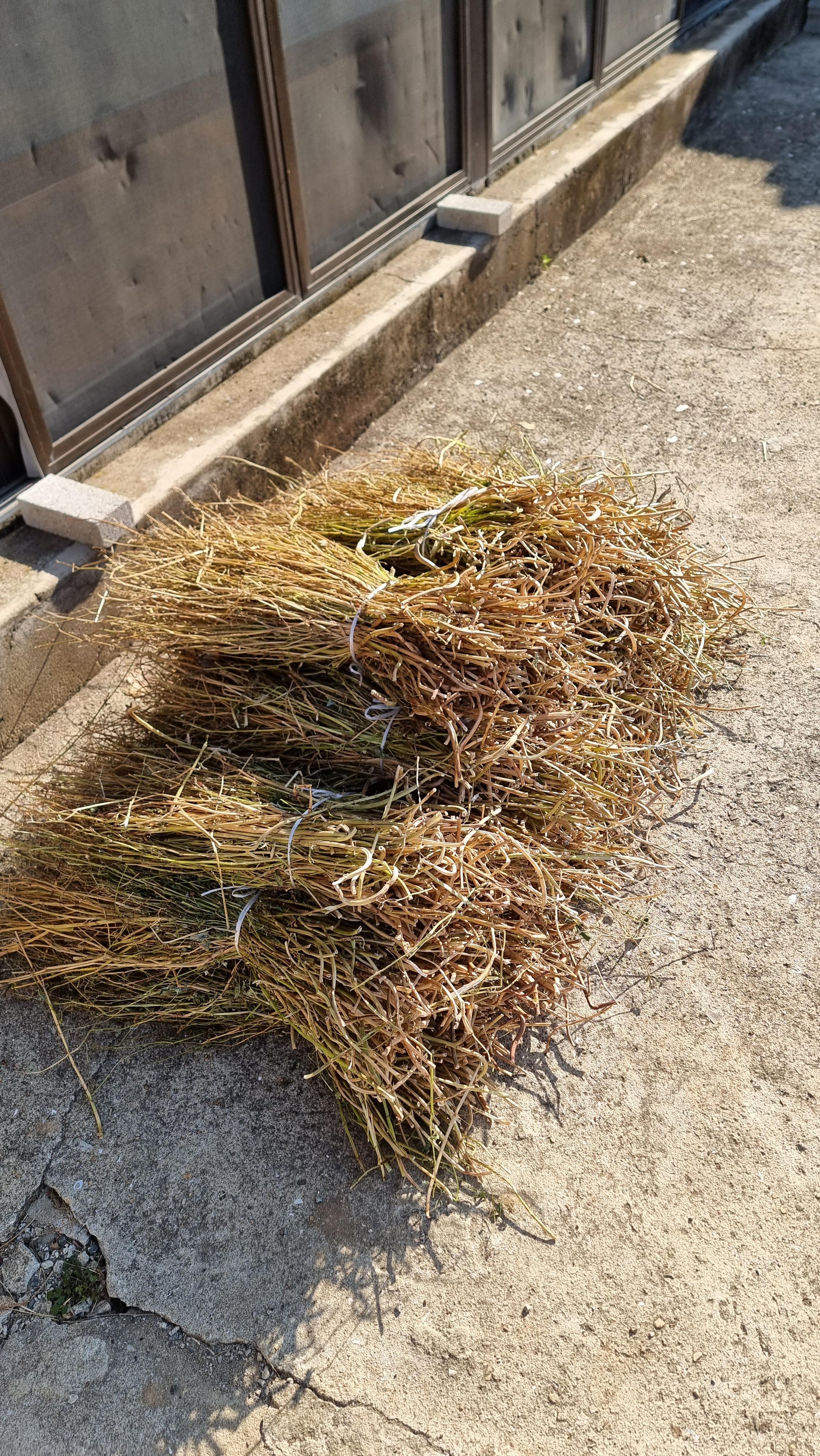 - 아침을 먹고는 메밀을 털고 마당에 널어 말리던 메밀대를 단으로 묶어 놓았다. 좀 더 마르면 군불을 지필 때 불쏘시개로 사용된다. 그것 말고도 불쏘시개로 사용될 것들이 아직 많다. 올겨울에 많이 없애지겠지만... 이웃집 할머니가 집 앞을 지나가시면서 "메밀 많이 했는교?" 하셔서 바가지에 조금 떠서 보여 드렸더니 "와! 메밀이 참 야물고 좋다" 하시면서 "메밀은 야물어야 한다" 며 칭찬을 해 주신다. 어제 뒷 밭에 다 마무리하지 못한 새 방지 그물 지지대를 다 철거해서 집으로 옯겨 놓았다. 앞집에서 가져다 놓은 대나무를 참으로 요긴하게 사용하고 있다.