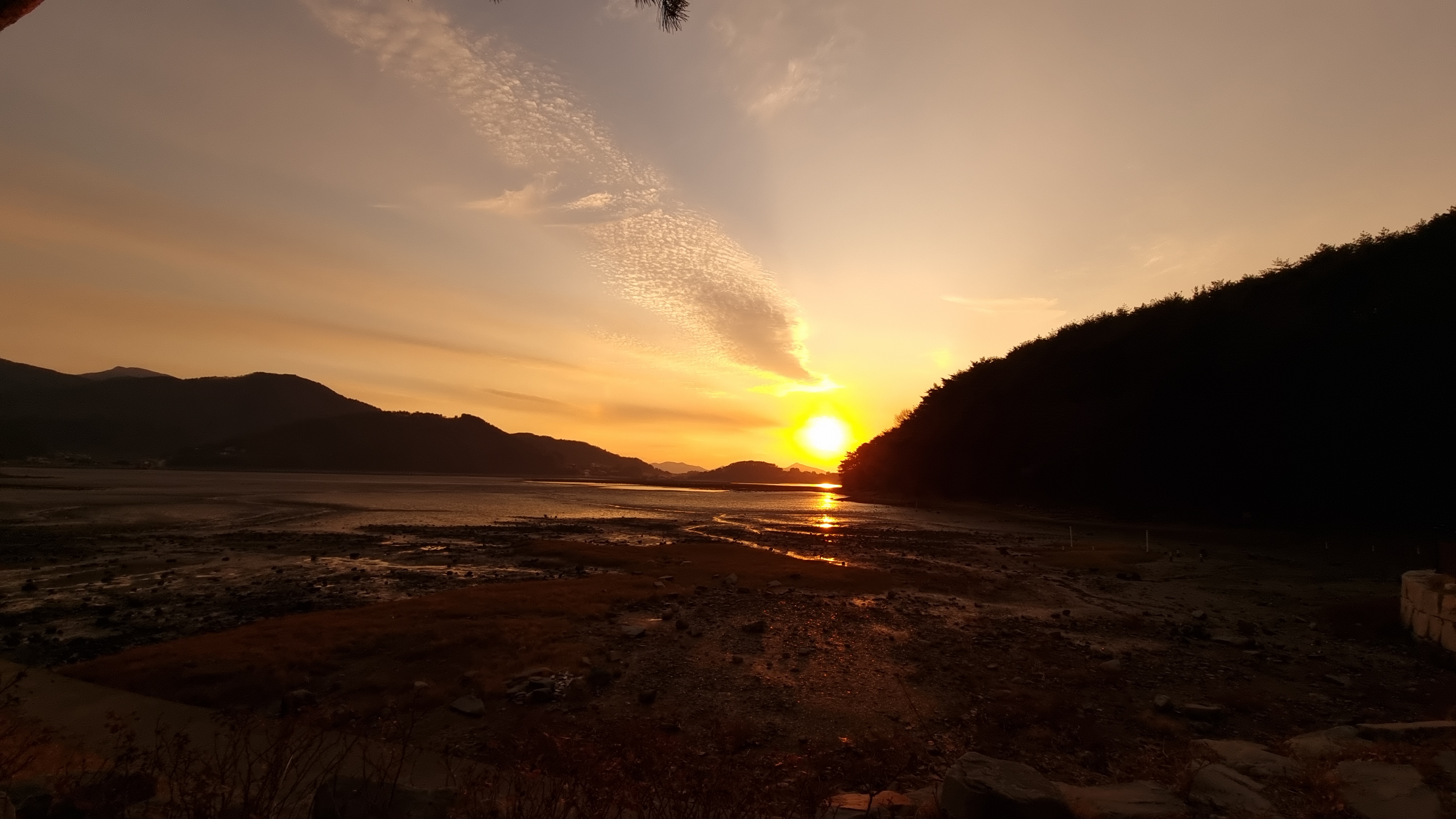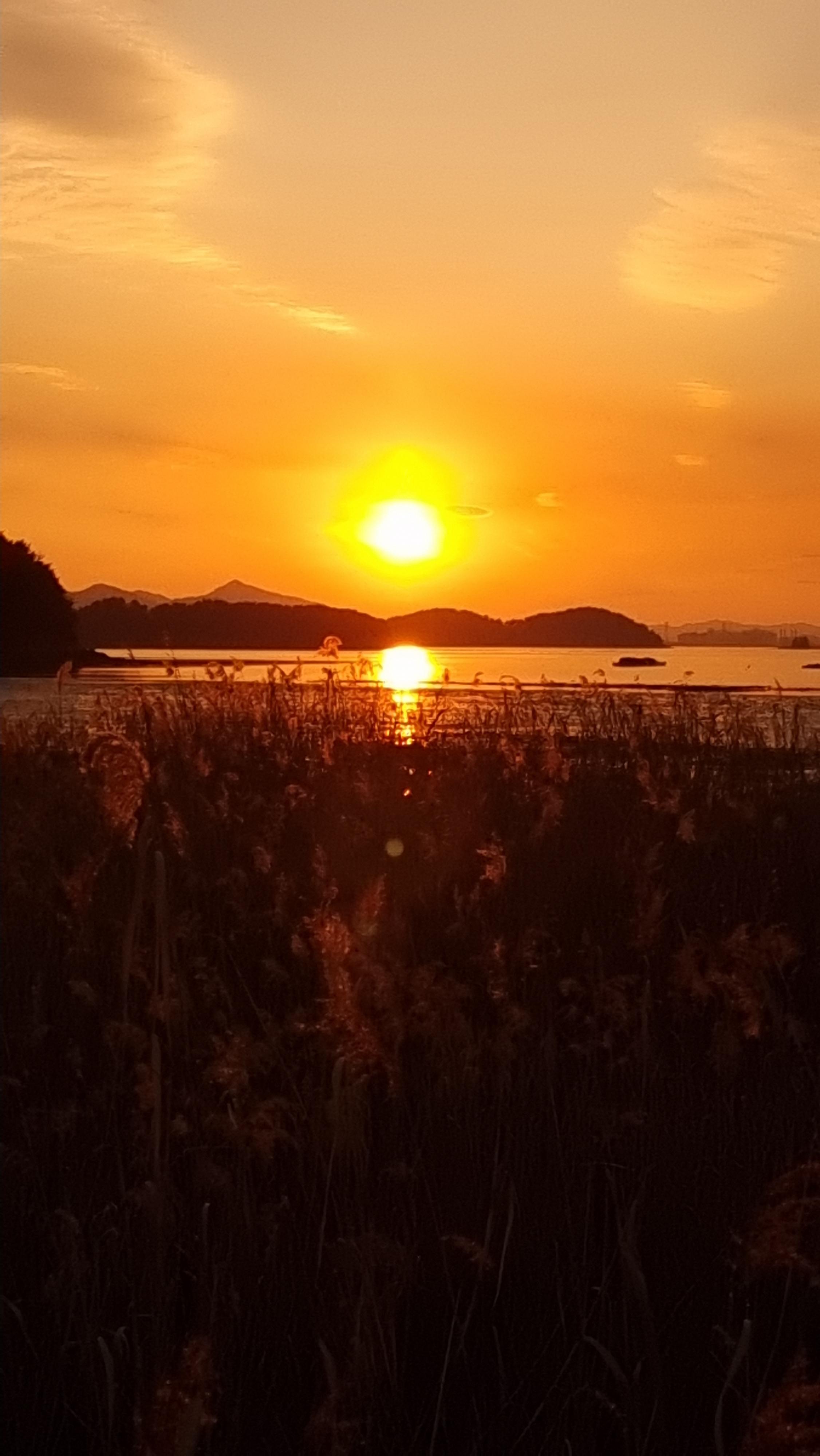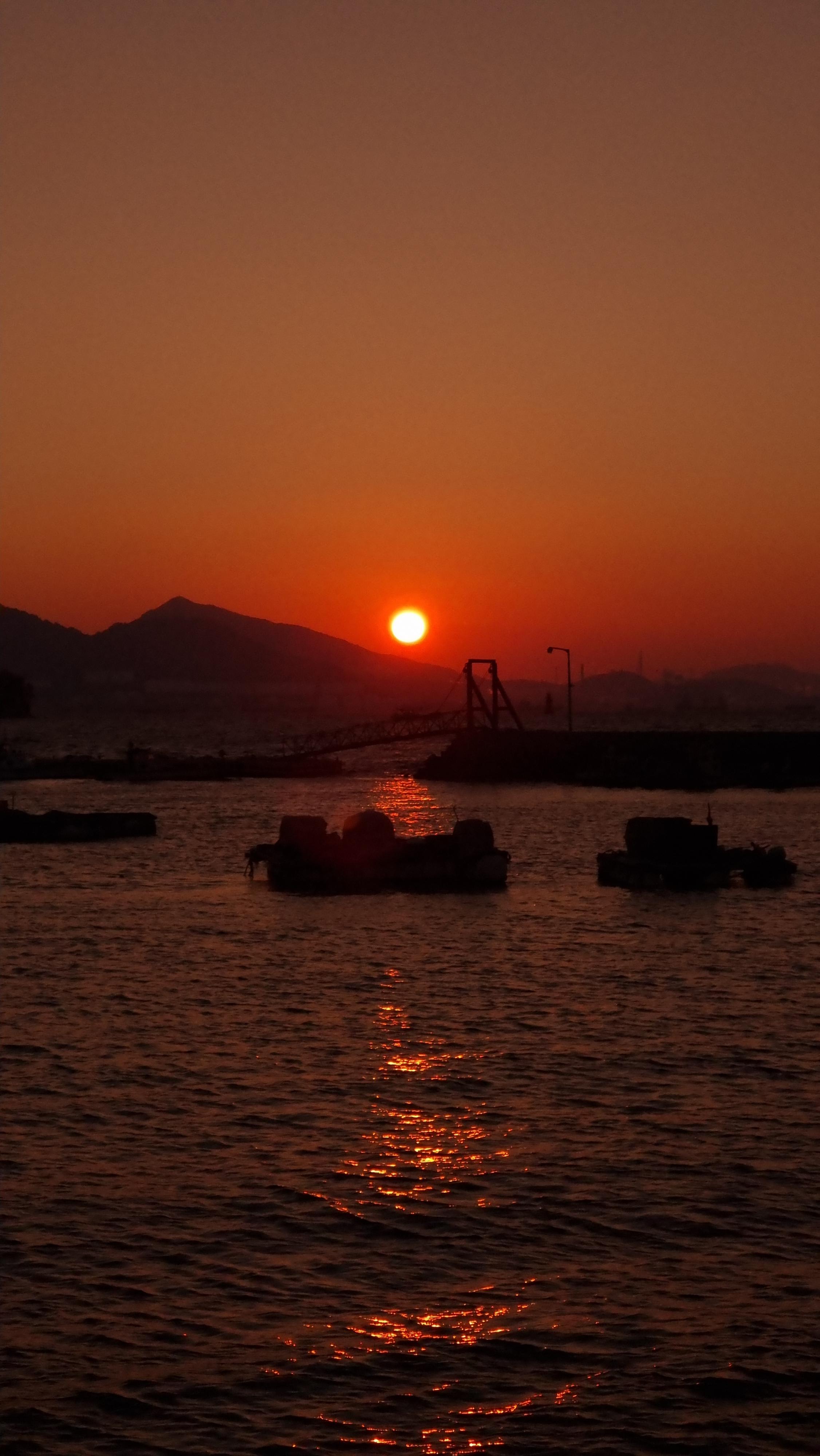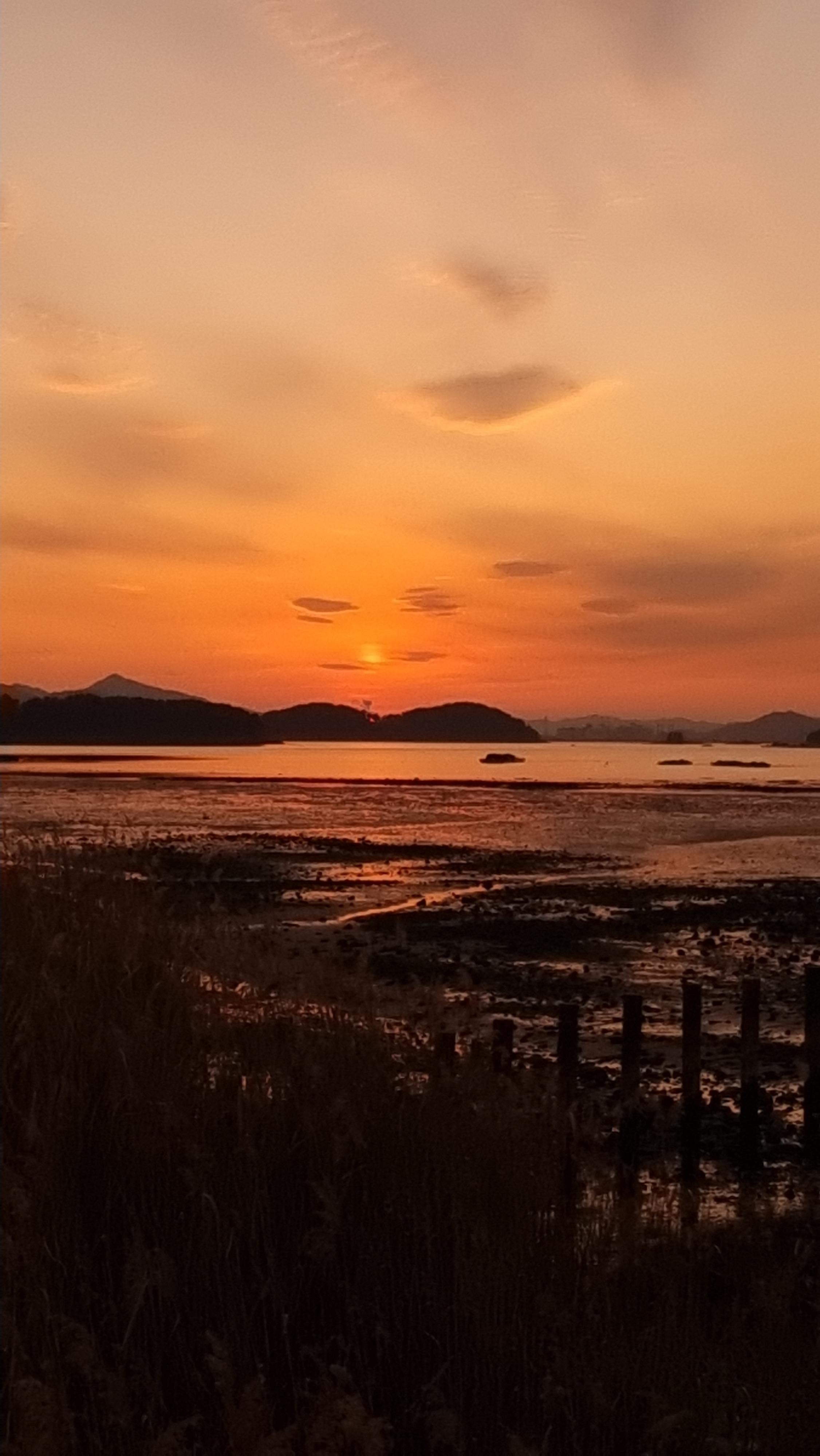 - 해넘이는 집에서 약 5분 정도 떨어져 있는 '화전마을' 해변에서 봤다. 그곳을 알고 간 것은 아닌데, 해가 지는 방향을 따라가다 보니 그곳으로 가게 되었다. 제법 큰 마을인 듯한데도 동네가 조용하다. 가끔 승용차나 오토바이 등이 지나갈 뿐이다. 방파제 쪽으로 가니 30대 정도 되어 보이는 남자 한 분이 낚시를 하고 계셨다. 바람이 많아서 그런지 한 마리도 잡지 못했단다.