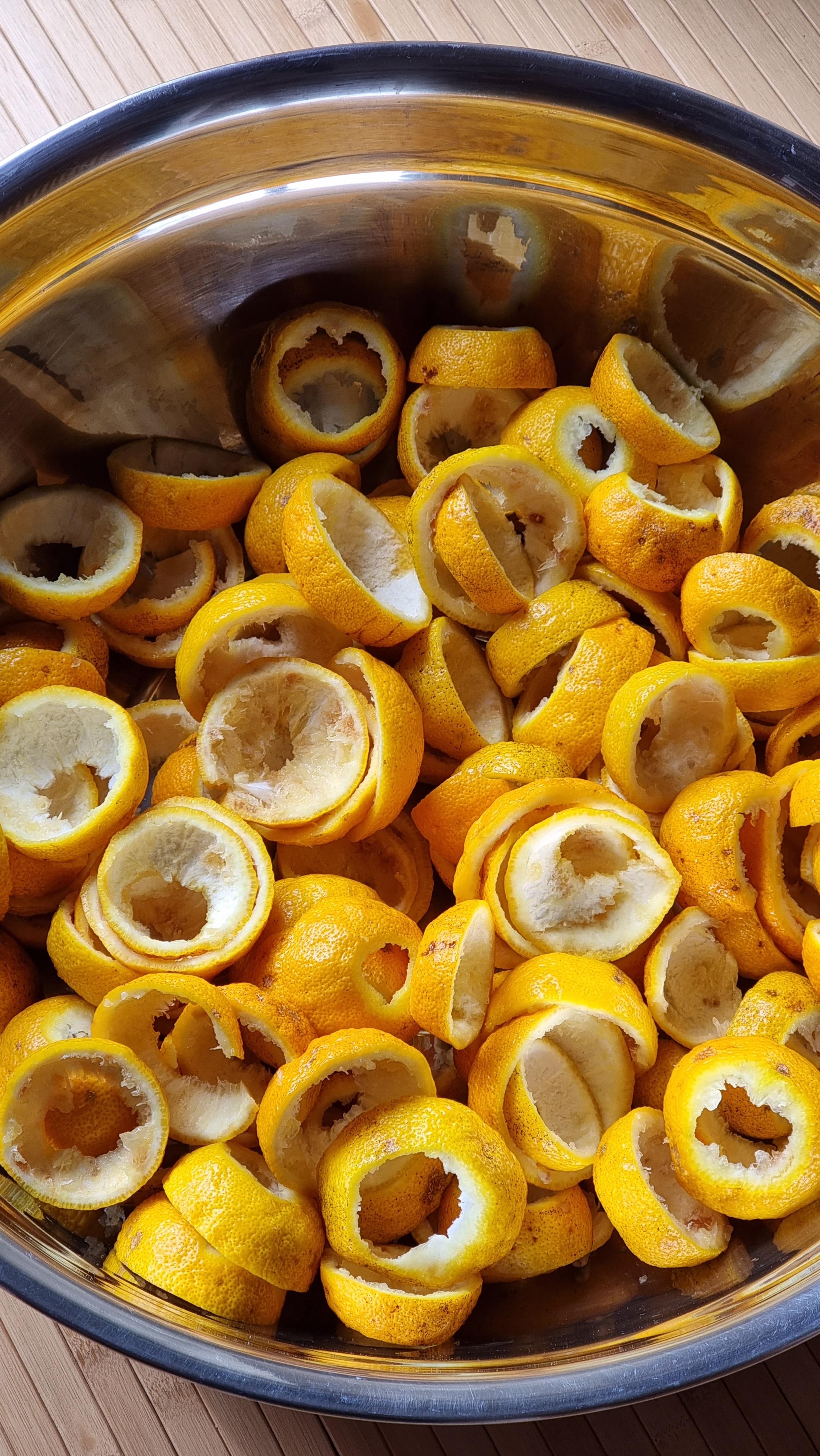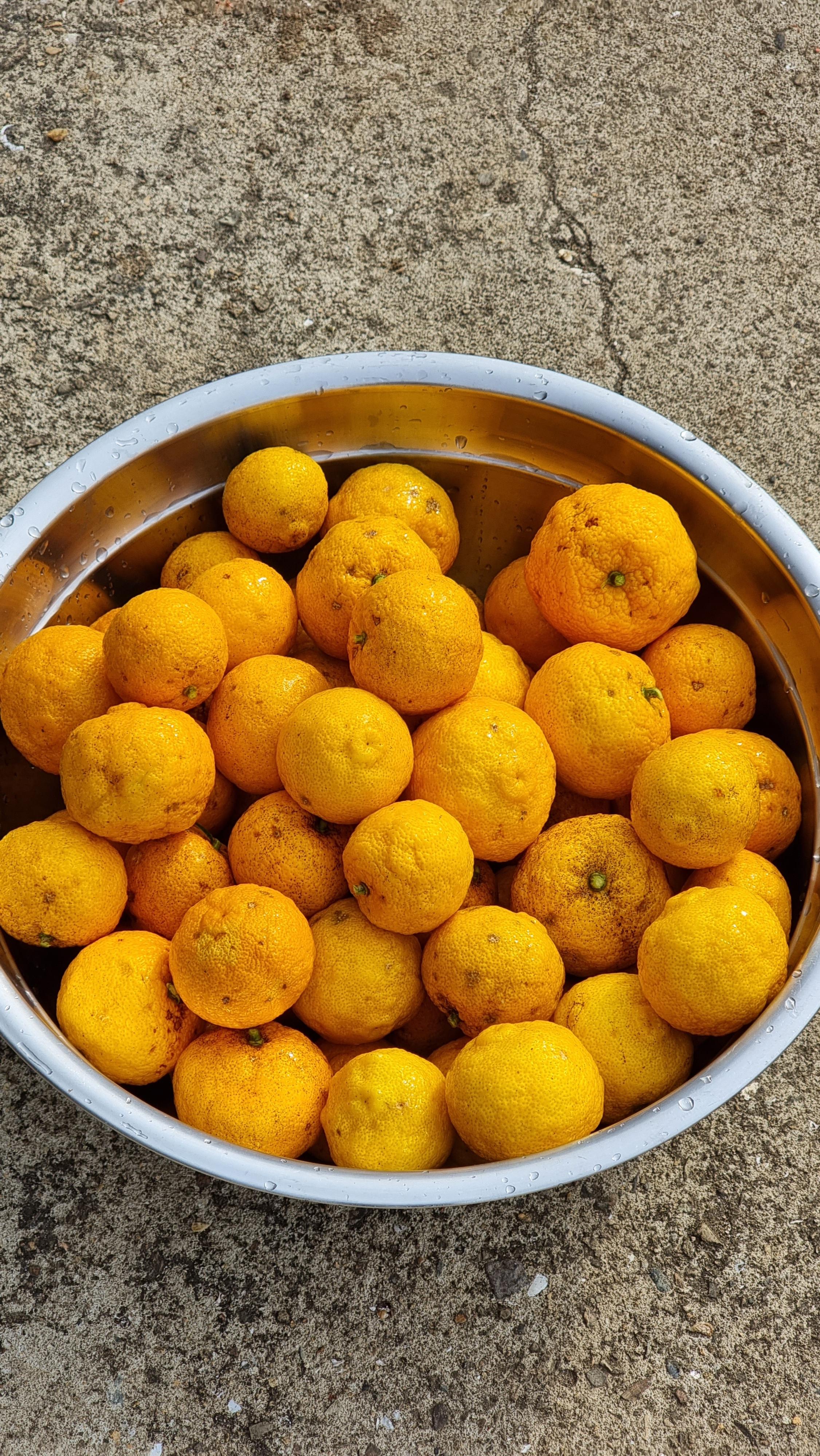3. 유자를 식초물에 약 5분 간 담근 후 흐르는 물에 깨끗이 씻는다.