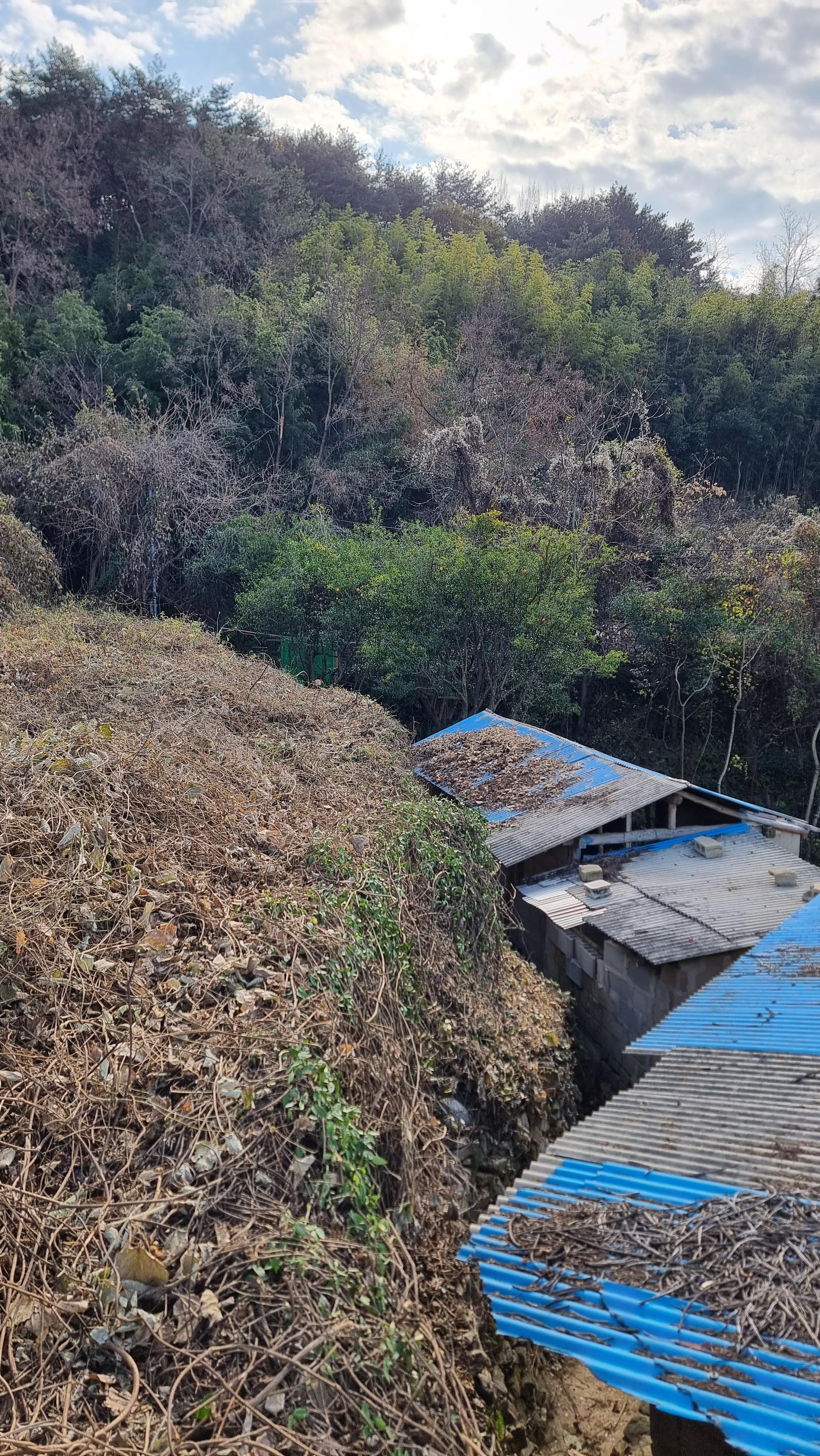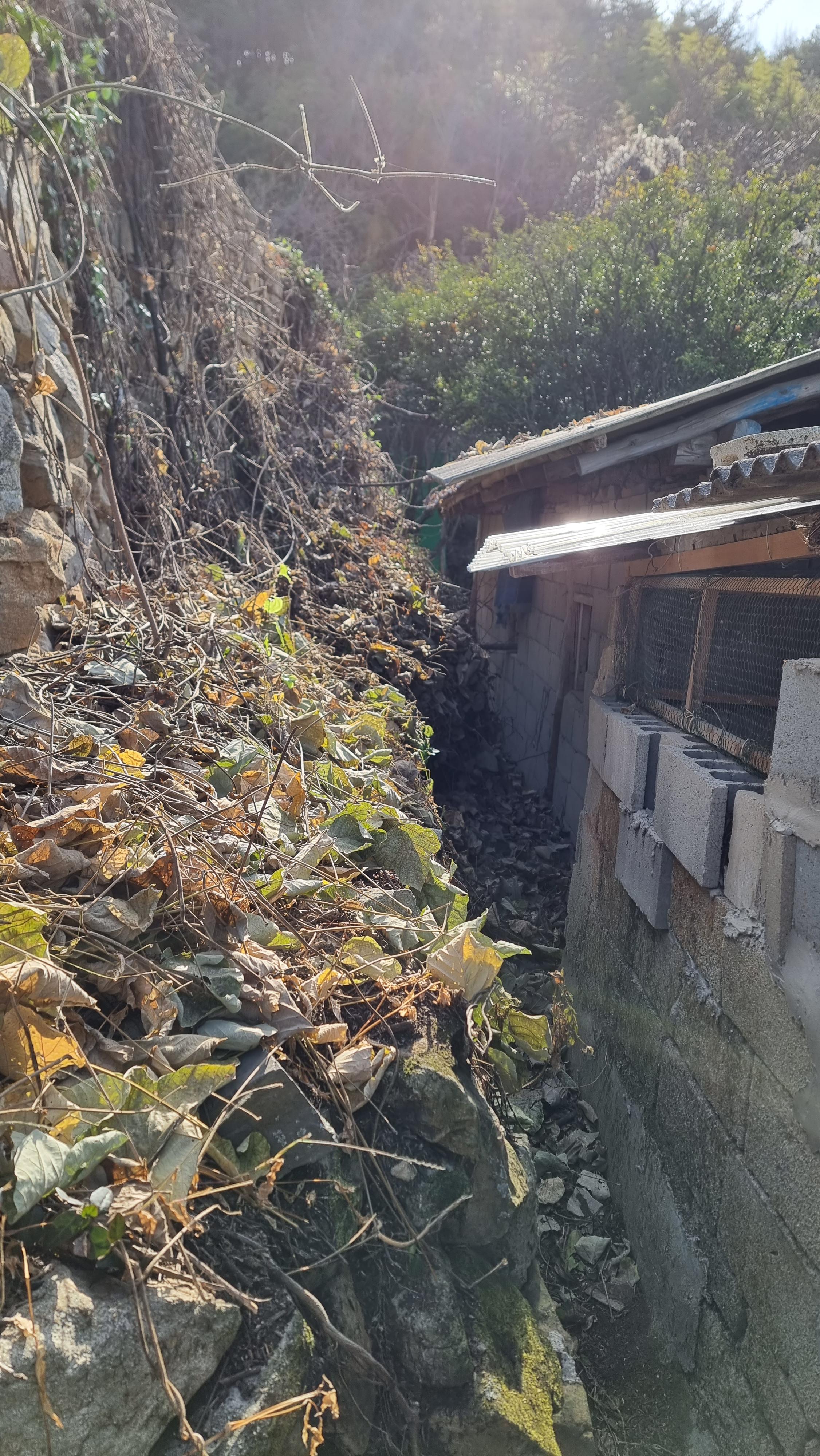 - 어제가 주말이고 오늘, 내일이 휴일이라 그래서 마을이 조금 활기차다. 더구나 요즘은 김장철이라 고향집을 찾은 가족들이 제법 오시나 보다. 아이들 소리도 들린다. 난 어제 아랫채 뒤쪽 칡넝쿨 1차 작업을 마치고, 오늘은 그 칡넝쿨들이 뒤덮고 있던 창고 지붕들을 청소했다. 그곳의 지붕에는 오랜 기간 동안 방치되어 있어 부분적으로는 칡나무 잎바리 등이 섞어서 거름 상태를 지나 흙처럼 덮여 있는 곳도 있다. 내년 봄부터는 칡넝쿨이 번지지 않도록 자주자주 잘라주는 일을 많이 해야 할 듯하다.