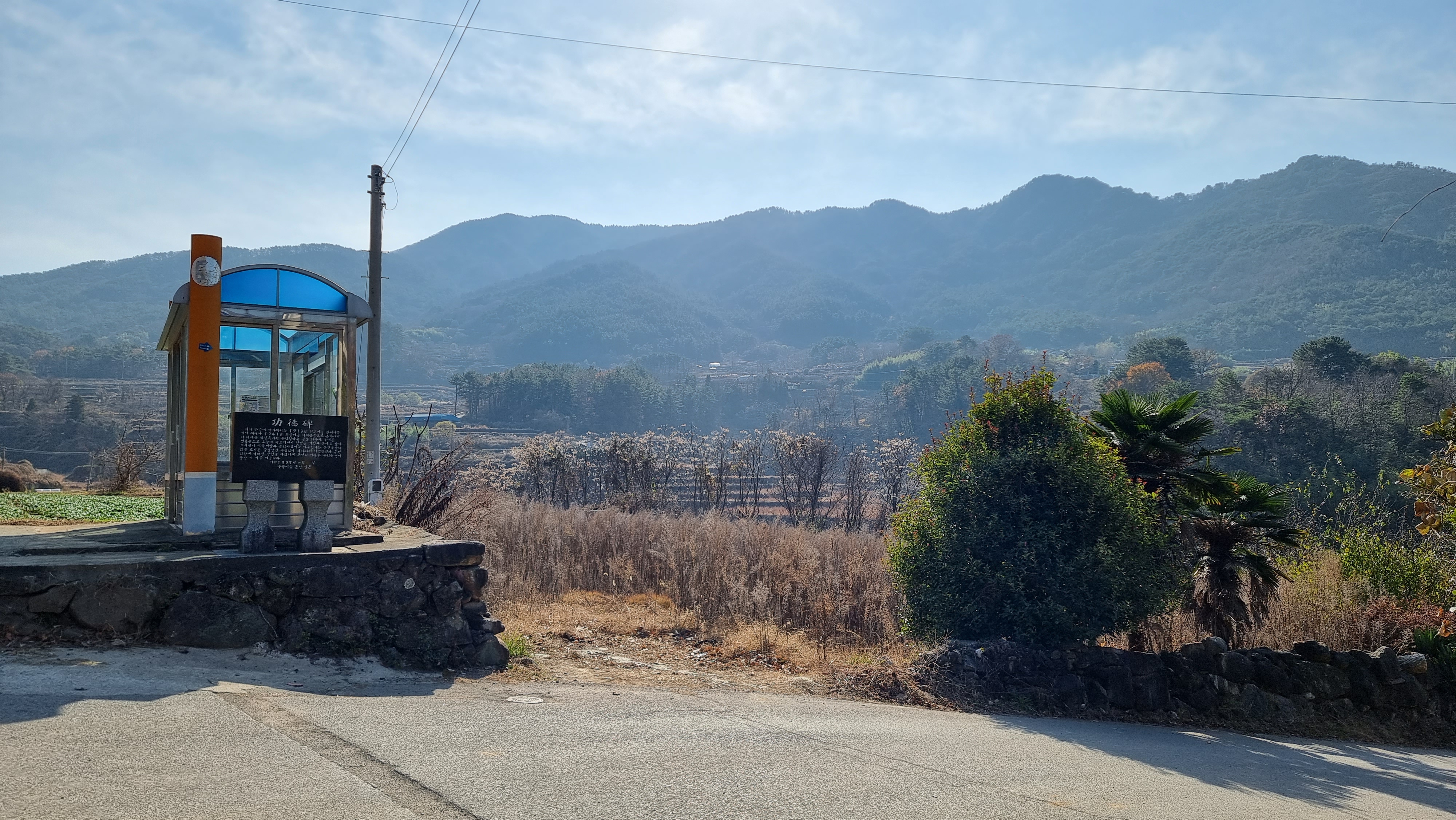 - 포근한 일요일 아침이다. 산책이나 좀 해볼까 하는 생각이 갑자기 들어서 작업복을 입은 그대로 물 한 통과 밀감 서너 개, 사탕 서너 개와 스틱 하나를 들고 집을 나섰다. 남파랑길 46코스는 '이순신호국길'로 우리집에서 5백 미터쯤 떨어진 농협중현지점 하나로마트에서 시작되어, 일전에 갔던 이순신순국공원을 거쳐 노량선착장까지 약 16킬로미터나 되는 코스다. 그 코스가 우리집에서 불과 1백 미터 옆을 스치며 지나간다. 나는 오늘 집에서 11시 20분쯤 출발해 이정표(우물, 정포마을)까지 갔다왔는데, 집에 오니 13시 10분 정도가 되었으니 왕복 약 2시간 채 못한 산책이었다.