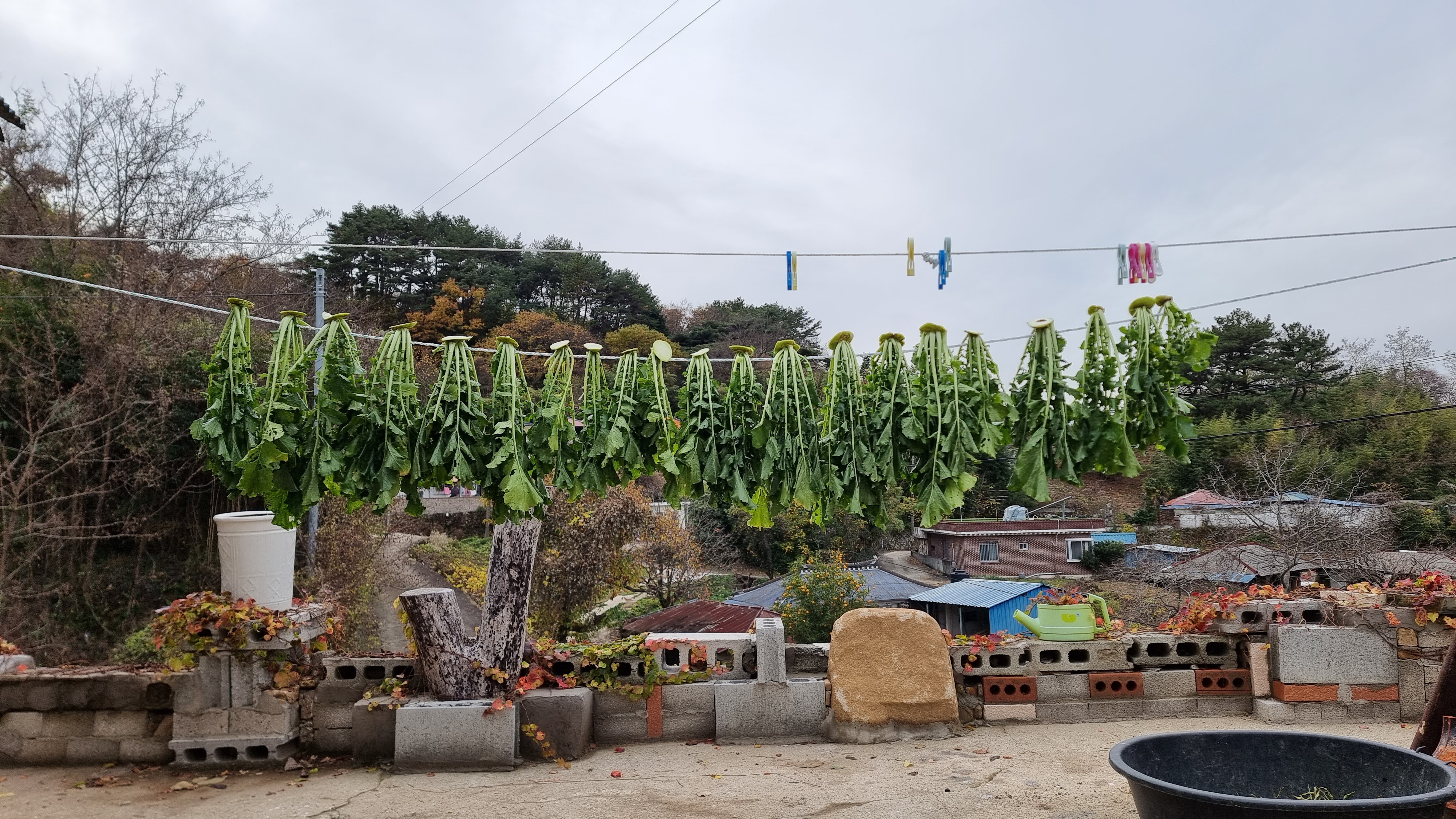 ▣ 2022.11.09. 수. 남해 - 집앞 길 낙엽 쓸기, 배추잎 말리기, 김장 절임통 세척 등.
