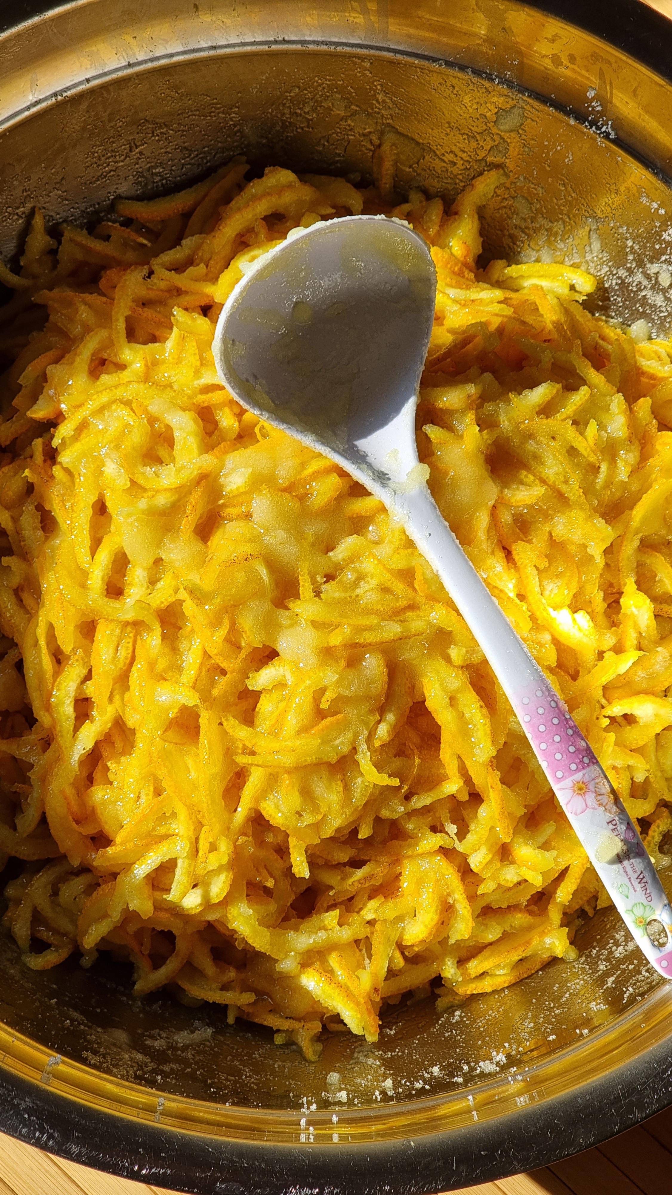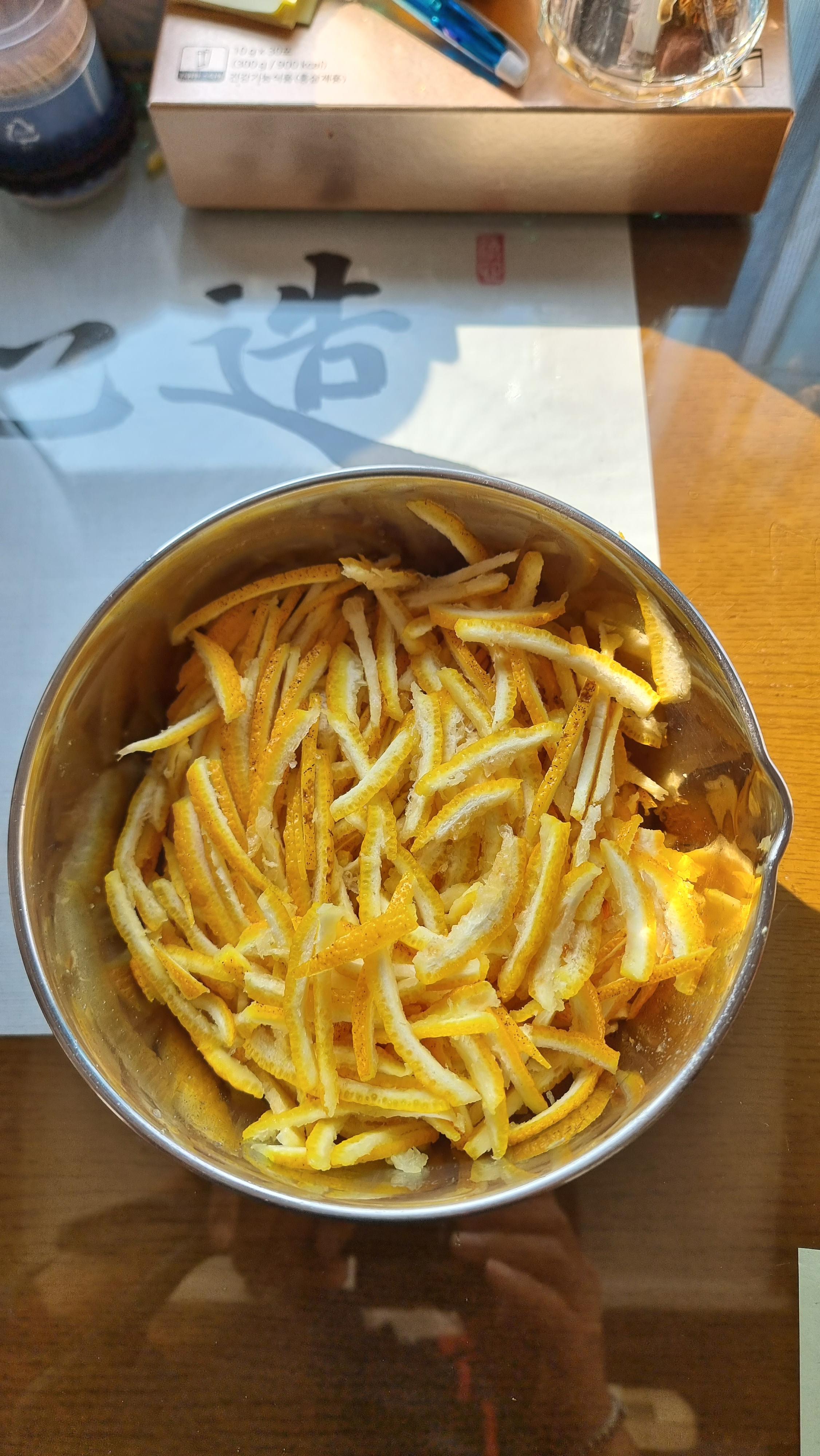 6. 유자 껍질을 가늘게 채를 썬다.