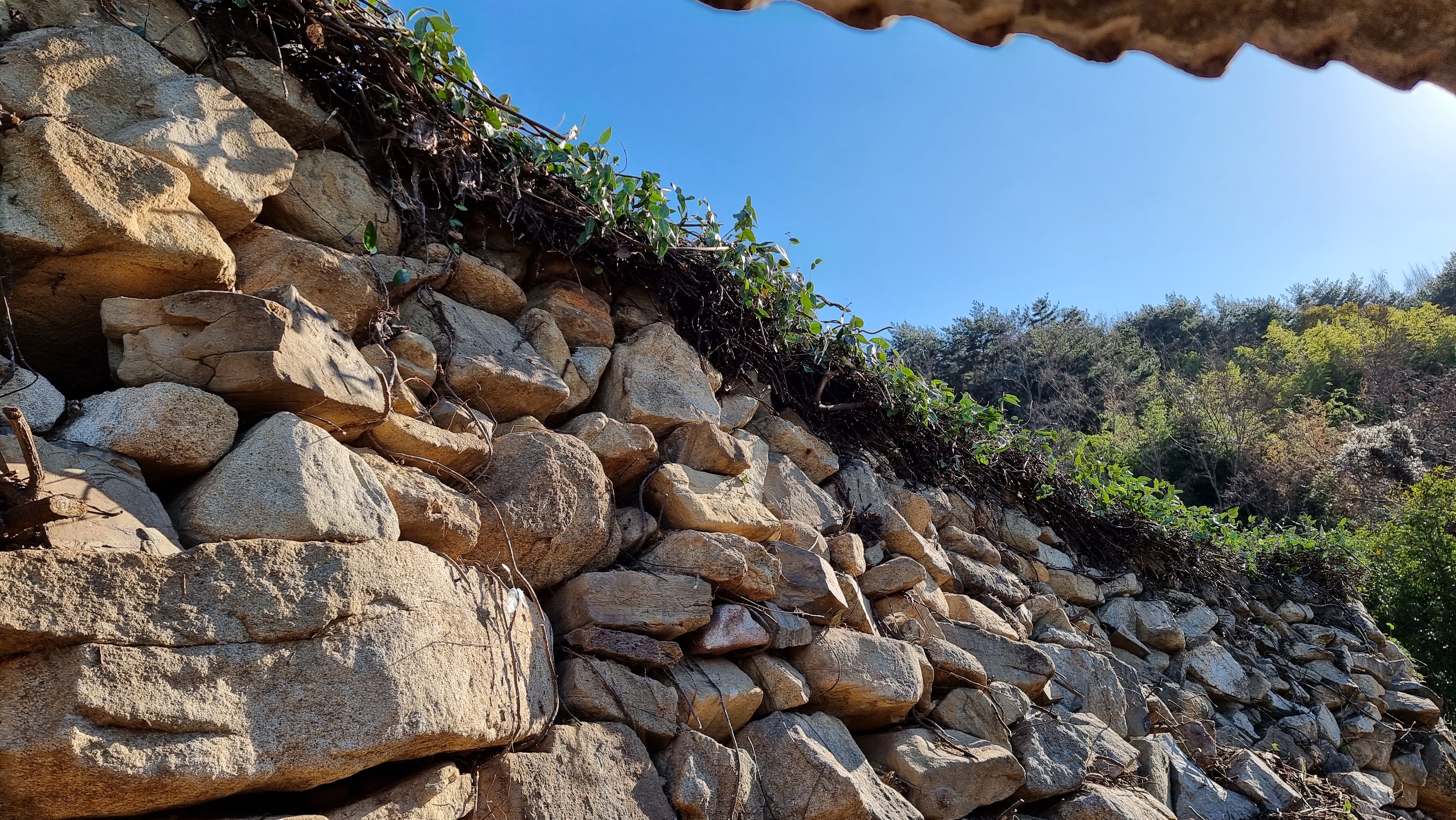 - 해넘이 목욕을 하고 와 점심을 먹었는데, 오늘 점심은 읍내 뚜레주르에서 산 바게트와 삶은 계란, 커피 한 잔으로 떼웠다. 그래도 충분하다. 아침을 늦게 먹는 까닭이다. 점심을 먹고는 요즘 계속하고 있는 무너진 돌담을 쌓는 일을 했다. 창고 뒤에 무너진 돌로 인해 통로가 막혀 있었는데, 오늘에서야 뚫었다. 무너진 돌로 돌담을 쌓았는데 그 위에 또다른 용도로 사용할 수 있을 듯도 하다.
