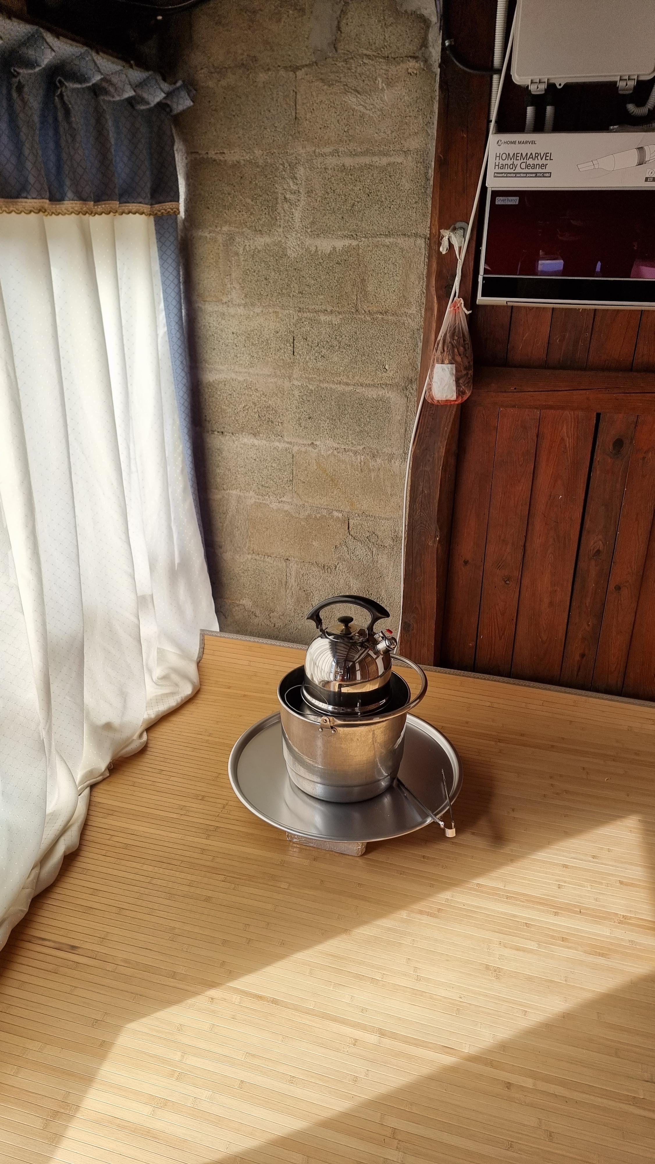 - 오늘 점심은 2시 정도에 먹었다. 오후에는 비 같지 않은 비가 오다 말다를 반복 한다. 오늘 돌담 정리 작업을 하면서 나온 묵은 칡넝쿨, 생칡넝쿨, 이름모를 식물 덩쿨들을 모았더니 한 바지게 쯤 되었다. 이것들도 좋은 땔감이 된다. 오늘은 이것만 때도 방이 따뜻할 듯 하다. 그것들을 때면서 중간에 큰 장작을 몇 개 넣어 숯으로 만들어 이동식 화로에도 넣었더니 마루에도 훈기가 돈다.