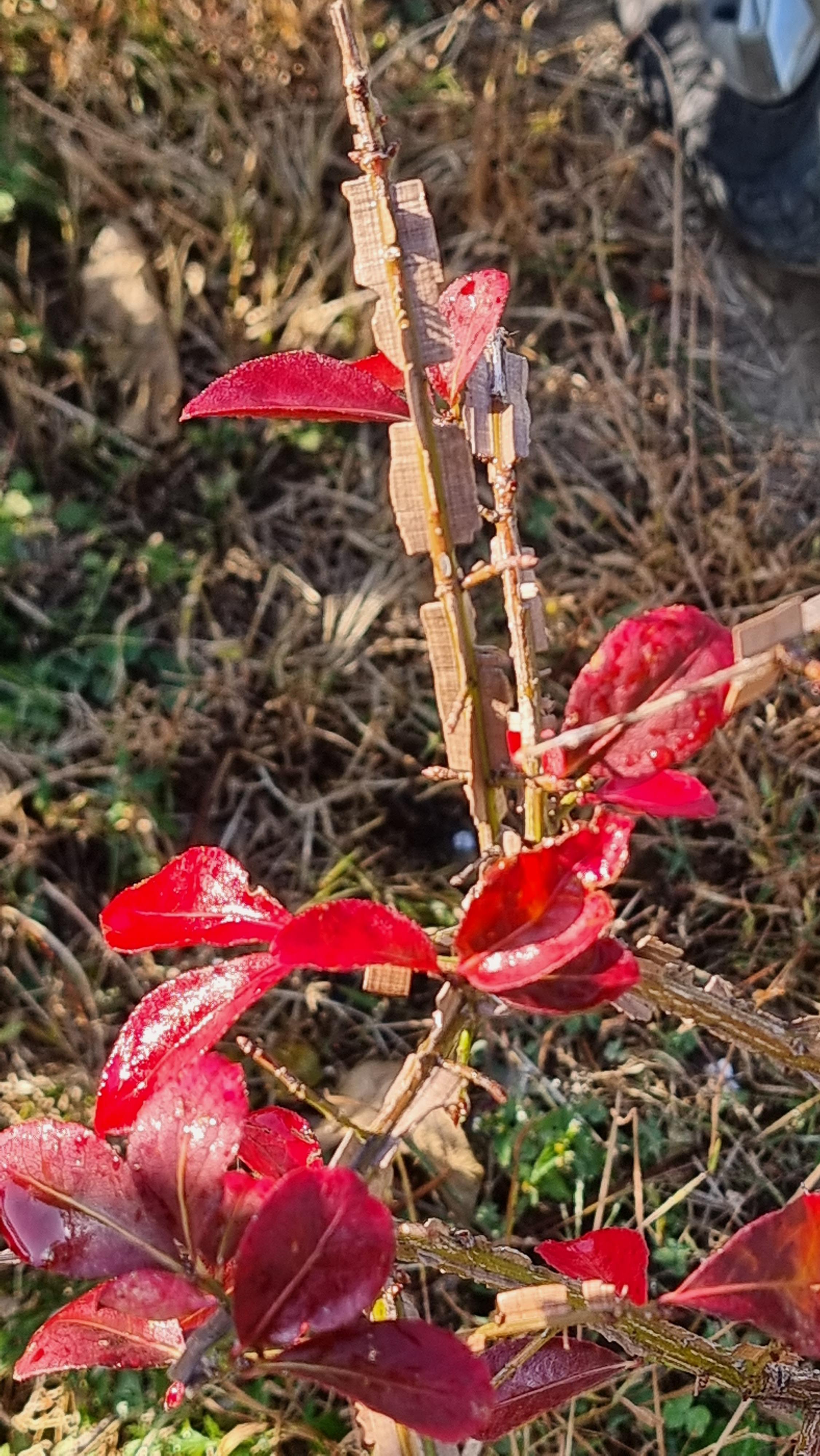 - 아침에 집 주위와 밭을 한 바퀴 돌면서 시금치를 조금 솎았다. 집 앞 채소밭에도 시금치를 조금 심었는데, 집 뒤 밭에 심은 것보다 확실이 빨리 자랐다. 처음으로 몇 포기 솎았기 때문에 신고를 드렸다. 그 시금치를 그냥 살짝 데쳐서 된장에 찍어 먹었는데 시금치가 맛있다. 또 우리 시금치는 거름도, 비료도, 농약도 하지 않은 오리지널 유기농 시금치다. 그 시금치 밭에 물도 듬뿍 주었다. 밭 입구에 심은 '화살나무'에 빨간 단풍이 곱게 들었다.