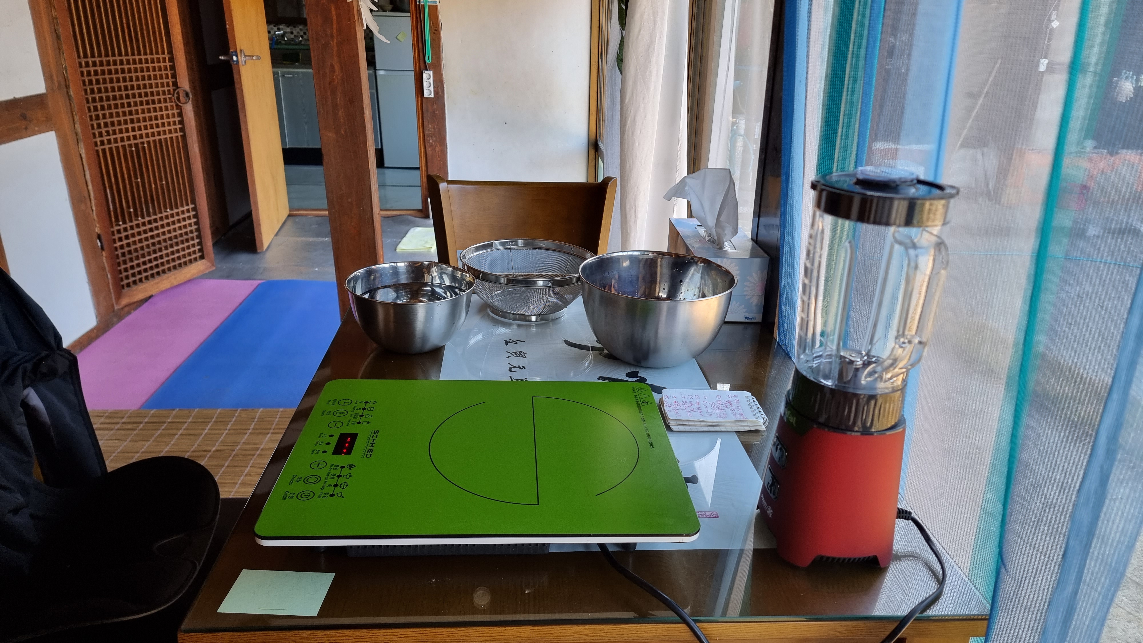 - 아침을 먹고는 어제 쭉정이를 골라내고 깨끗이 씻어 놓은 메밀을 가지고 묵을 만들기로 했다. 사용한 메밀의 양은 500CC고, 물은 800~900CC 필요하단다. 유튜브 등을 참고하여 내가 만들 메밀 묵의 절차는,