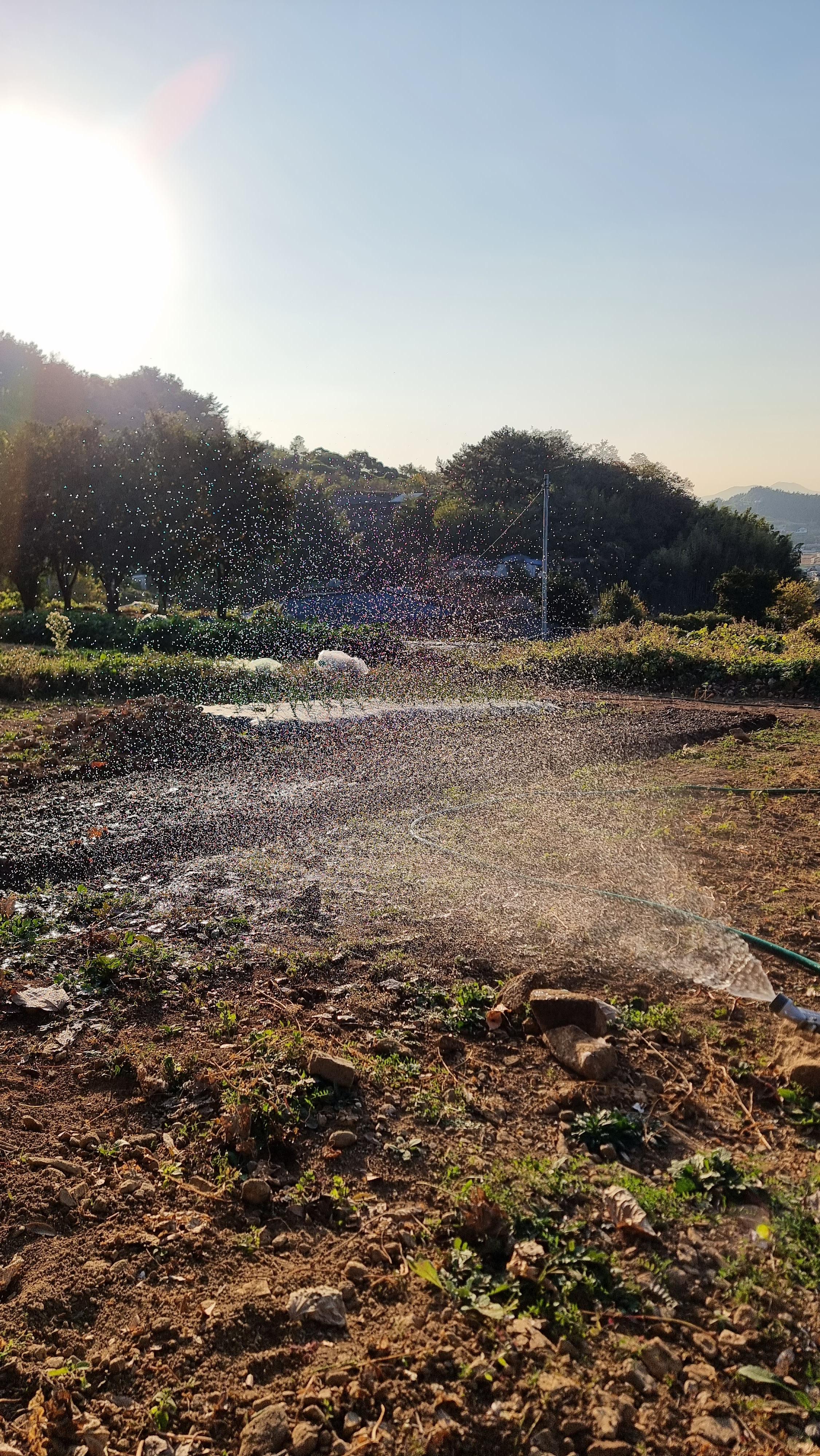 - 아침을 먹기 전에 늘 하는 스케줄을 소화하고 마늘과 시금치에 물을 듬뿍 주었다. 호스로 물을 주는 것은 참으로 즐거운 일 중의 하나다. 꽃밭에, 정원에 물을 주는 모습은 실제로 봐도, 영상으로 봐도 행복하고 즐거운 모습이다. 채소밭에 물을 주는 모습 역시 아름답다. 이런 모습들은 누구나 정겨워하고 그리워한다. 나 역시 그런 모습을 늘 그리워했을지도 모른다.