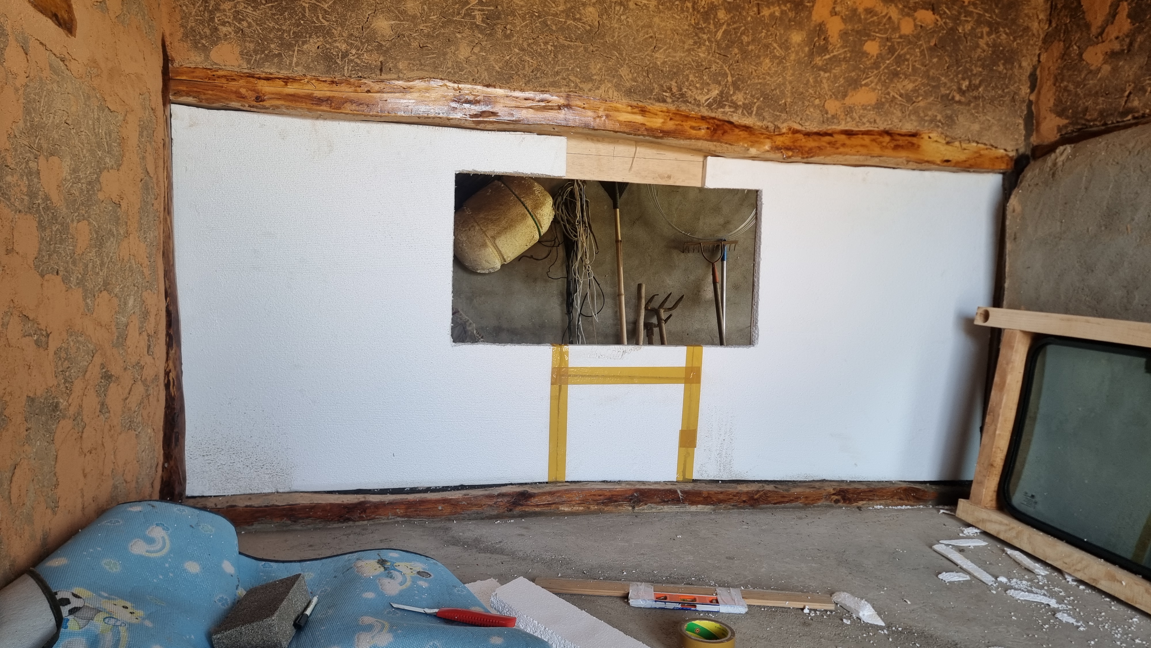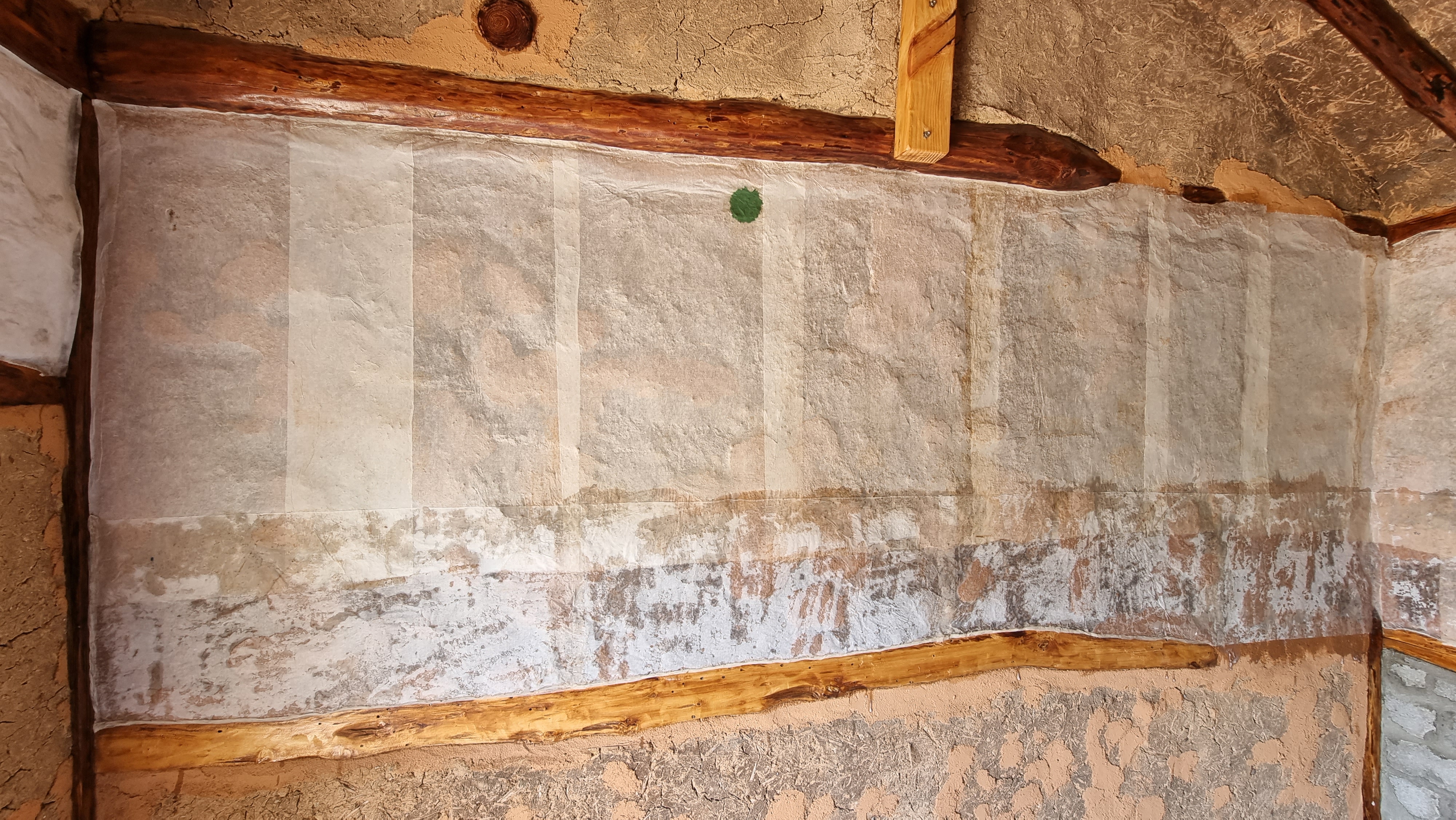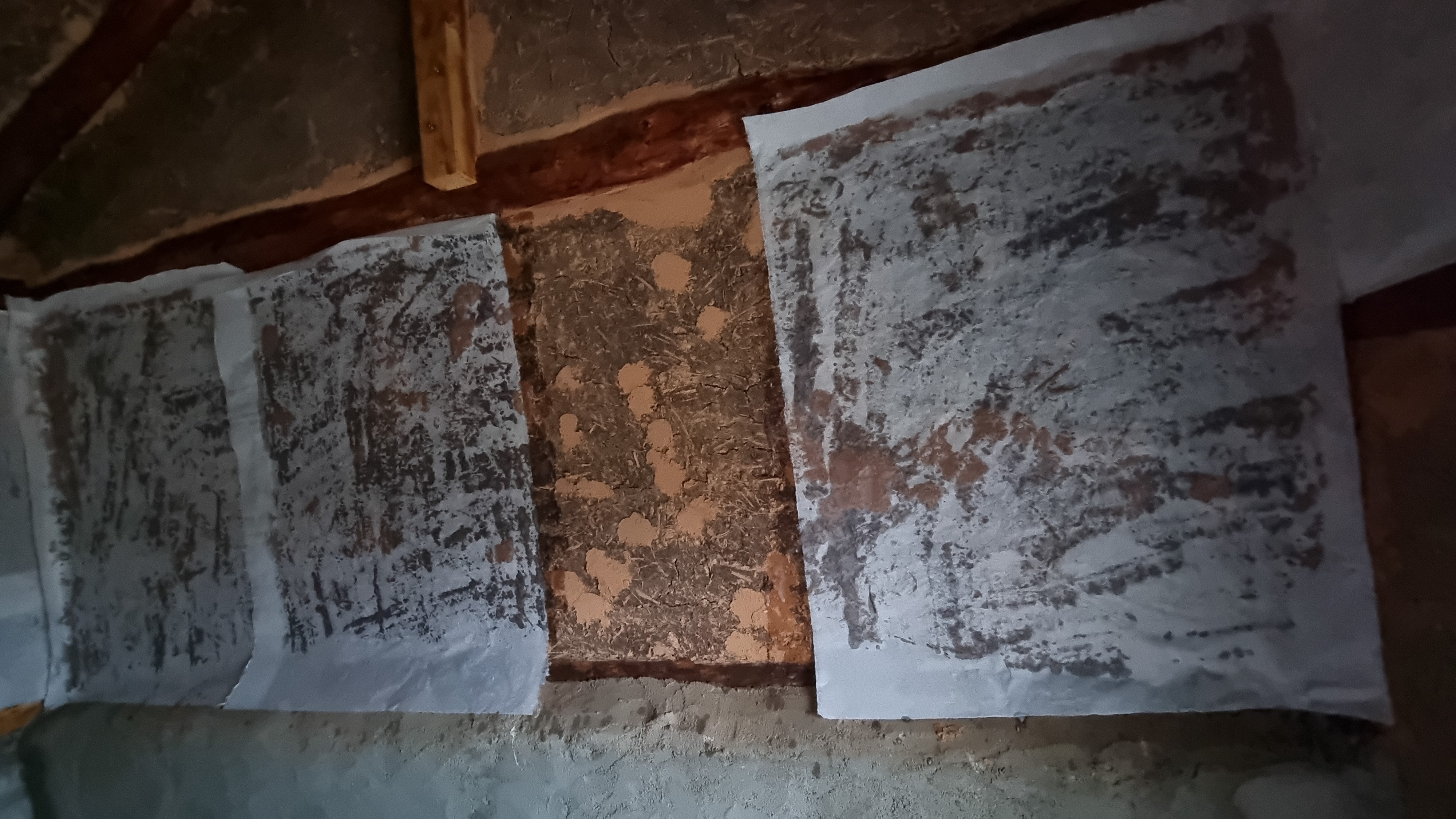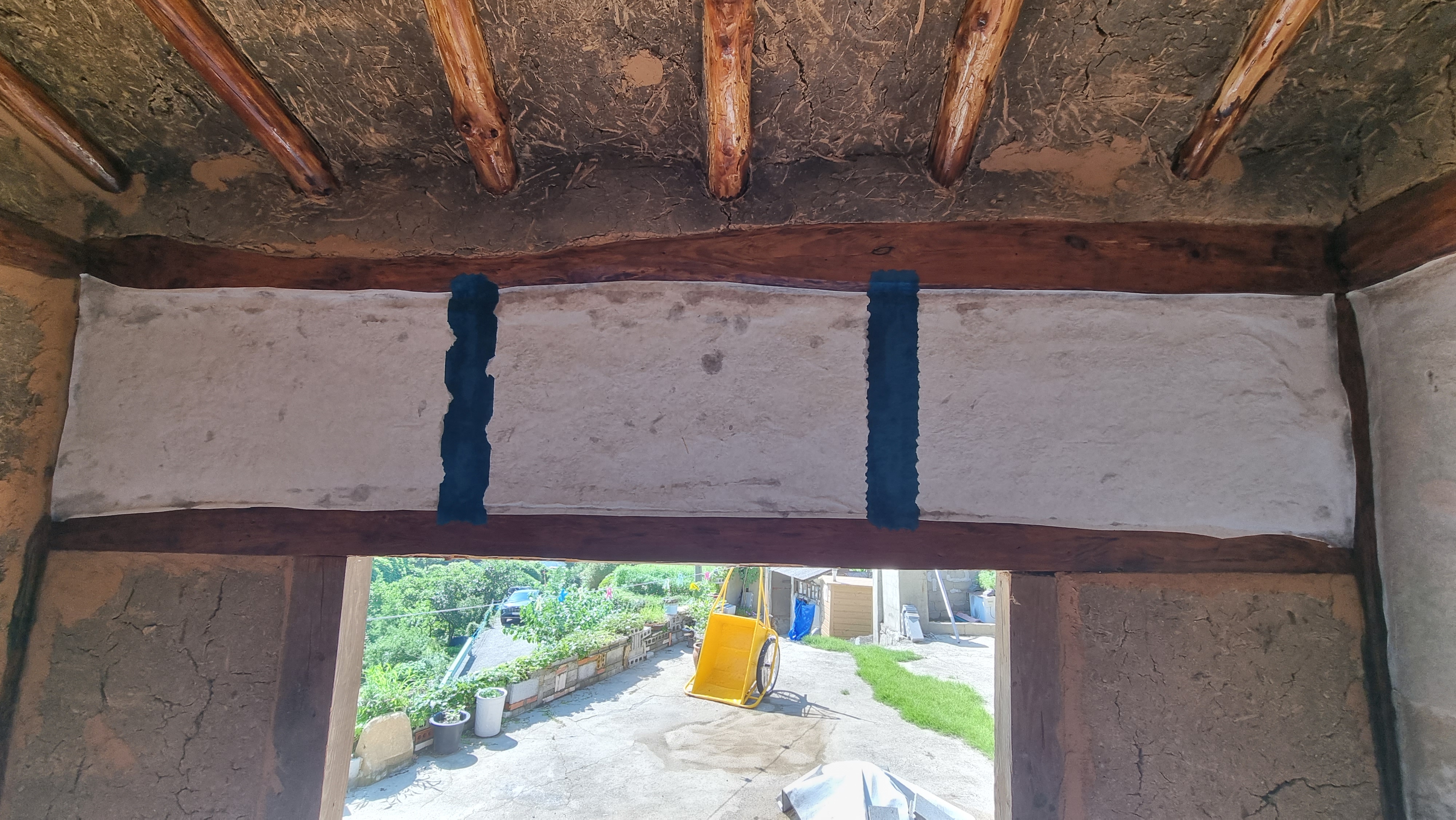 - 마른 벽에 분무기로 물을 뿌리고, 한지에 직접 풀을 칠하지 않고 벽에 묽게 만든 풀을 붓으로 찍듯이 듬뿍 바르고 한지를 발랐다. 처음에는 한지에 풀칠을 한 후 발랐는데 벽이 울퉁불퉁 한데다 흙들이 잘 떨어지는 바람에 벽에 붙지를 않았다. 그래서 벽에 풀을 바른 후 한지를 붙이는 식으로 했고, 벽과 기둥 등 나무와 닿는 곳에서 흙이 떨어지지 않게 한지를 조금 넉넉하게 잘라 접어서 꼼꼼히 붙였다.