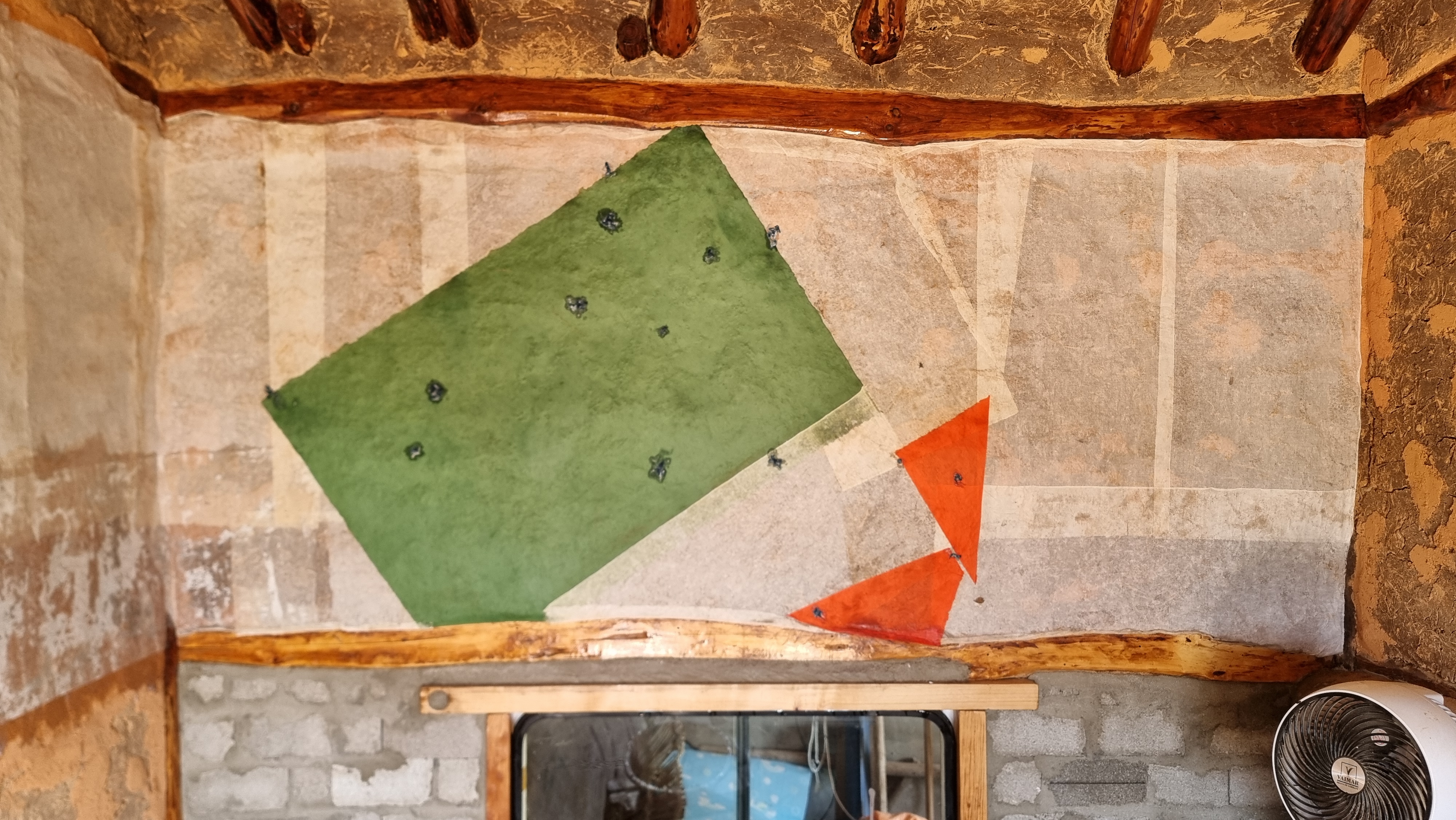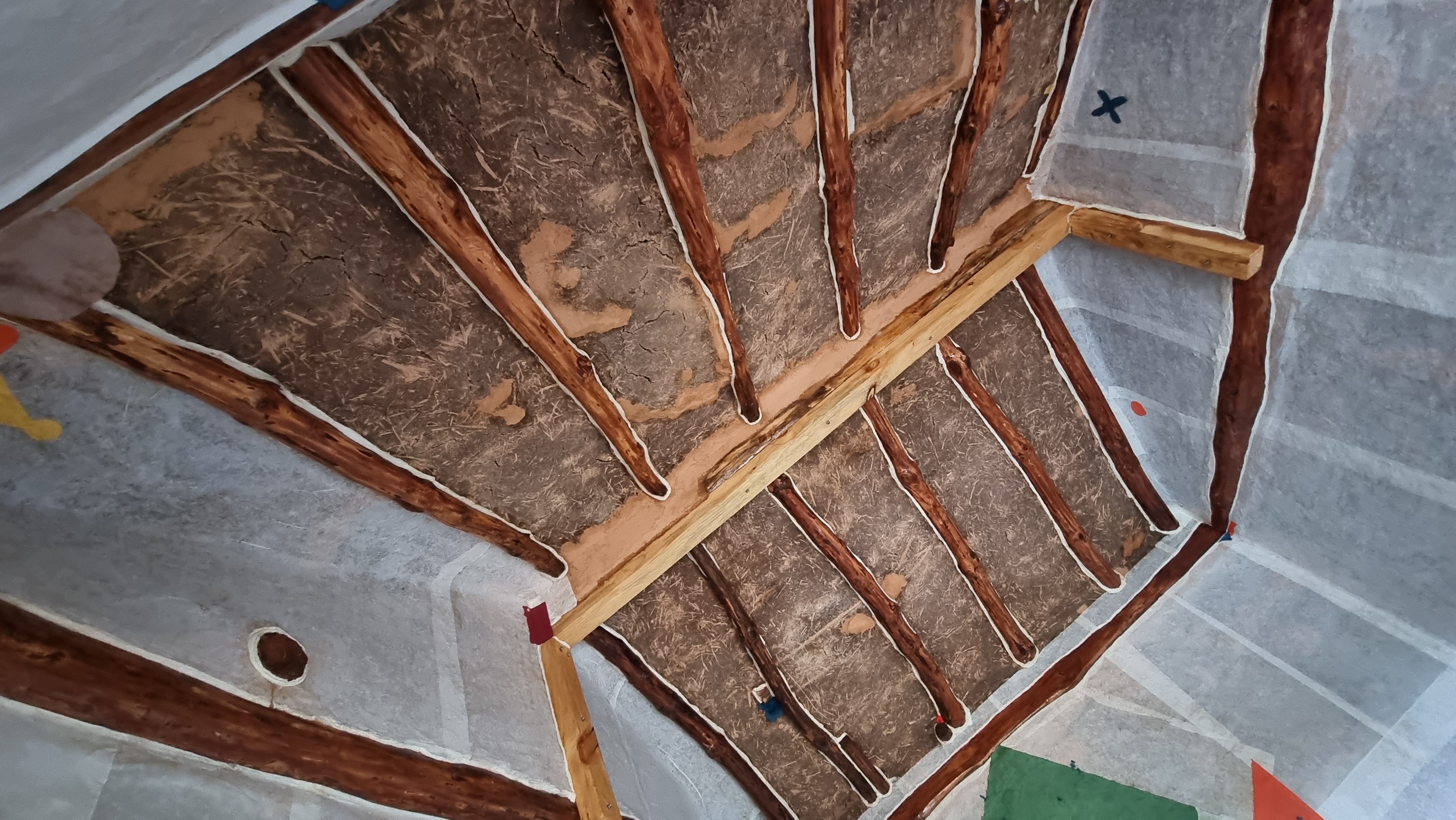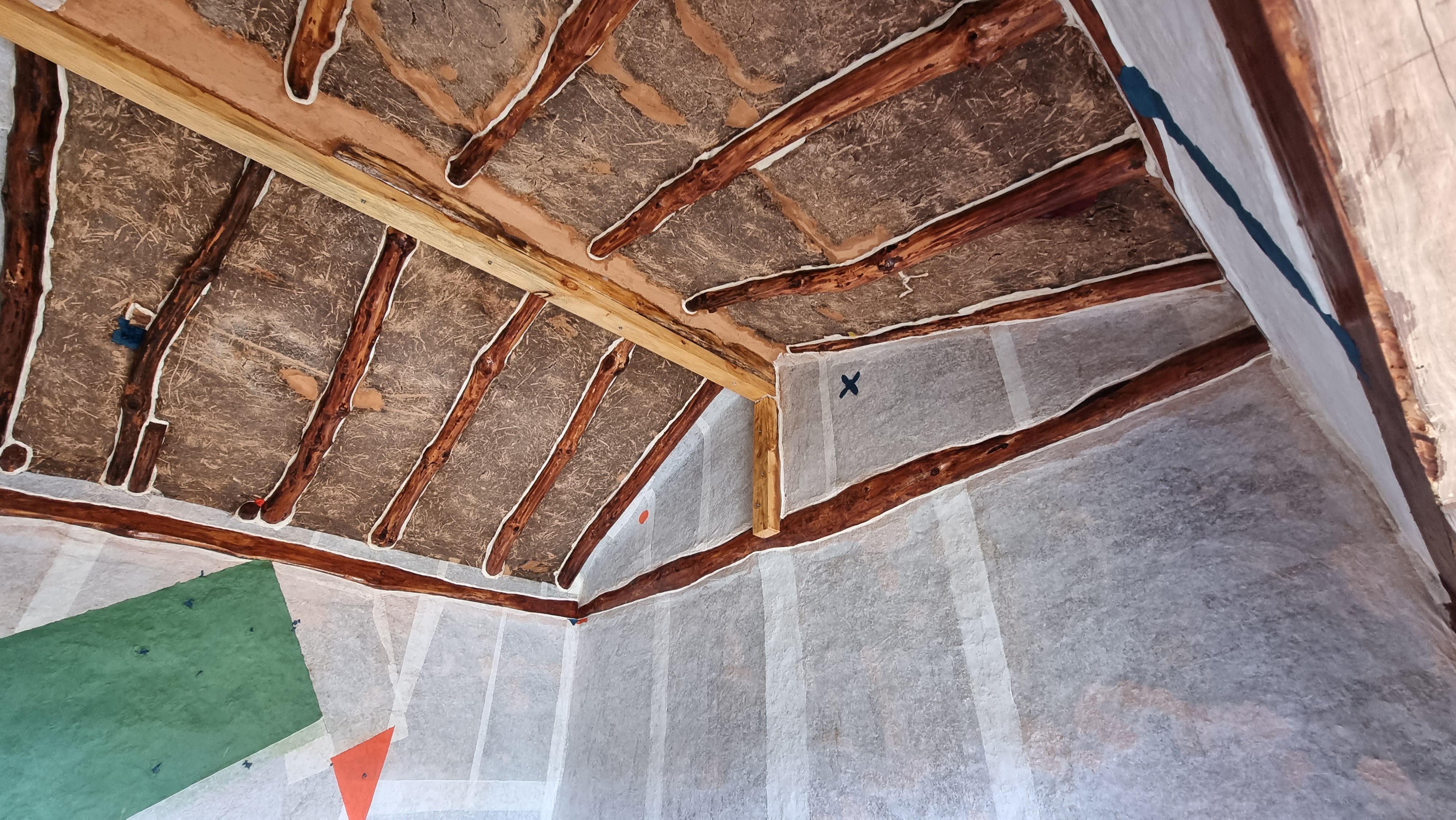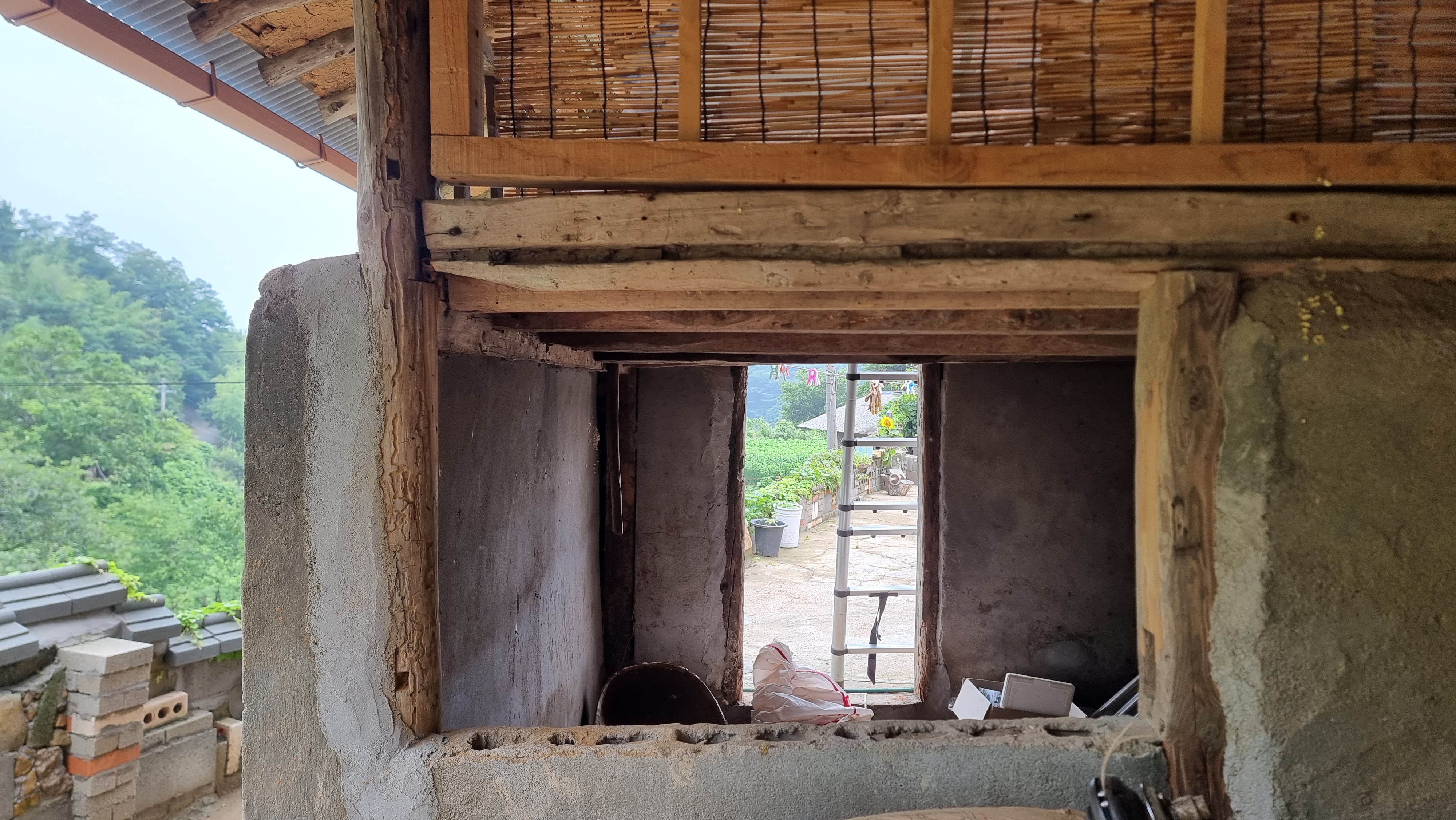 - 아침을 먹고 나서도 바로 그 작업을 이어갔다. 그렇다고 날씨가 궂어 밭에 나가 일을 할 수 있는 상태는 아니다. 가끔 세찬 비를 뿌리기도 했다. 천장 도배를 어떻게 할 것인지 많은 고민을 했다. 벽에 했던 것처럼 한지로 바르고, 서깨래와 천장의 벽 사이는 한지로 메우는 것으로 생각했었다. 그러다 다시 천장 벽은 현재대로 두고, 서까래와 흙 사이만 한지로 메우기로 했다. 그렇게 했는데 천장에서 흙이 떨어지는 일이 있다면 다시 바르기로 했다.