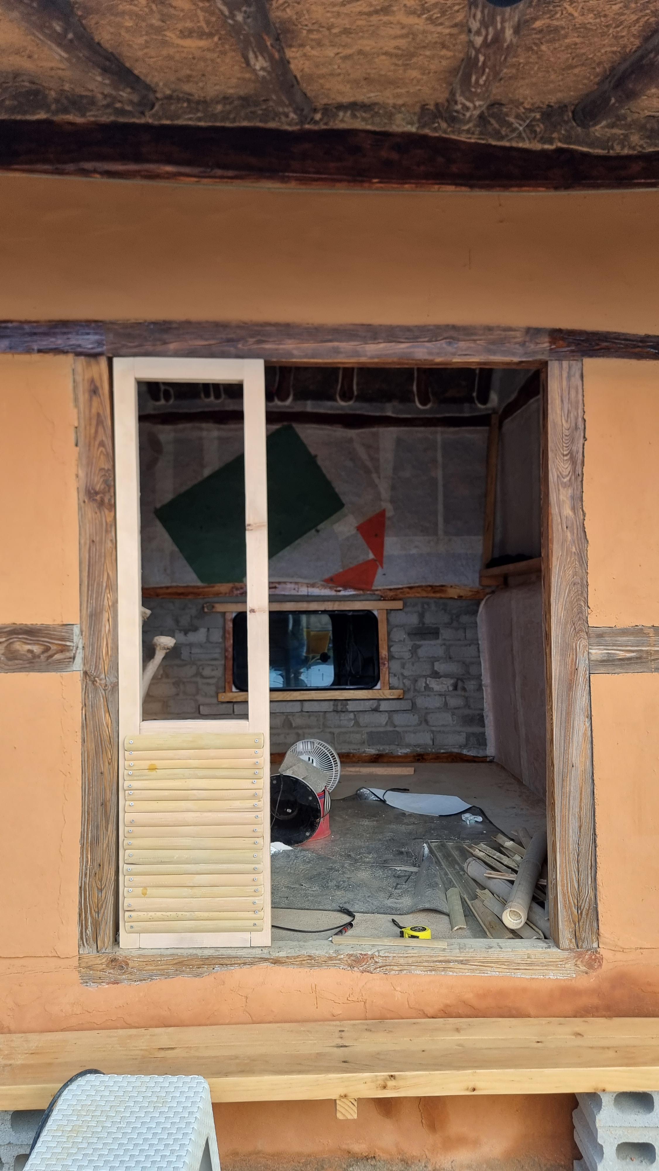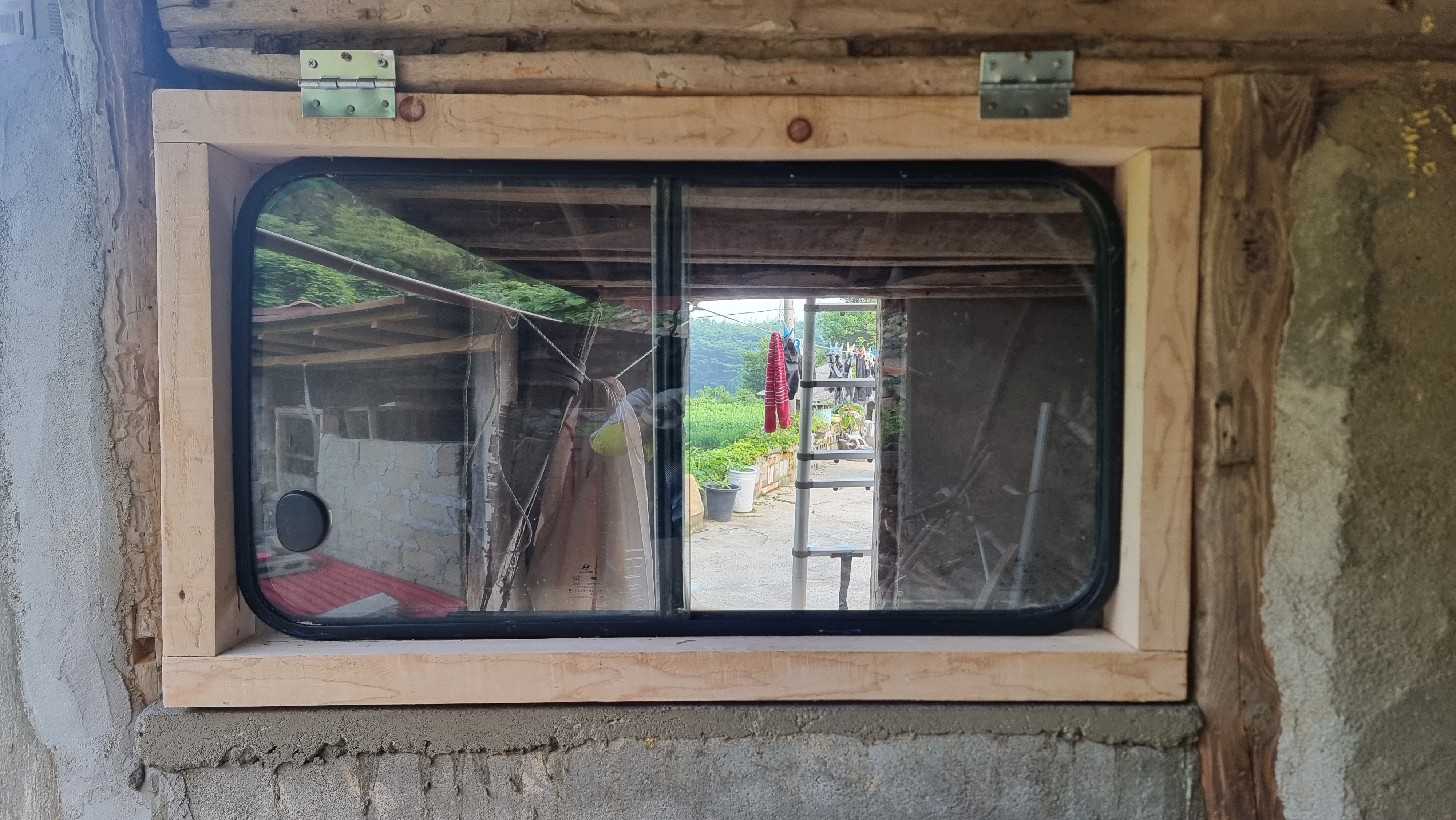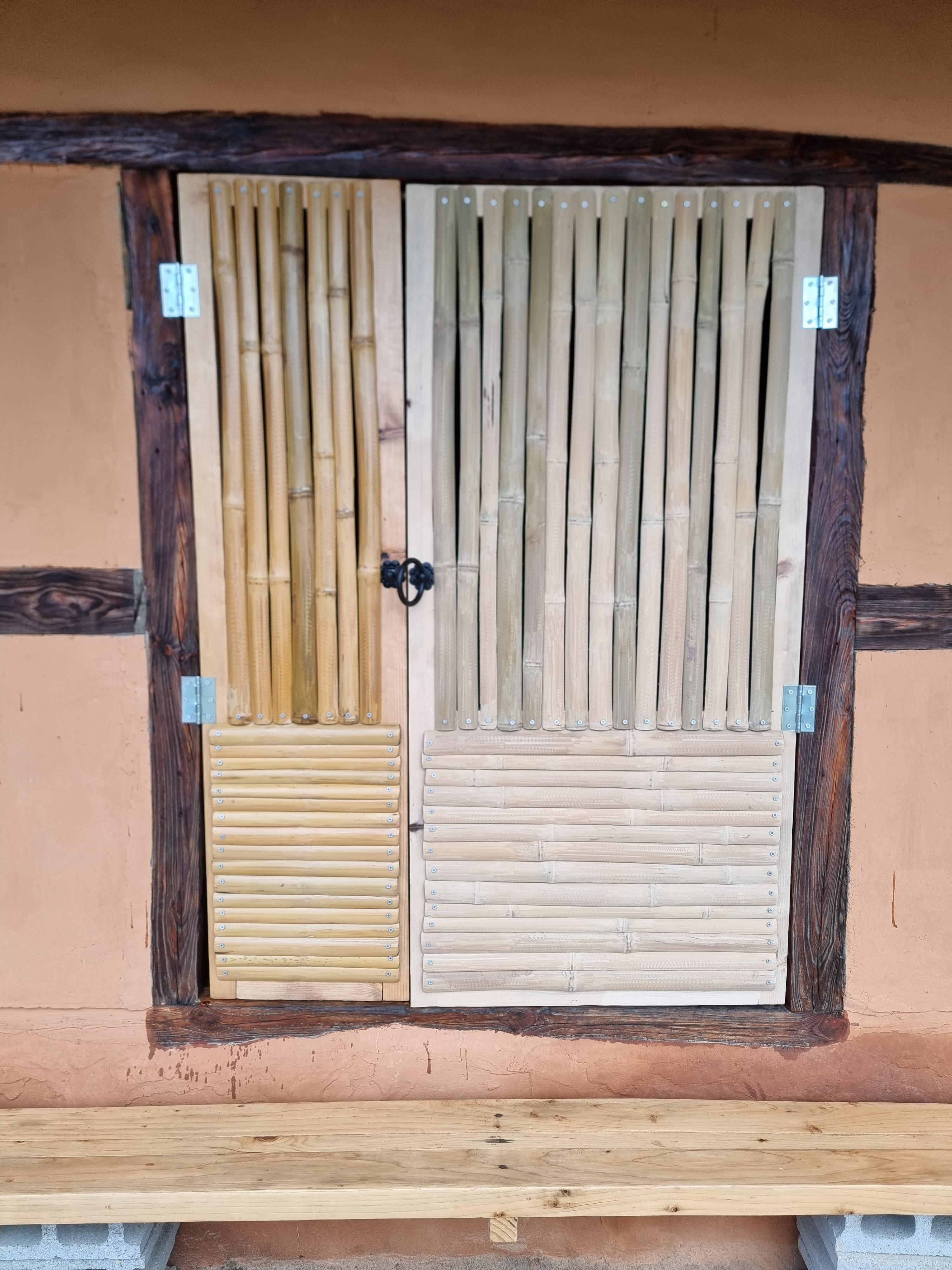 - 아침을 먹고는 어제 다실 뒷벽에 설치할 창틀을 만들었던 것과 똑같은 과정으로 창고 뒷벽에 창틀을 만들어 붙였다. 각목을 자르고, 그라인더로 각목을 갈고, 차문을 고정할 수 있게 홈을 파고, 그것들을 조립하여 못으로 고정시키고....그런데 창고 뒷 벽에 있던 공간이 차문과 어찌 그렇게 딱 맞을 수 있었을까? 희안한 우연이다. 오늘 설치한 창문은 차문 자체가 옆으로 열리지만, 창문 전체가 위로 열리도록 위쪽에 장석을 붙였다. 많은 환풍이 필요하거나 큰 물건들을 옮길 때도 용이할 듯하다.