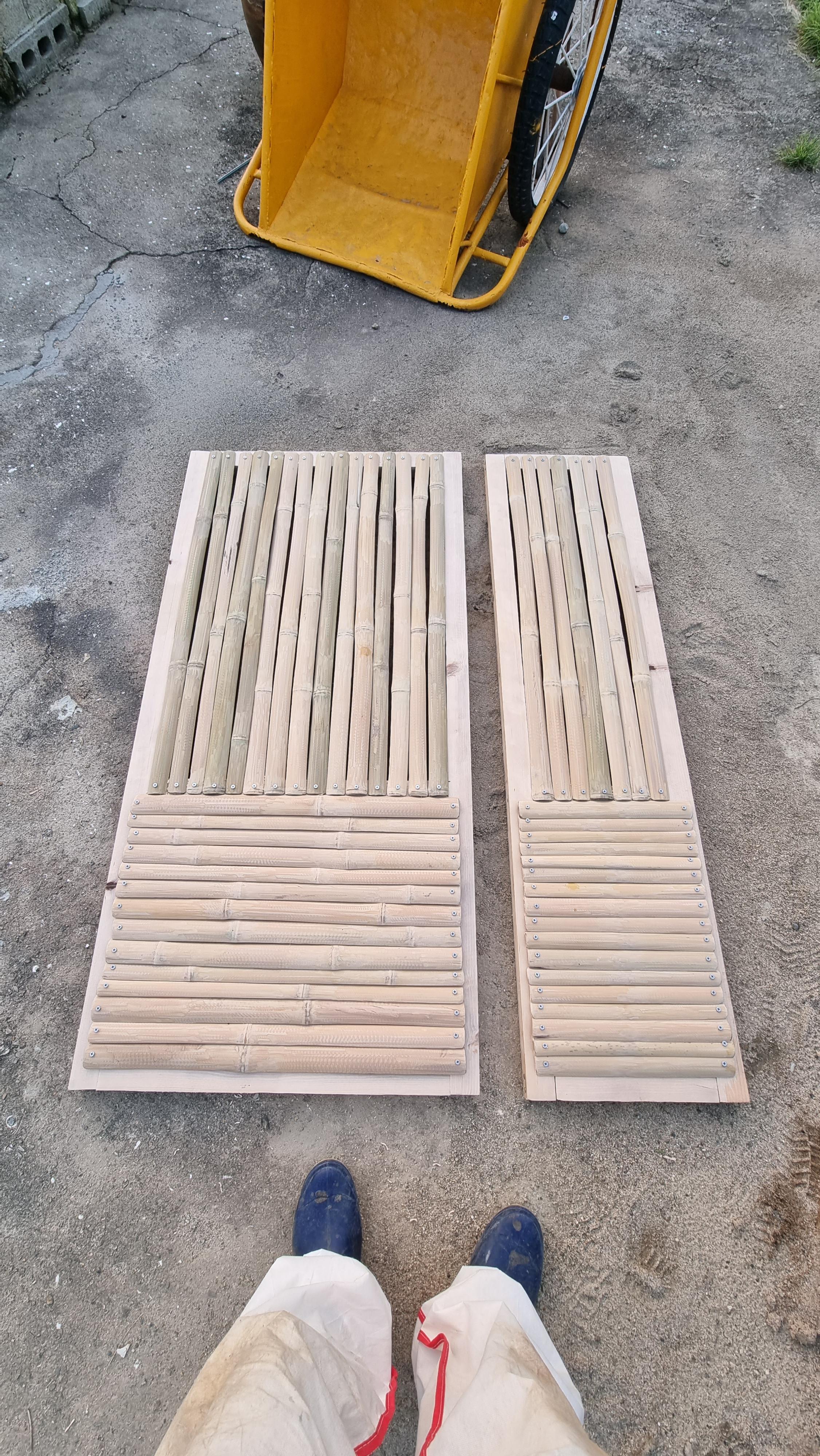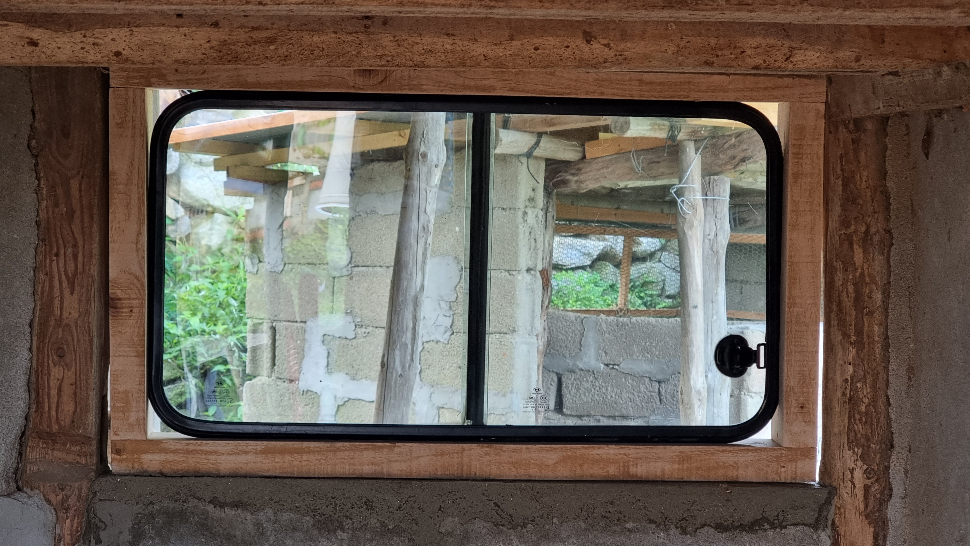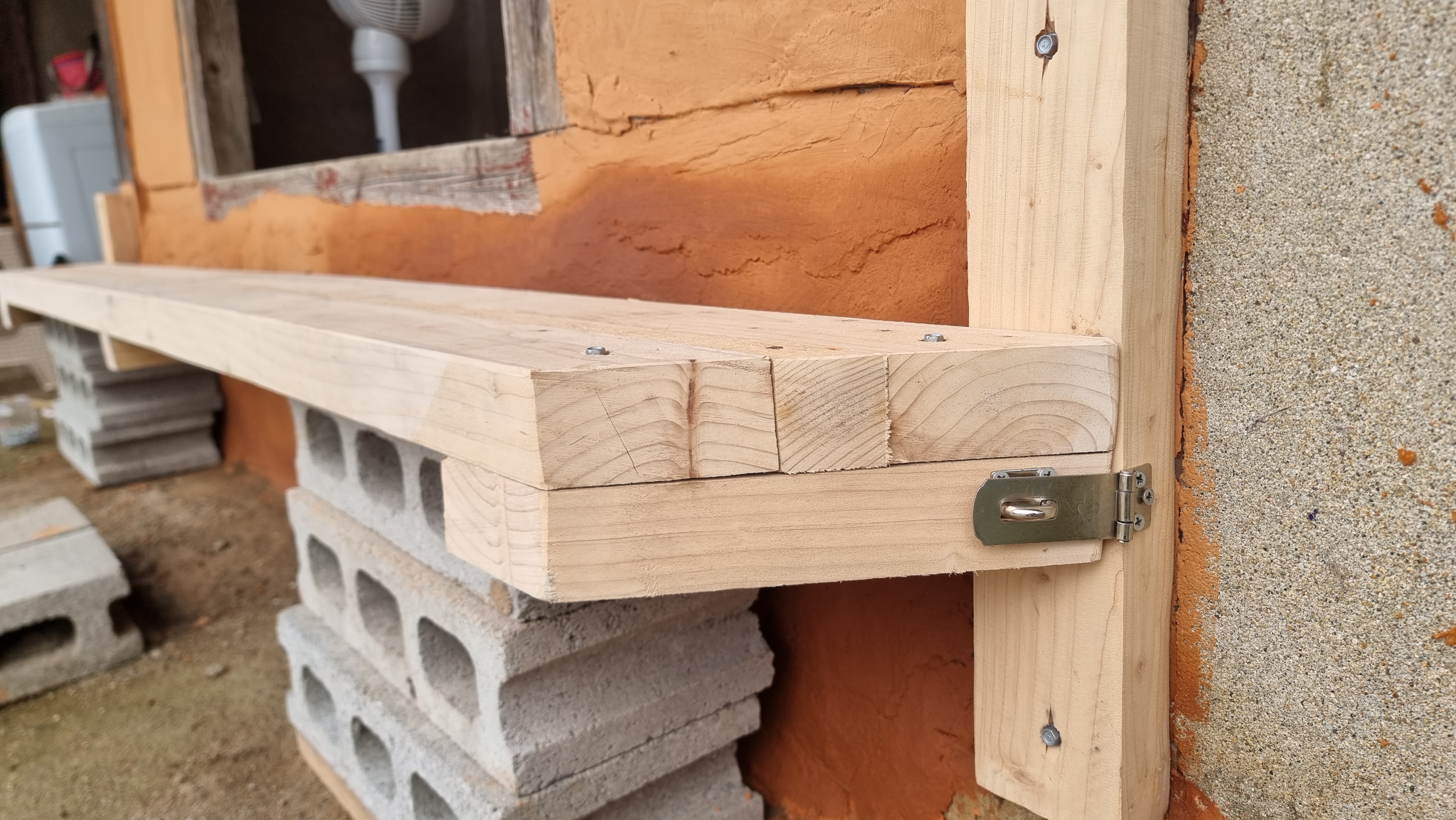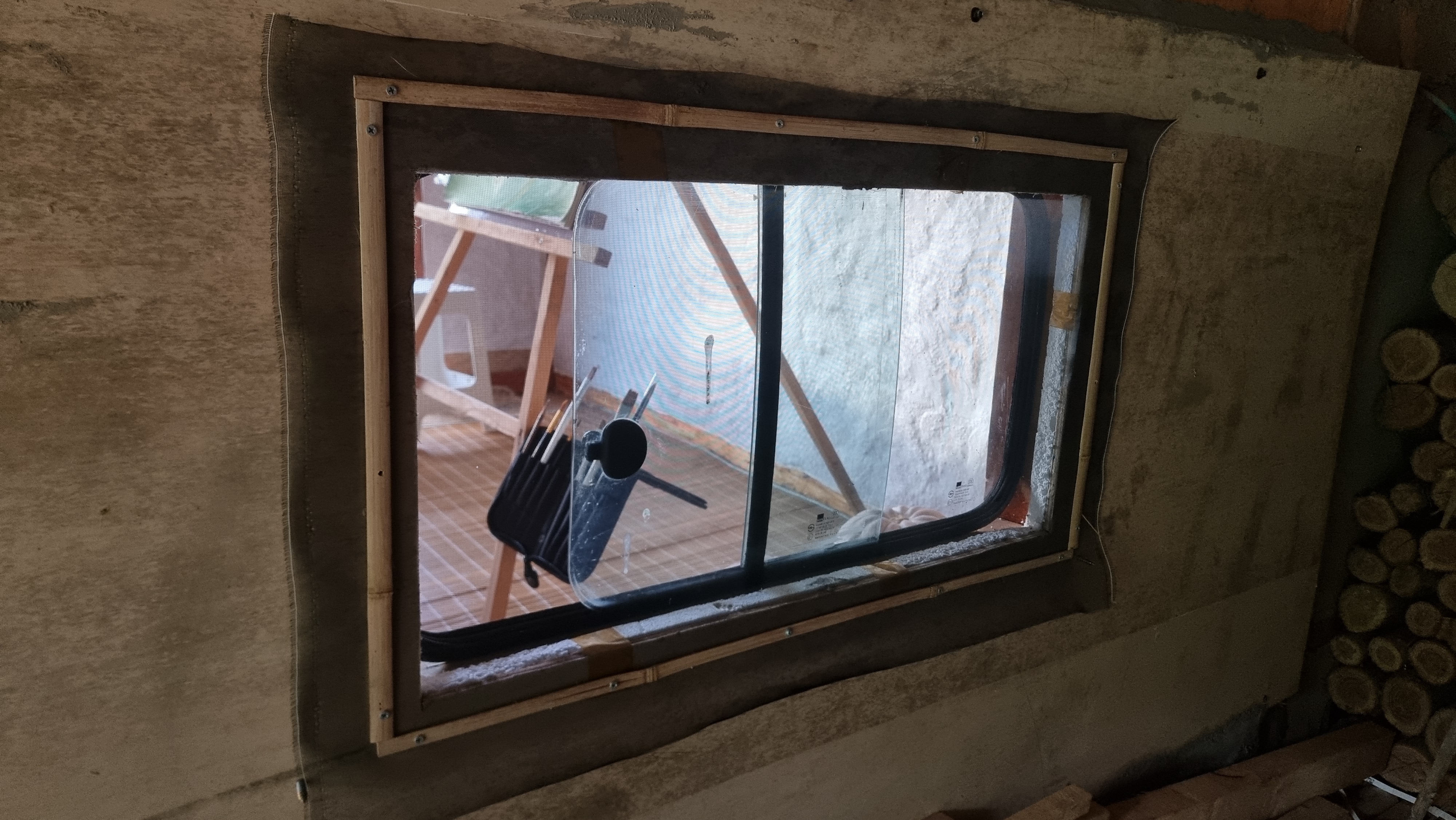 - 아침을 먹고는 어제 다실 뒷벽에 설치할 창틀을 만들었던 것과 똑같은 과정으로 창고 뒷벽에 창틀을 만들어 붙였다. 각목을 자르고, 그라인더로 각목을 갈고, 차문을 고정할 수 있게 홈을 파고, 그것들을 조립하여 못으로 고정시키고....그런데 창고 뒷 벽에 있던 공간이 차문과 어찌 그렇게 딱 맞을 수 있었을까? 희안한 우연이다. 오늘 설치한 창문은 차문 자체가 옆으로 열리지만, 창문 전체가 위로 열리도록 위쪽에 장석을 붙였다. 많은 환풍이 필요하거나 큰 물건들을 옮길 때도 용이할 듯하다.