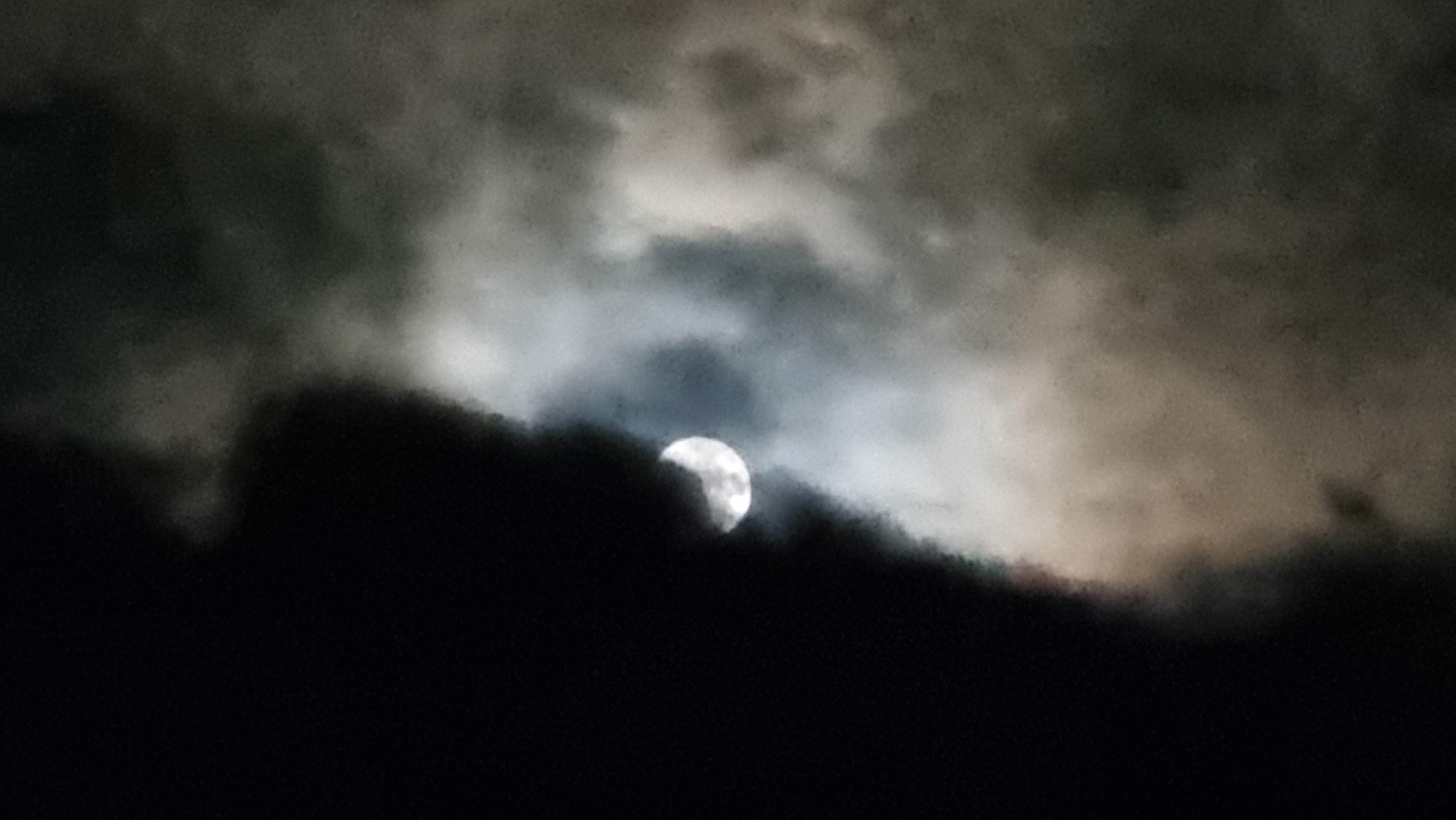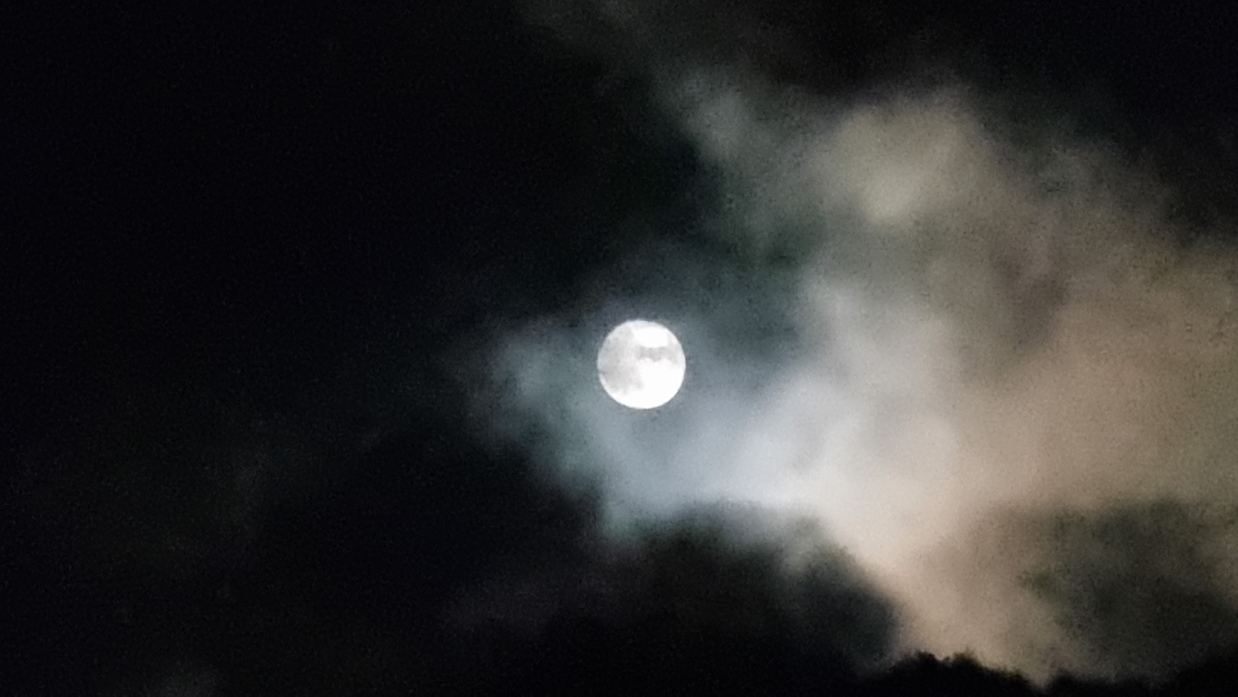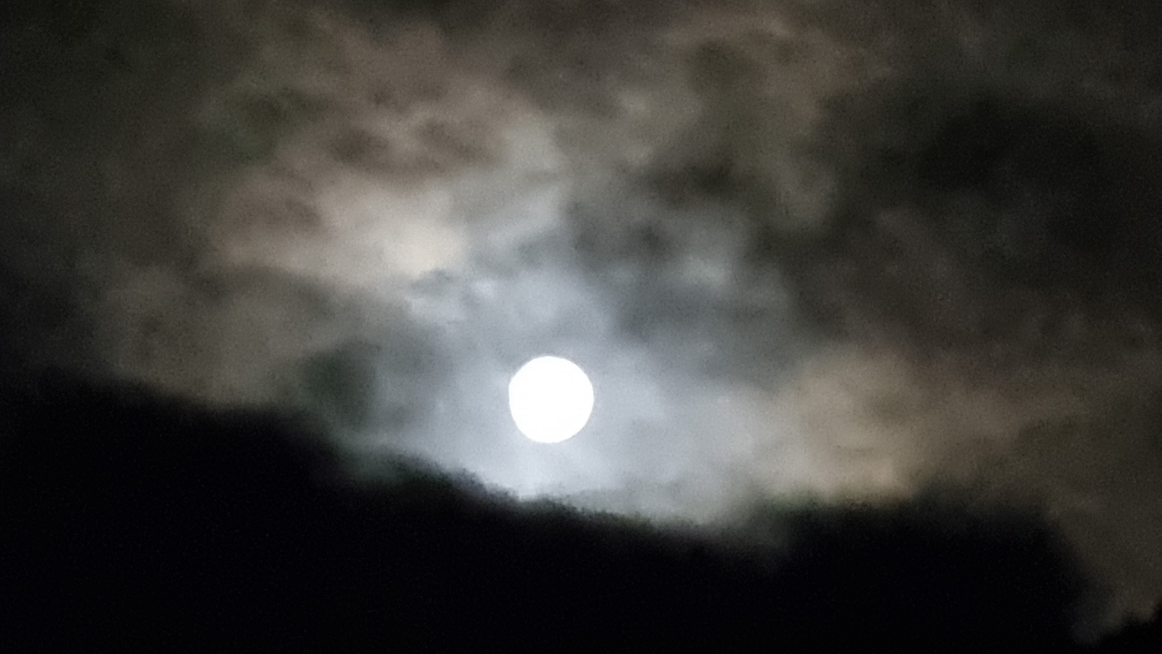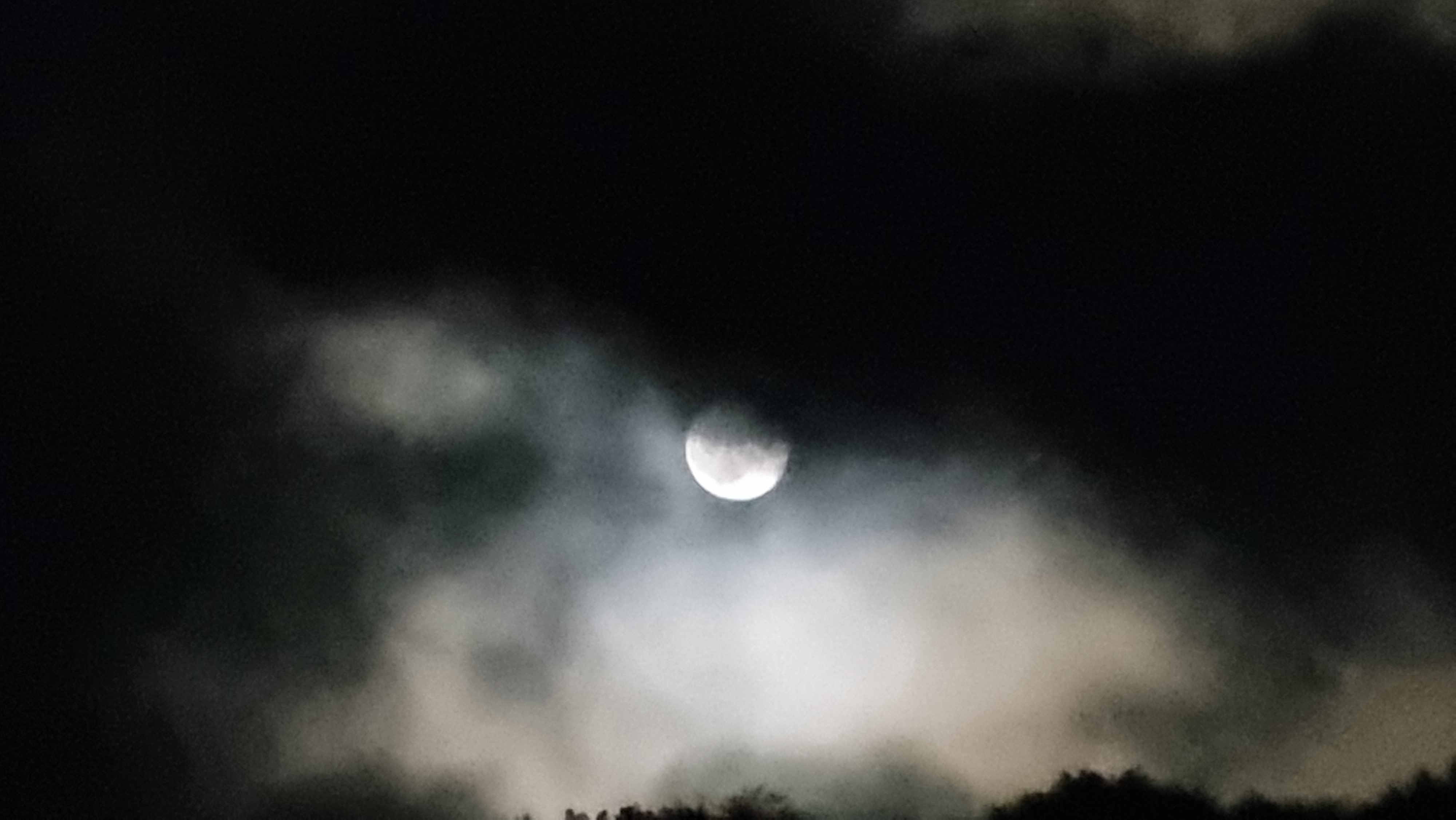 - 오늘이 8월의 말일이다. 슈퍼블루문이 뜬단다. 그래서 저녁을 먹고 휴대폰 삼각대를 설치해 놓고 달이 뜨기를 기다렸는데, 동쪽 하늘이 맑지 않아서 그런지 아직(지금 시각 21:20) 보이지 않는다. 그런데 잠시 후 나갔더니 구름 사이로 슈퍼블루문이 보인다. 주위에 짙은 구름이 있어 곧 또 묻힐지도 모르겠다. 몇 장의 사진을 찍은 후 방으로 들어왔다. 14년 후에 다시 볼 수 있기를 기대한다.