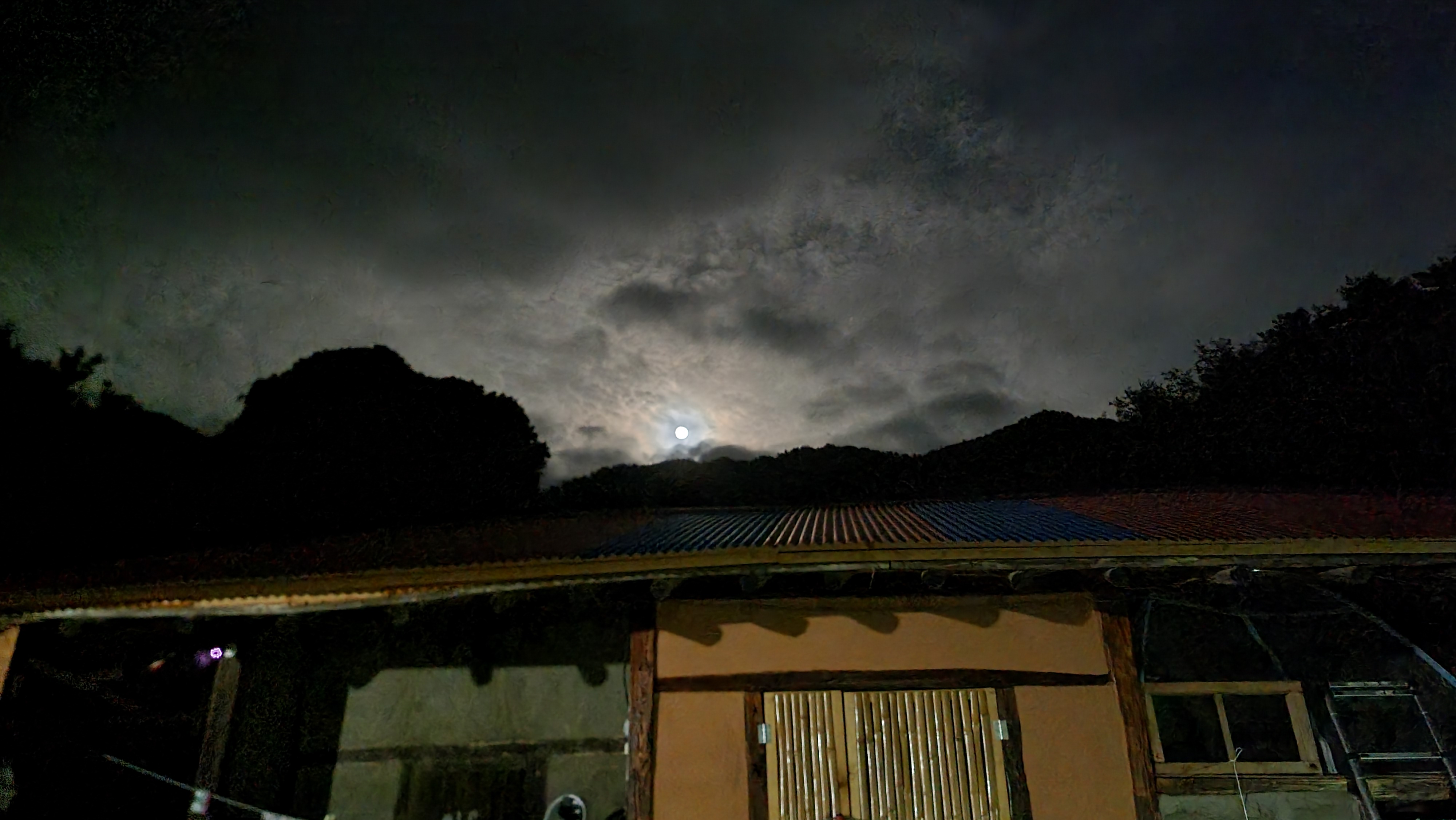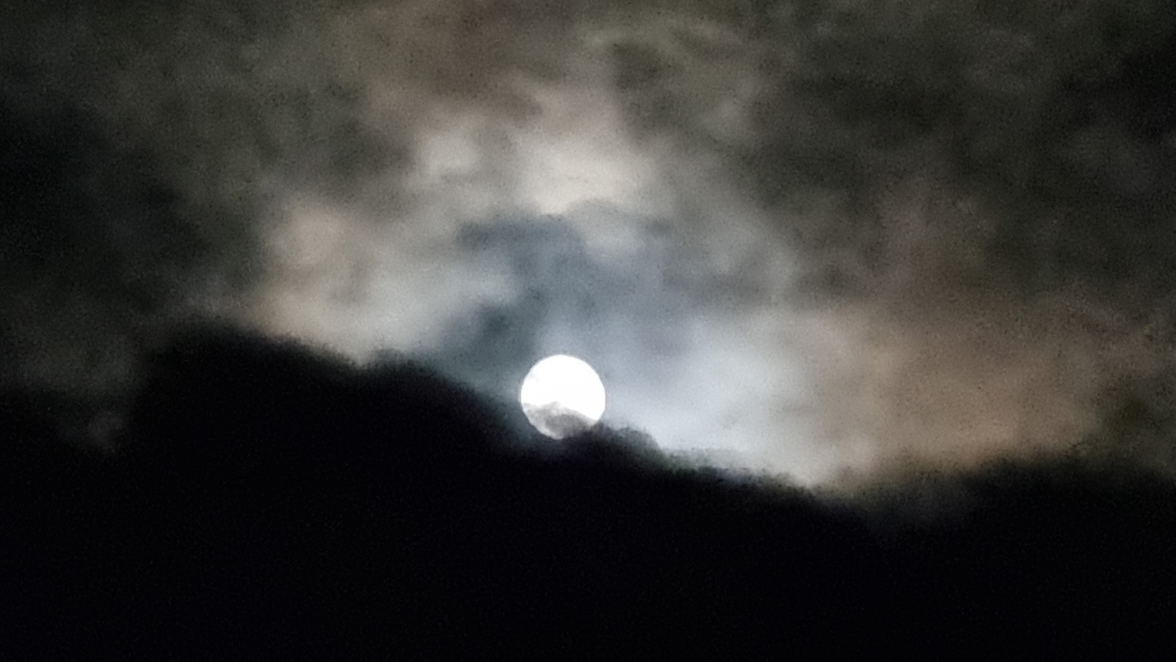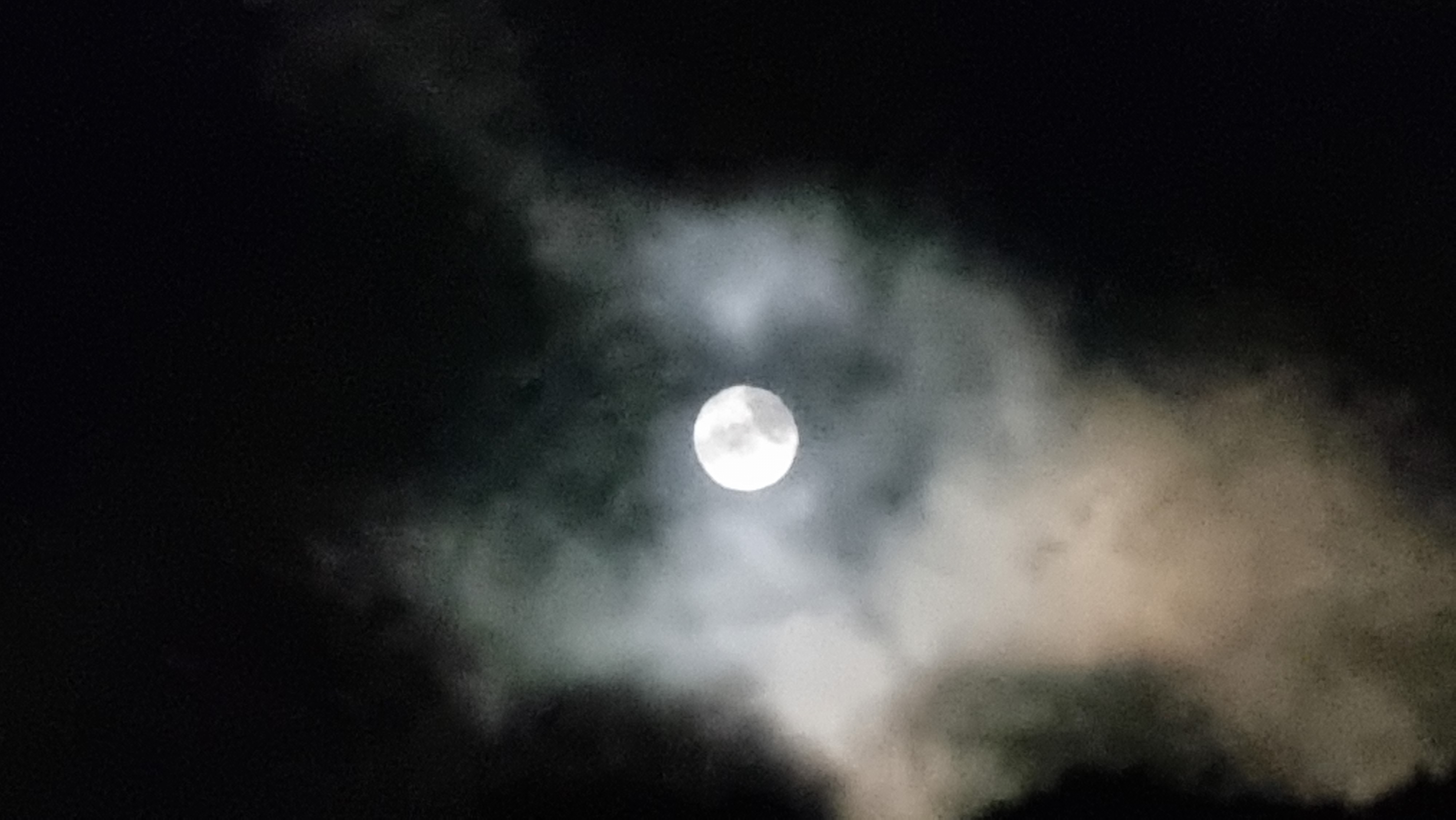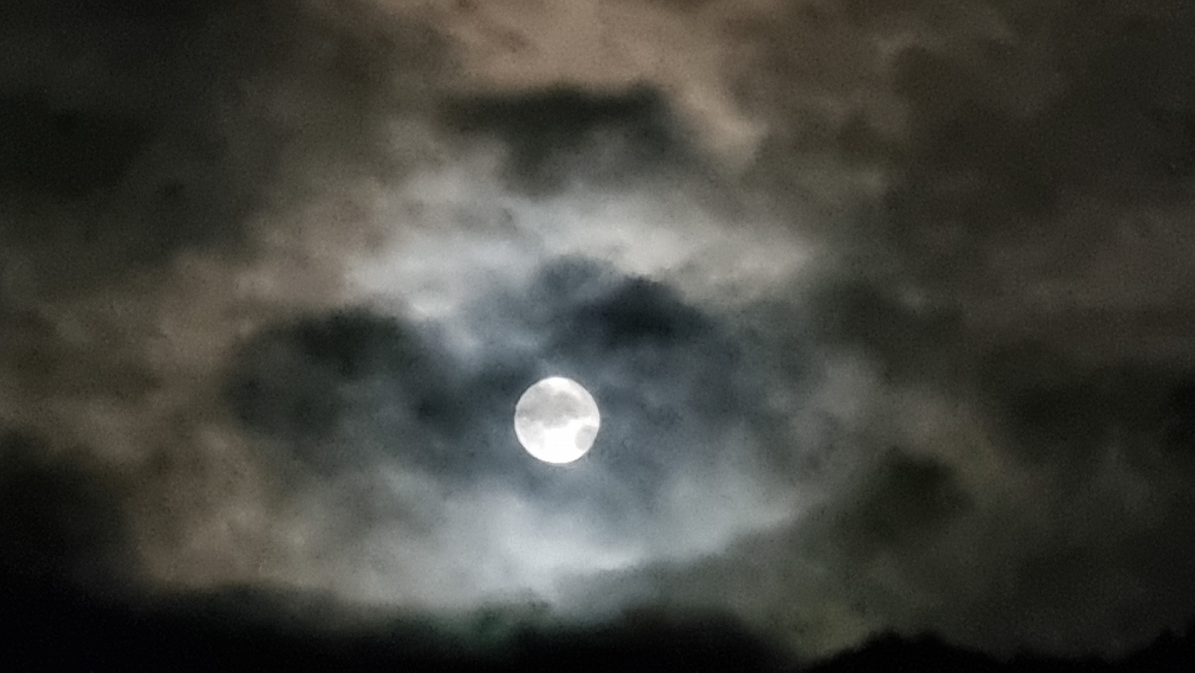 - 오늘이 8월의 말일이다. 슈퍼블루문이 뜬단다. 그래서 저녁을 먹고 휴대폰 삼각대를 설치해 놓고 달이 뜨기를 기다렸는데, 동쪽 하늘이 맑지 않아서 그런지 아직(지금 시각 21:20) 보이지 않는다. 그런데 잠시 후 나갔더니 구름 사이로 슈퍼블루문이 보인다. 주위에 짙은 구름이 있어 곧 또 묻힐지도 모르겠다. 몇 장의 사진을 찍은 후 방으로 들어왔다. 14년 후에 다시 볼 수 있기를 기대한다.