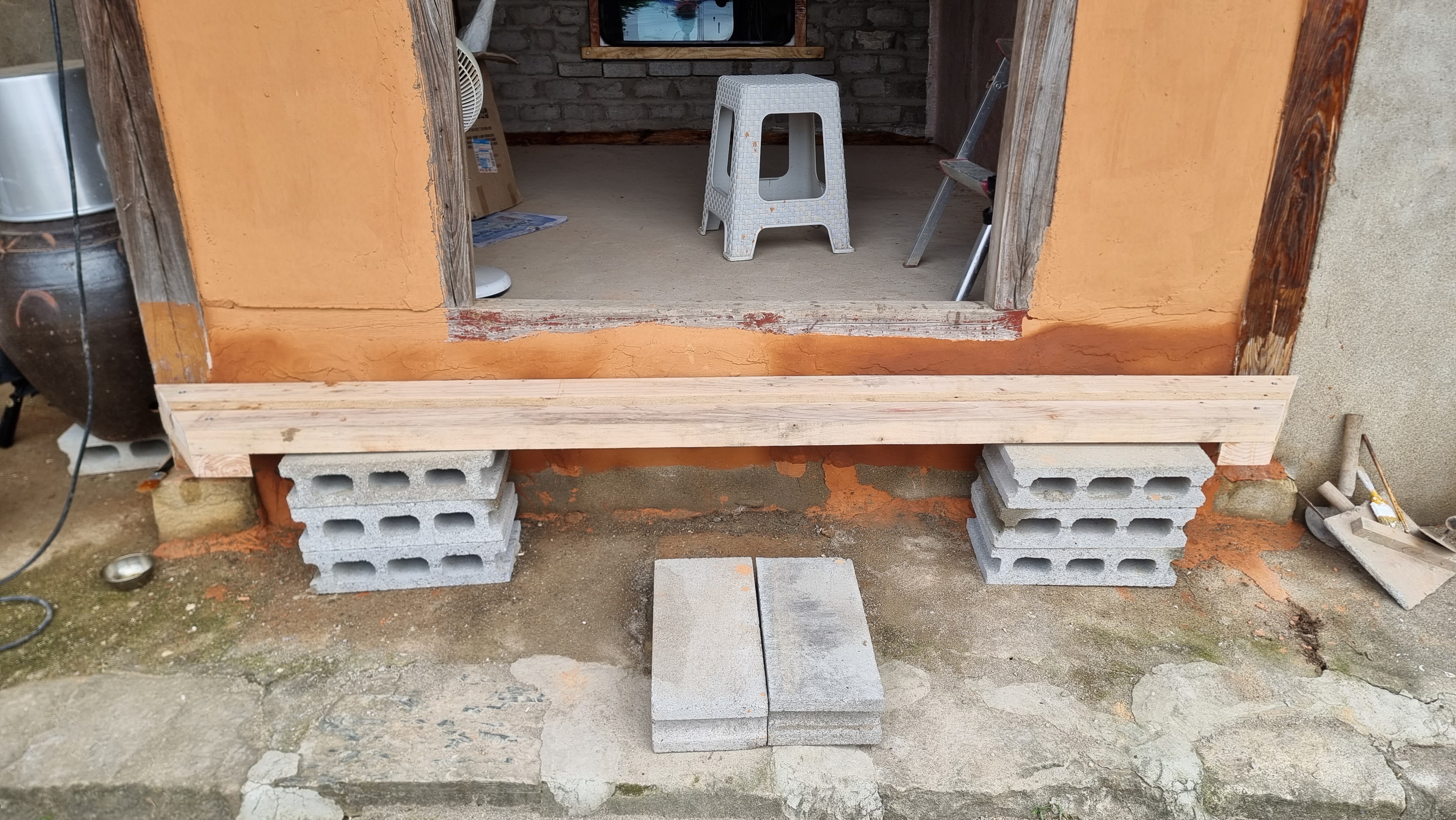 - 오랜만에 아침이 맑다. 그래서 해야할 일을 서둘렀다. 이번 달 들어서는 빠꼼한 날이 없이 비가 내렸다. 그래서 집이 마를 새 없이 젖어 있다. 우리집 같이 오래된 집은 마당과 건물의 높이가 높지 않아 이렇게 젖은 날이 계속되면 건물 아랫 부분은 습기가 많이 찬다. 그래서 오늘 일어나자 마자 본채 건물 뒷편 벽 아랫쪽에 시멘트로 미장을 했다.
