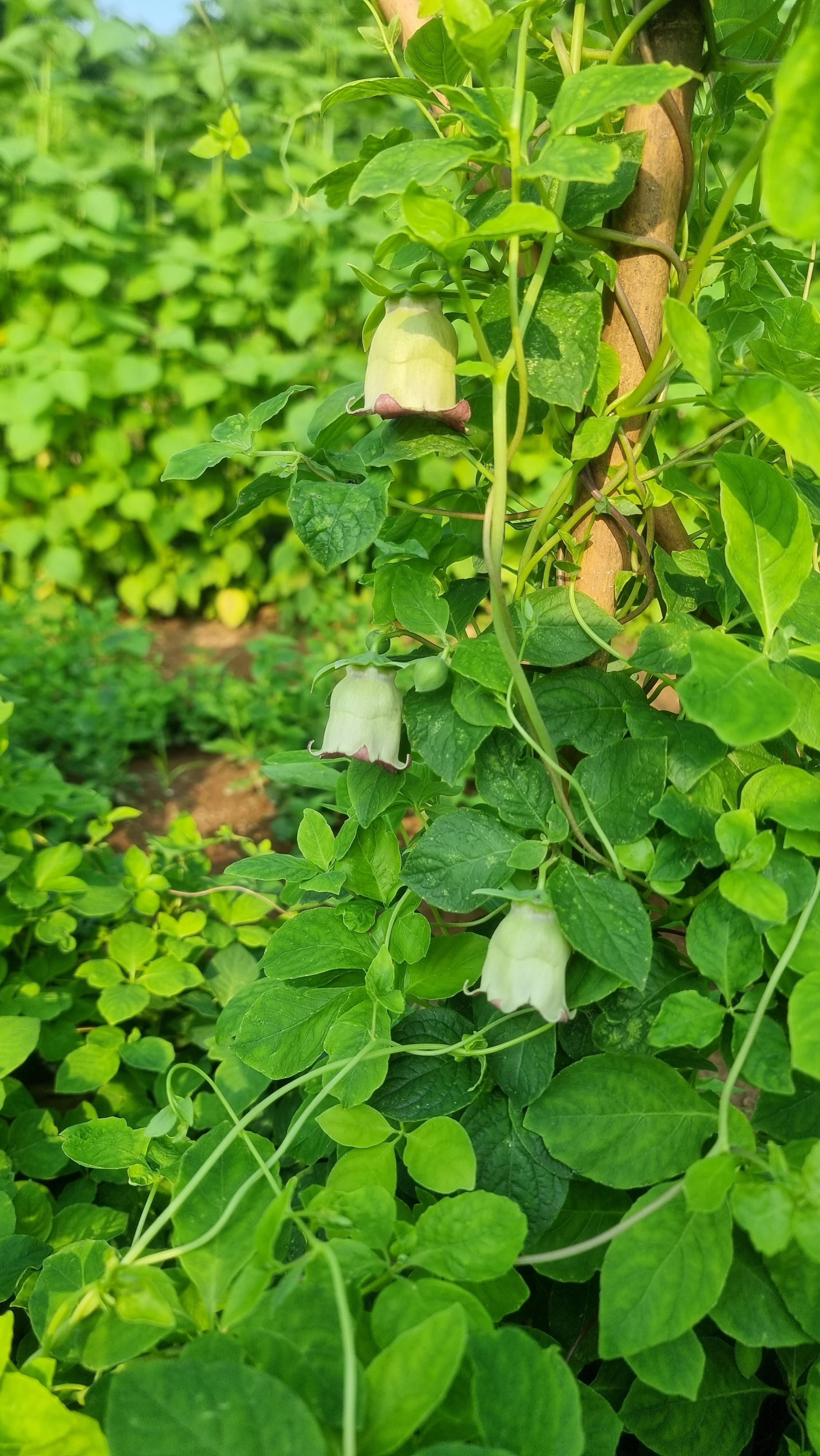 - 드디어 집앞 밭에 도라지 꽃이 하나 피었다. 뒷밭에 가보았더니 더덕꽃도 피어 있었다. 조금 있으면 이들 꽃이 제법 많이 필 듯하다.
