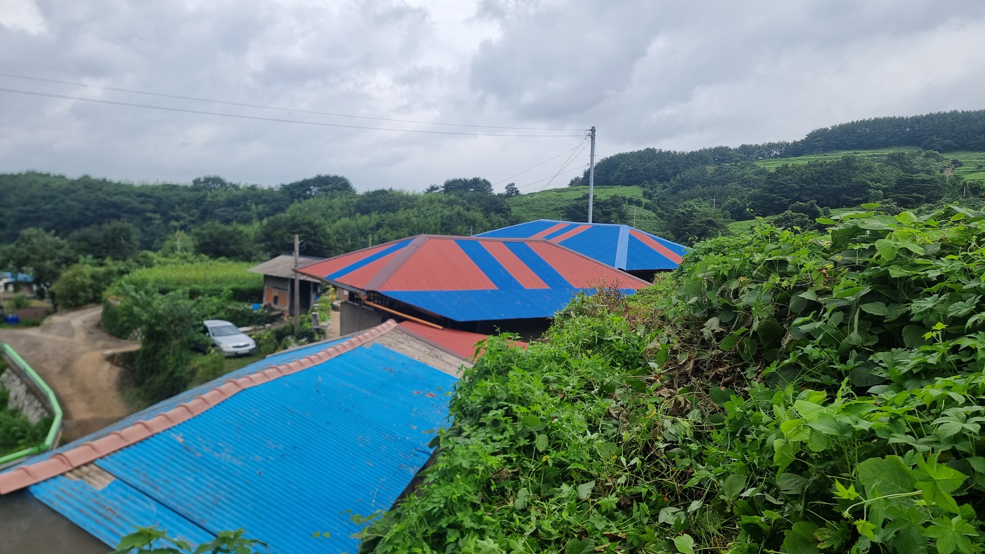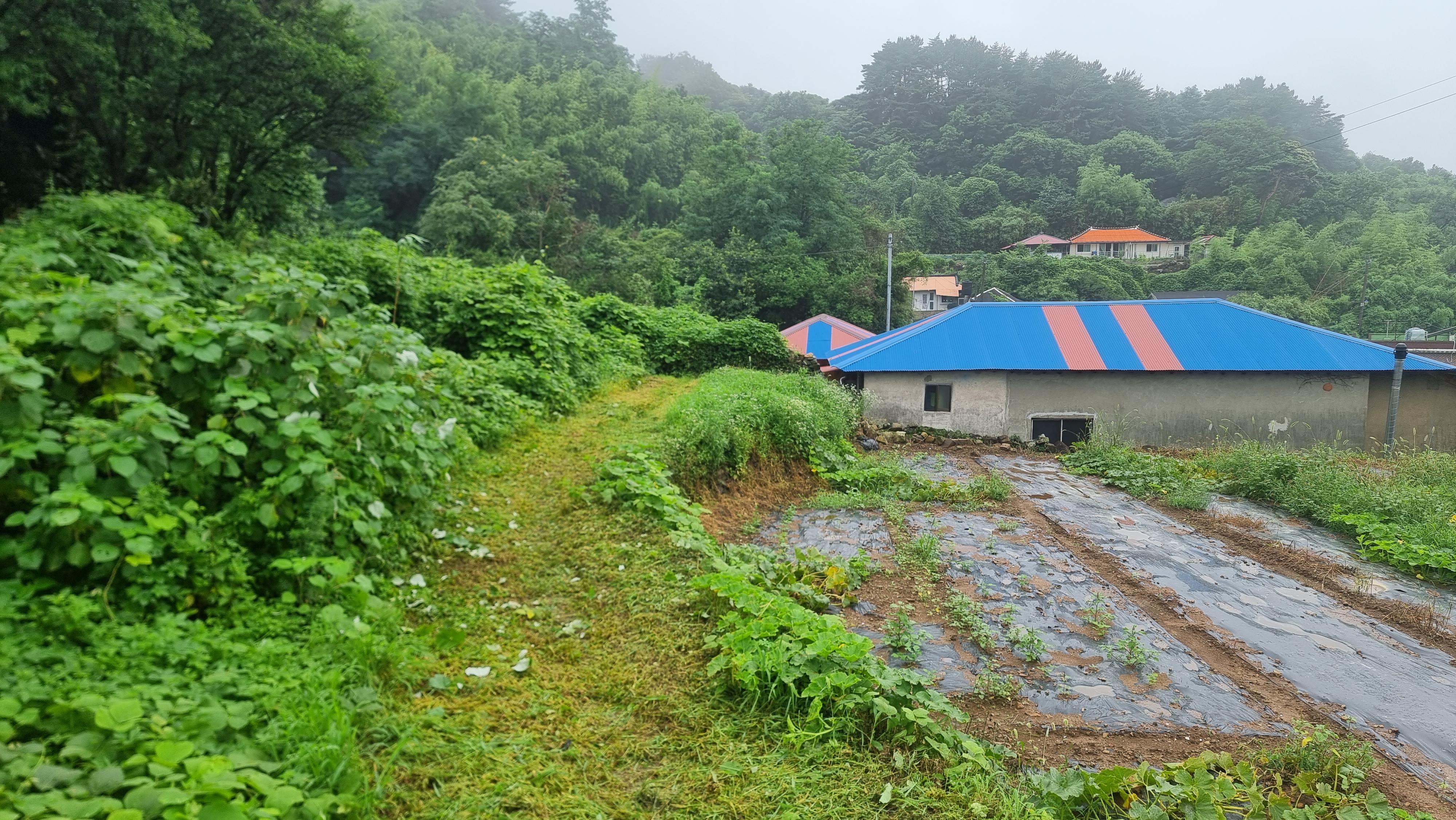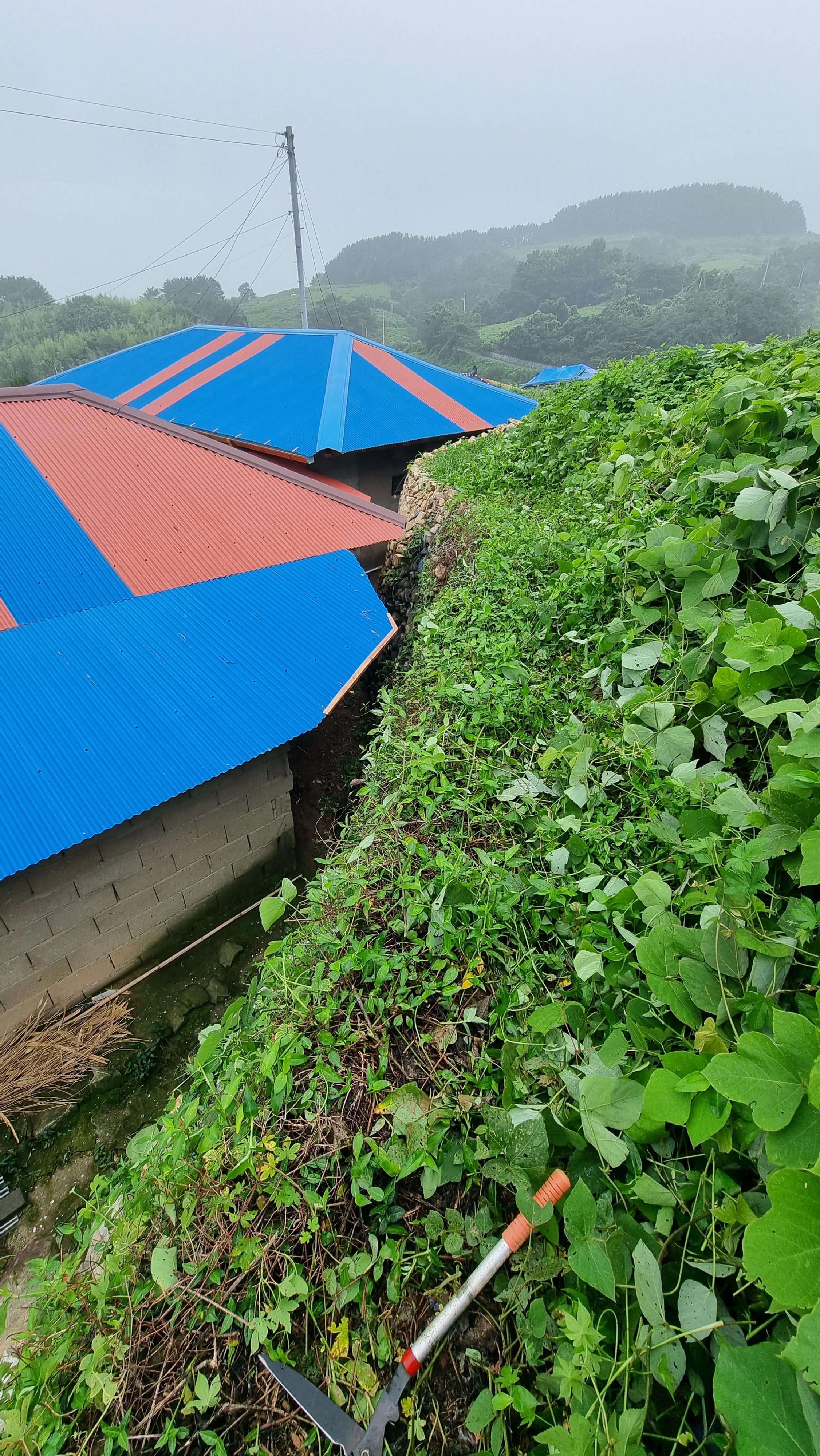 ◈ 23.07.09 - 남해, 일(흐림) : 예초 작업, 다실 벽 및 천장 도배 등.